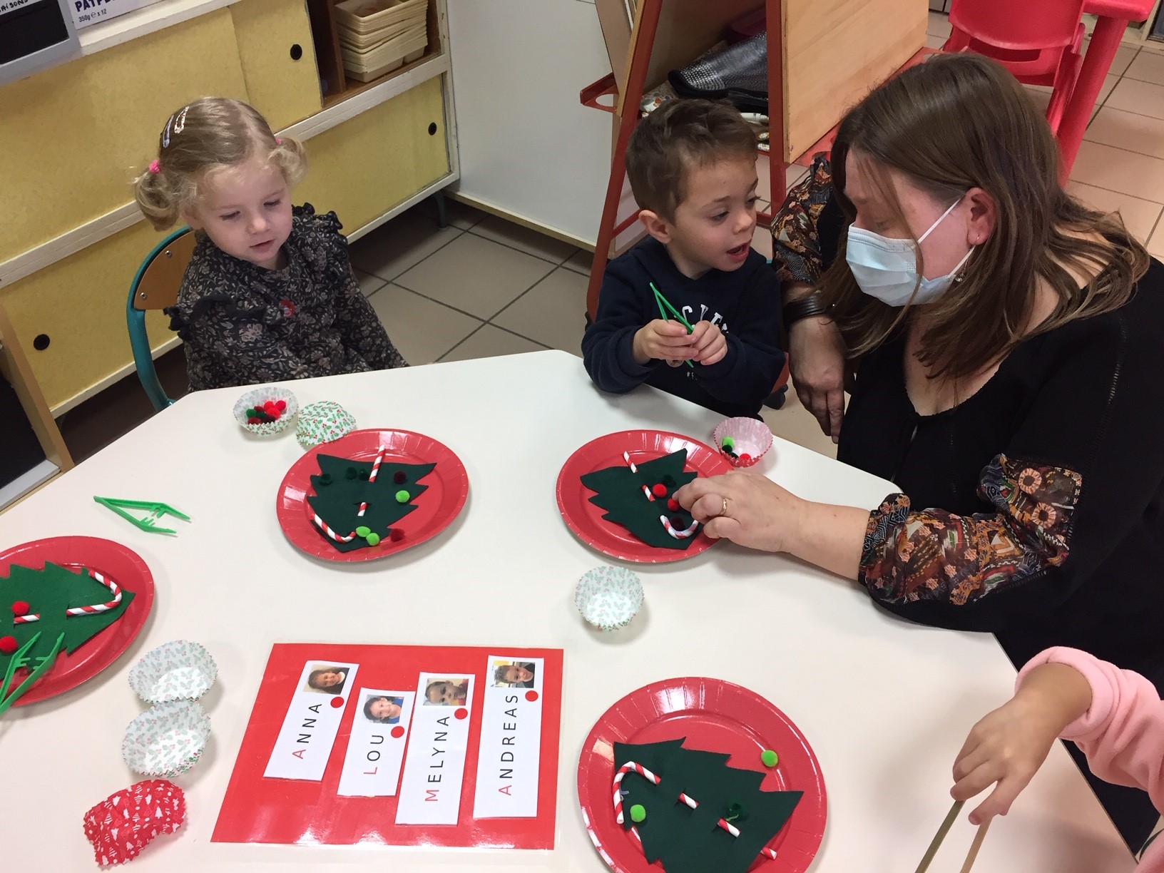 Christmas tree : Voici l'arbre de Noël et une activité de motricité fine... essayez de déposer des pompons sur un sapin avec une pince à épiler... Not so easy !