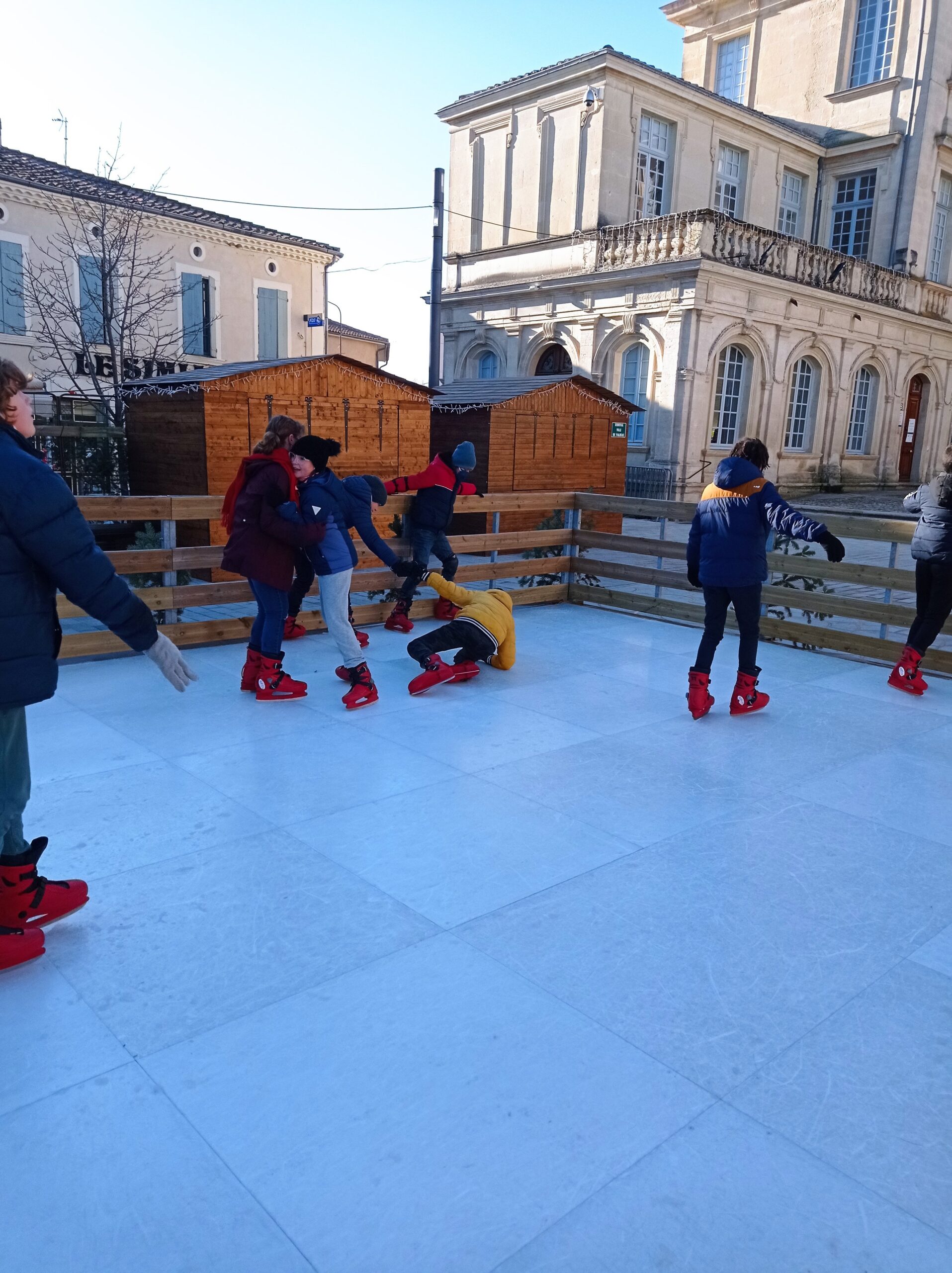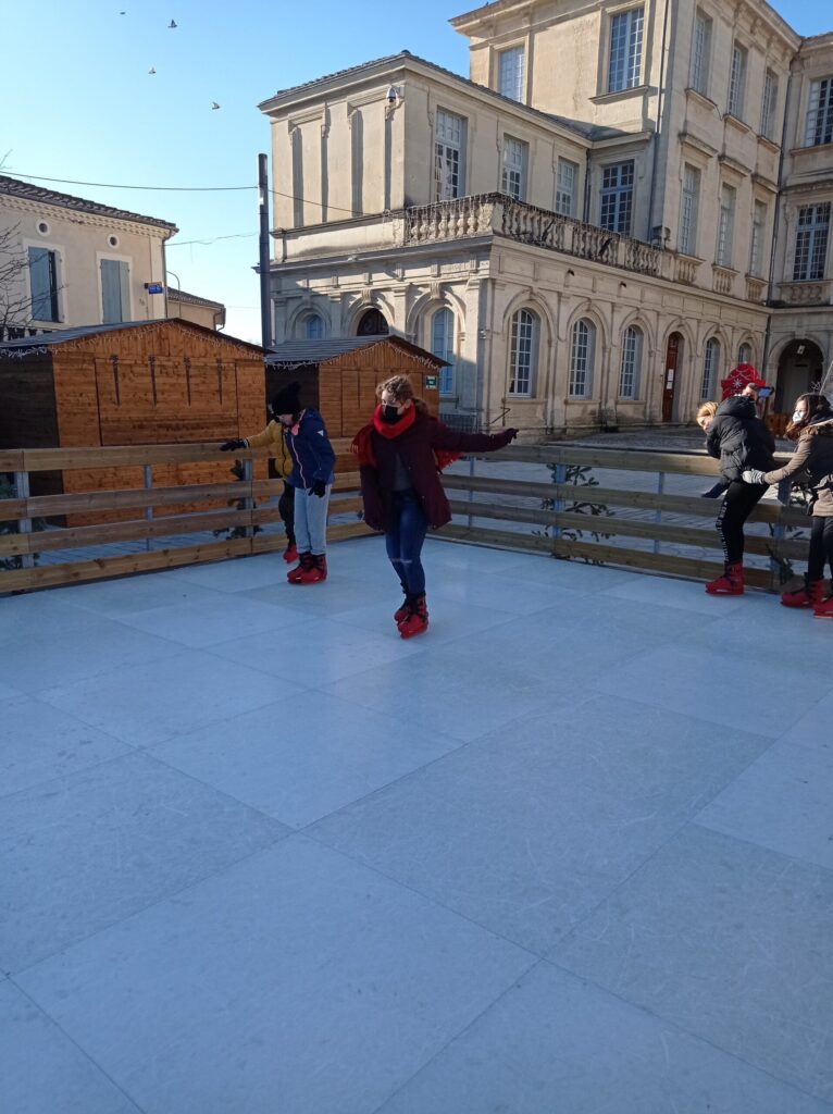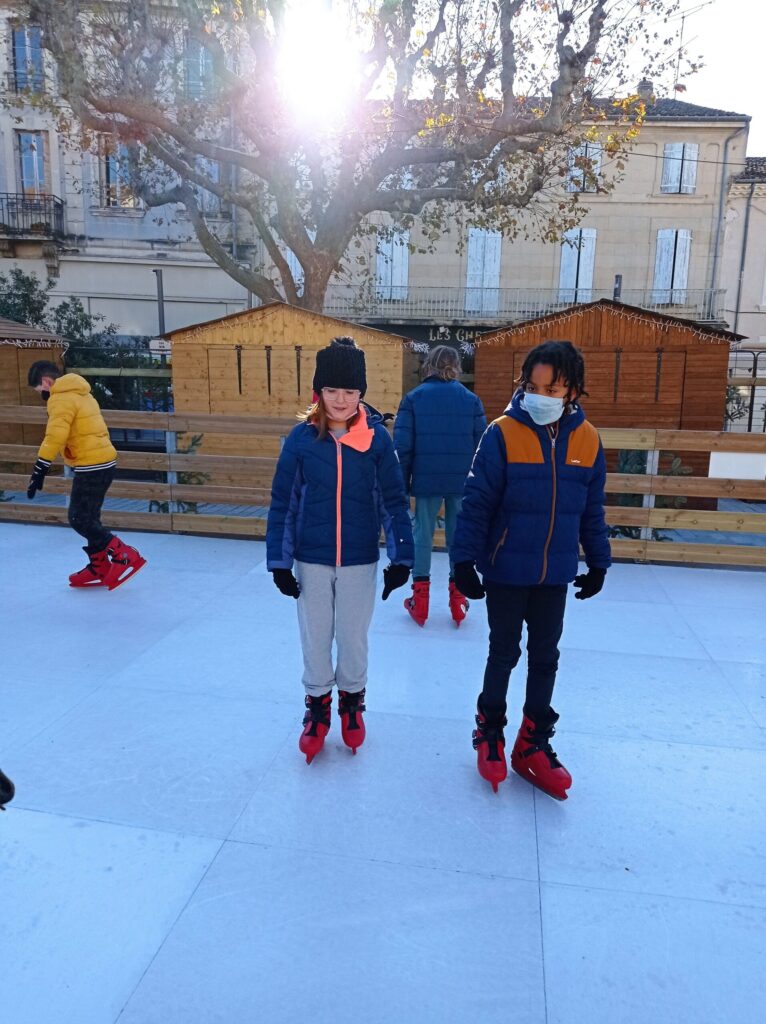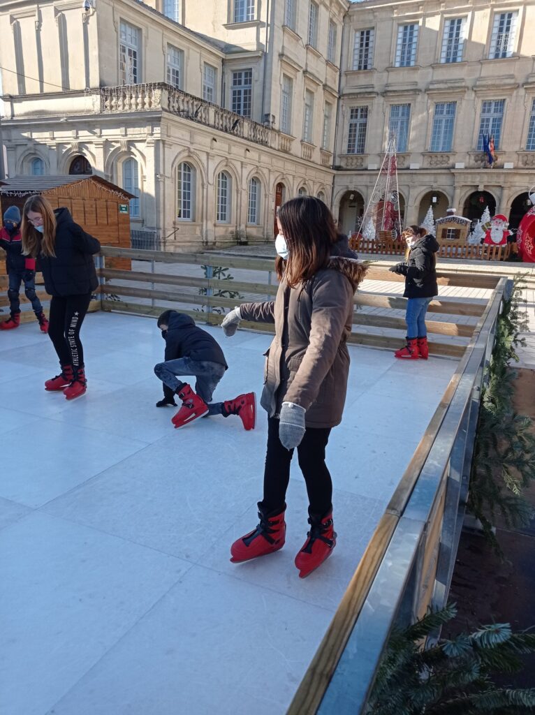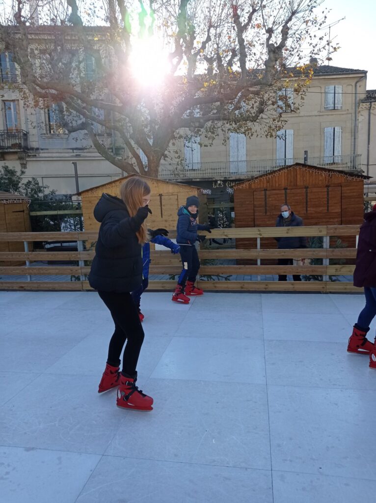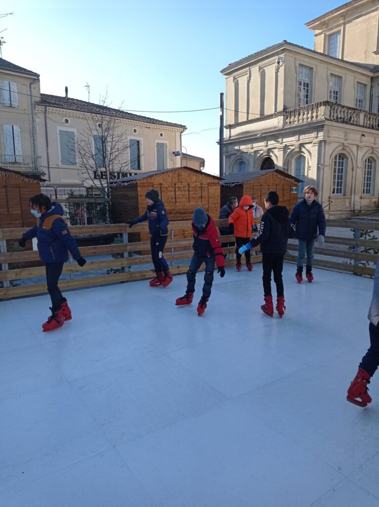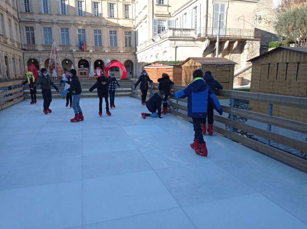 En plus de découvrir une belle exposition sur Noël et ses traditions installée dans le château de Simiane, les CM2 ont pu chausser, pour un instant, les patins à glace. Ils ont ainsi profité de la patinoire de Valréas installée pour quelques mois devant le château. Malgré quelques pirouettes non maîtrisées, nous ( la maîtresse aussi 😉) avons pris beaucoup de plaisir !