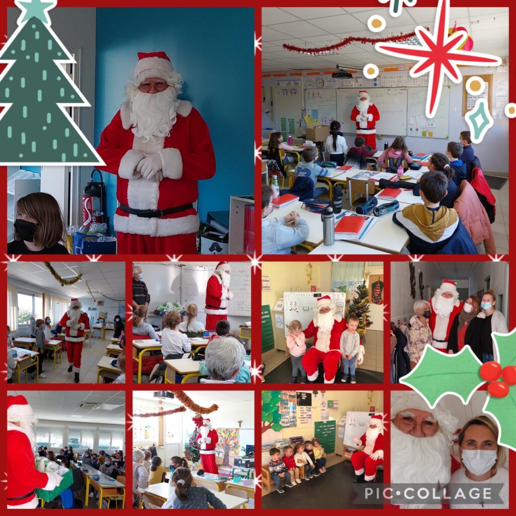 Ce vendredi 17 décembre, le Père Noël est passé dans toutes les classes. Vêtu de son traditionnel costume rouge et blanc, il a fait briller les yeux de tous les enfants. Il en a profité pour déposer dans chaque classe un délicieux goûter.