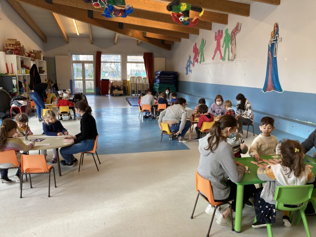 Jeudi 6 janvier, les ateliers se sont déroulés dans la grande salle avec un mémory, un atelier couronne, un atelier peinture propre, la décoration d'une galette et la lecture de l'histoire "Roule Galette".