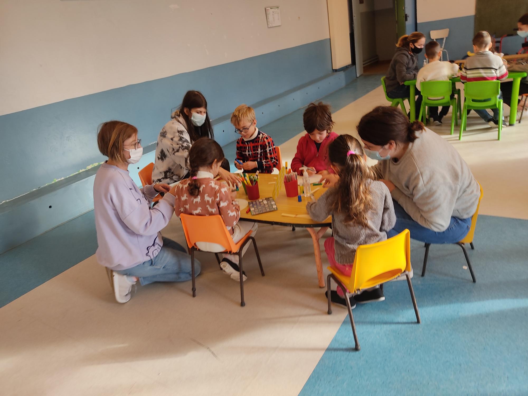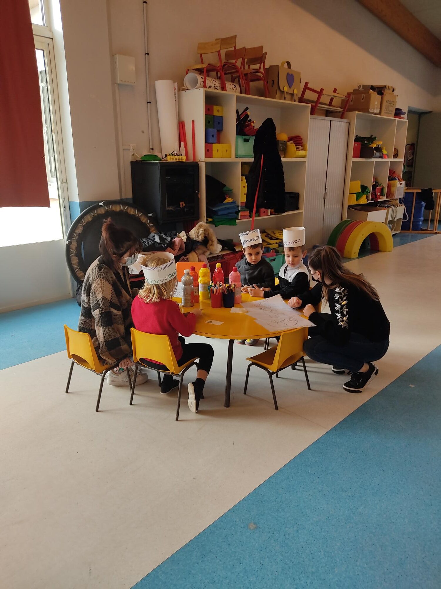 Jeudi 6 janvier, les ateliers se sont déroulés dans la grande salle avec un mémory, un atelier couronne, un atelier peinture propre, la décoration d'une galette et la lecture de l'histoire "Roule Galette".