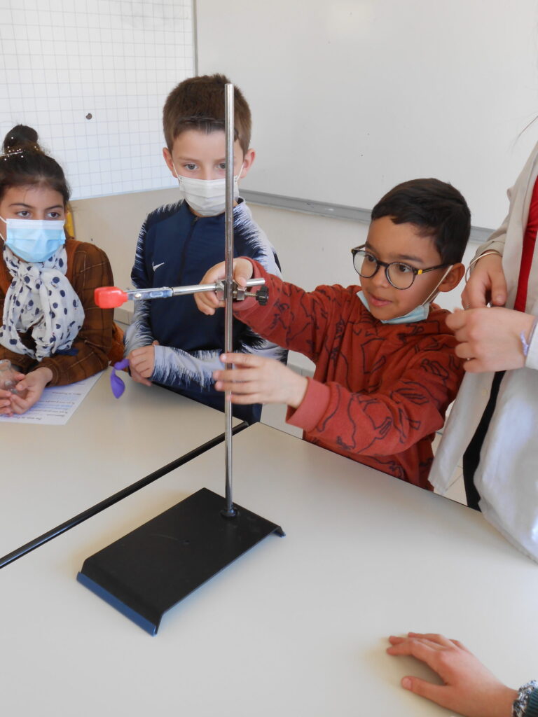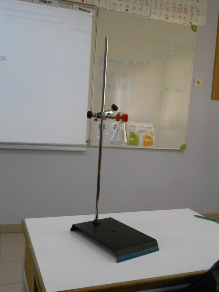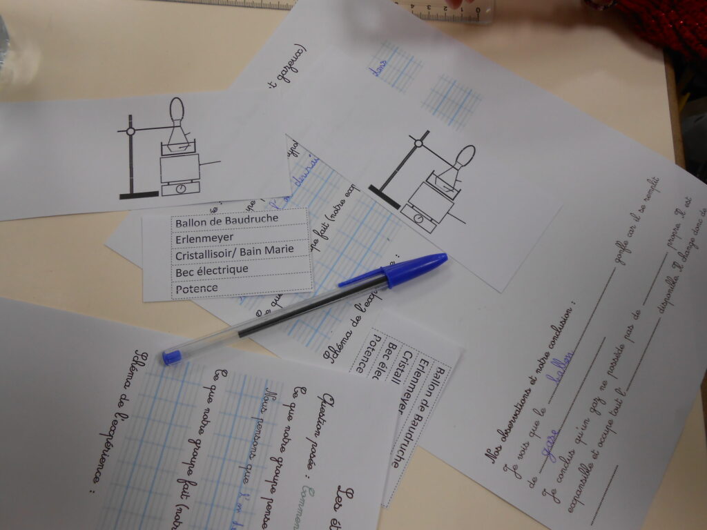Nous avons ensuite appris le nom du matériel prévu pour l'expérience : potence, bec électrique, cristallisoir ou bain marie, Erlenmeyer et ballon de baudruche.