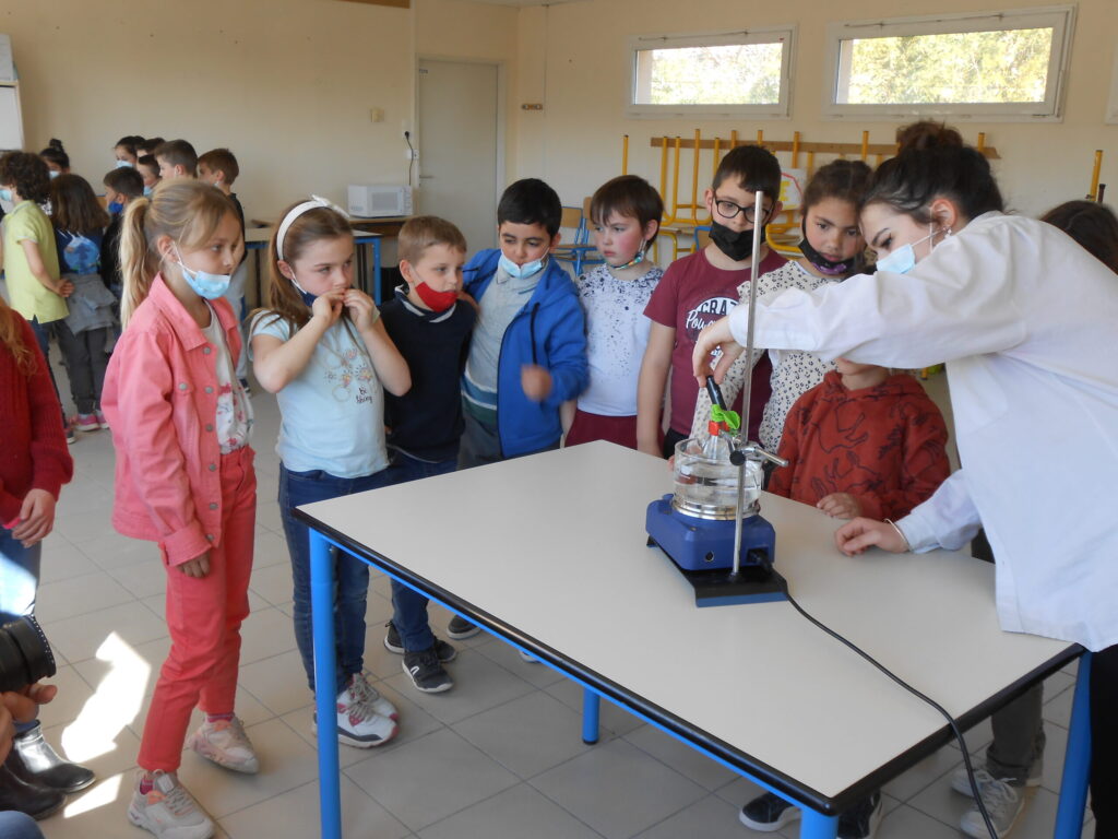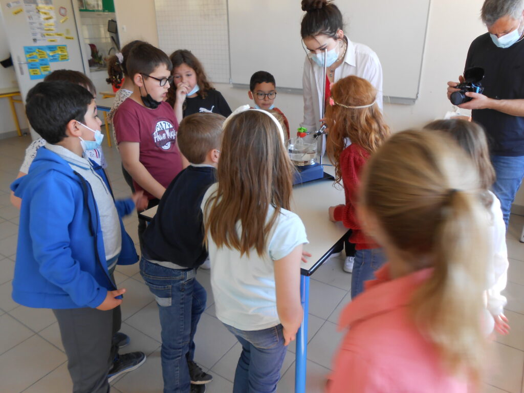 "Le vendredi 4 mars, Madame Chrystelle Fayat, professeure de sciences au lycée Saint Jean, accompagnée d'une élève, est venue dans notre classe pour nous aider à prolonger notre réflexion sur les différents états de l'eau.