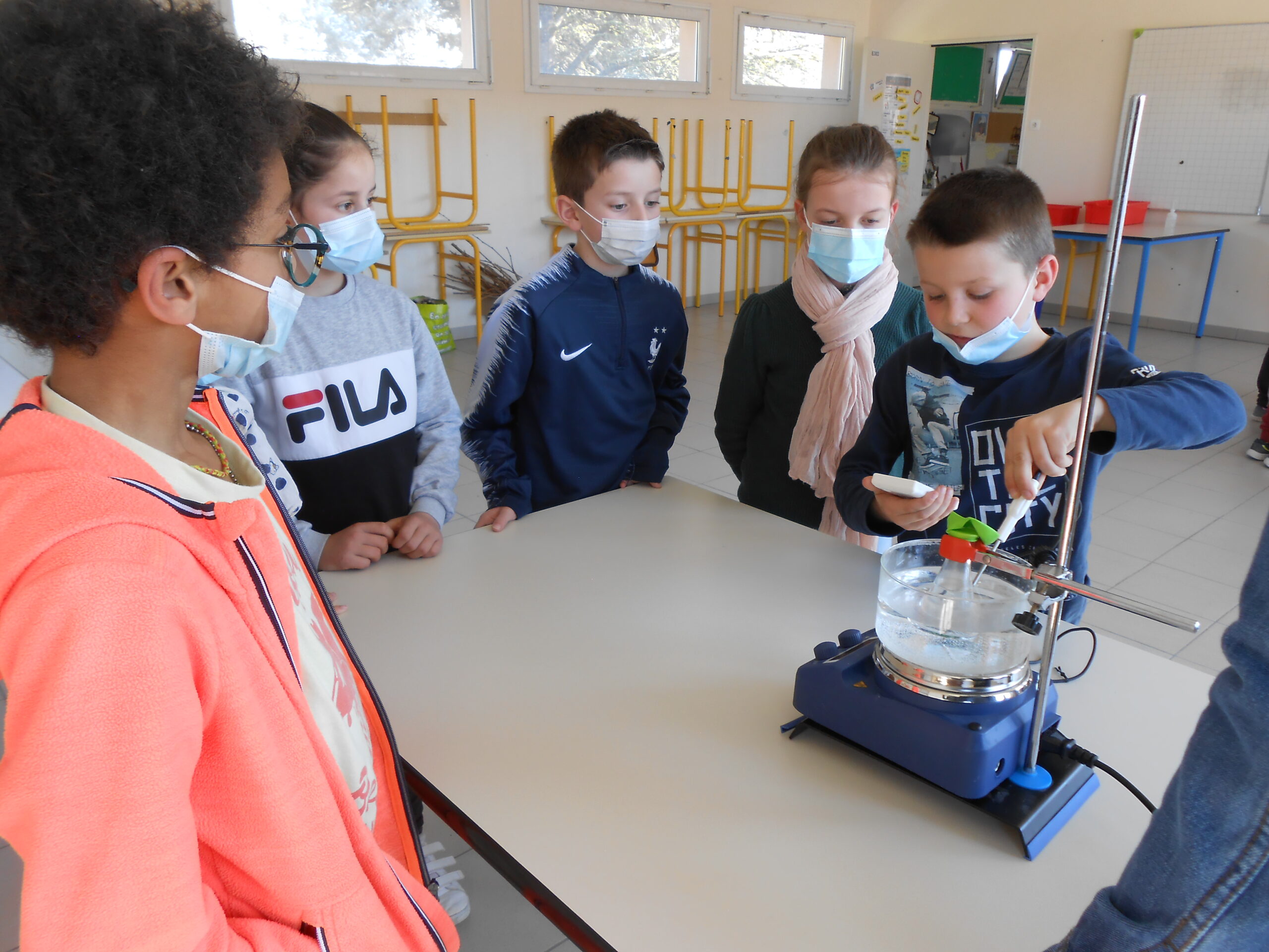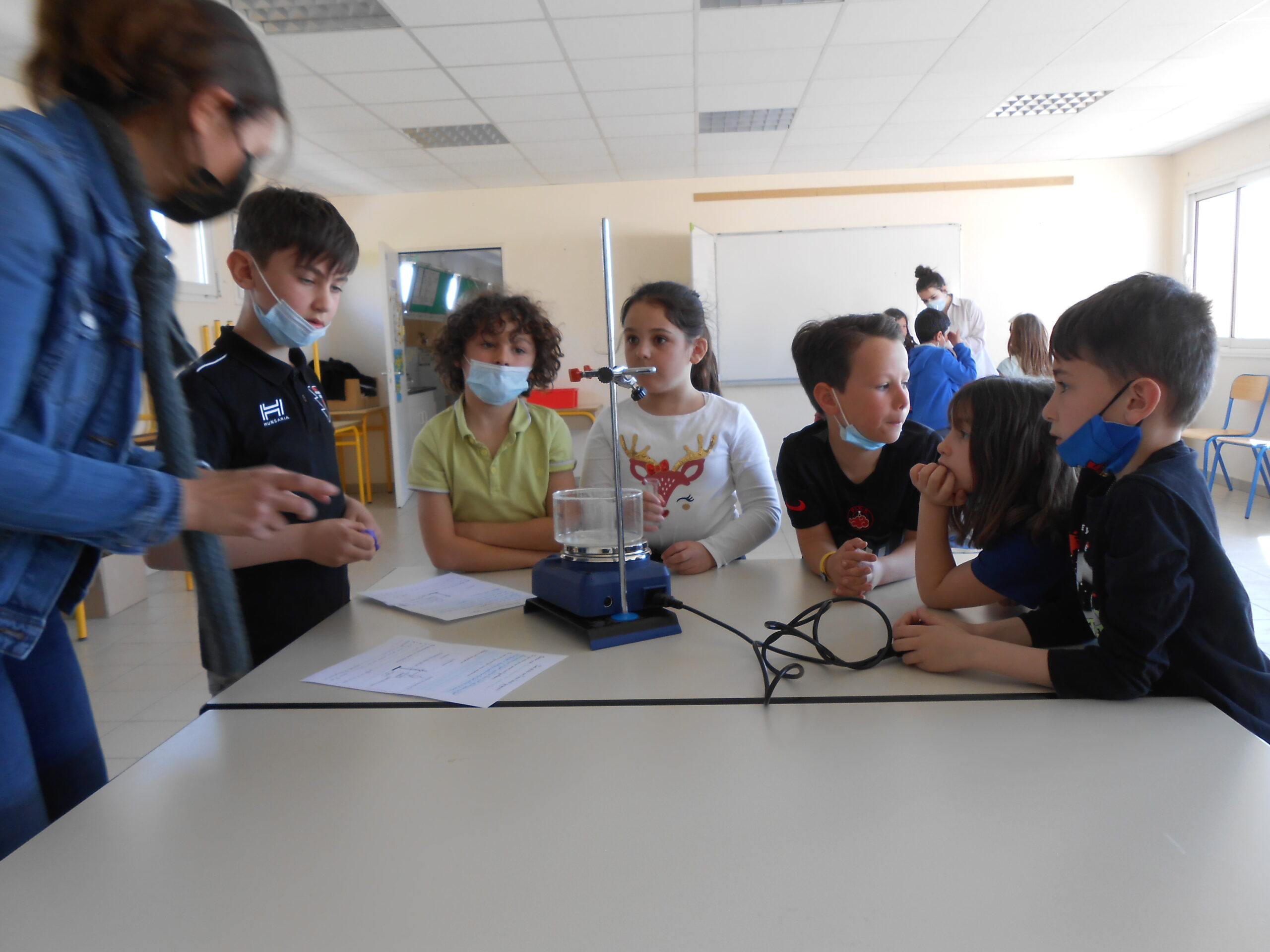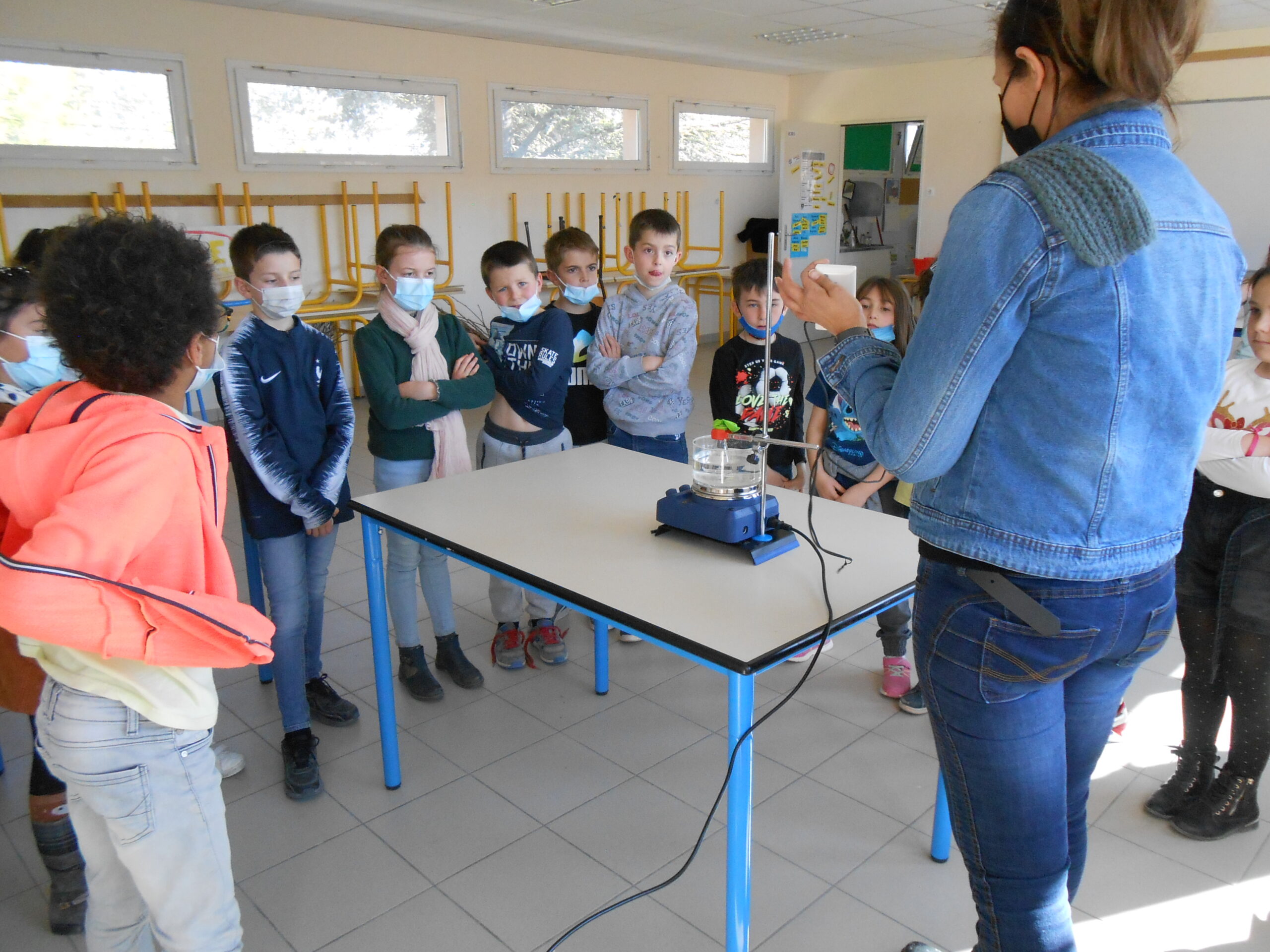 "Le vendredi 4 mars, Madame Chrystelle Fayat, professeure de sciences au lycée Saint Jean, accompagnée d'une élève, est venue dans notre classe pour nous aider à prolonger notre réflexion sur les différents états de l'eau.