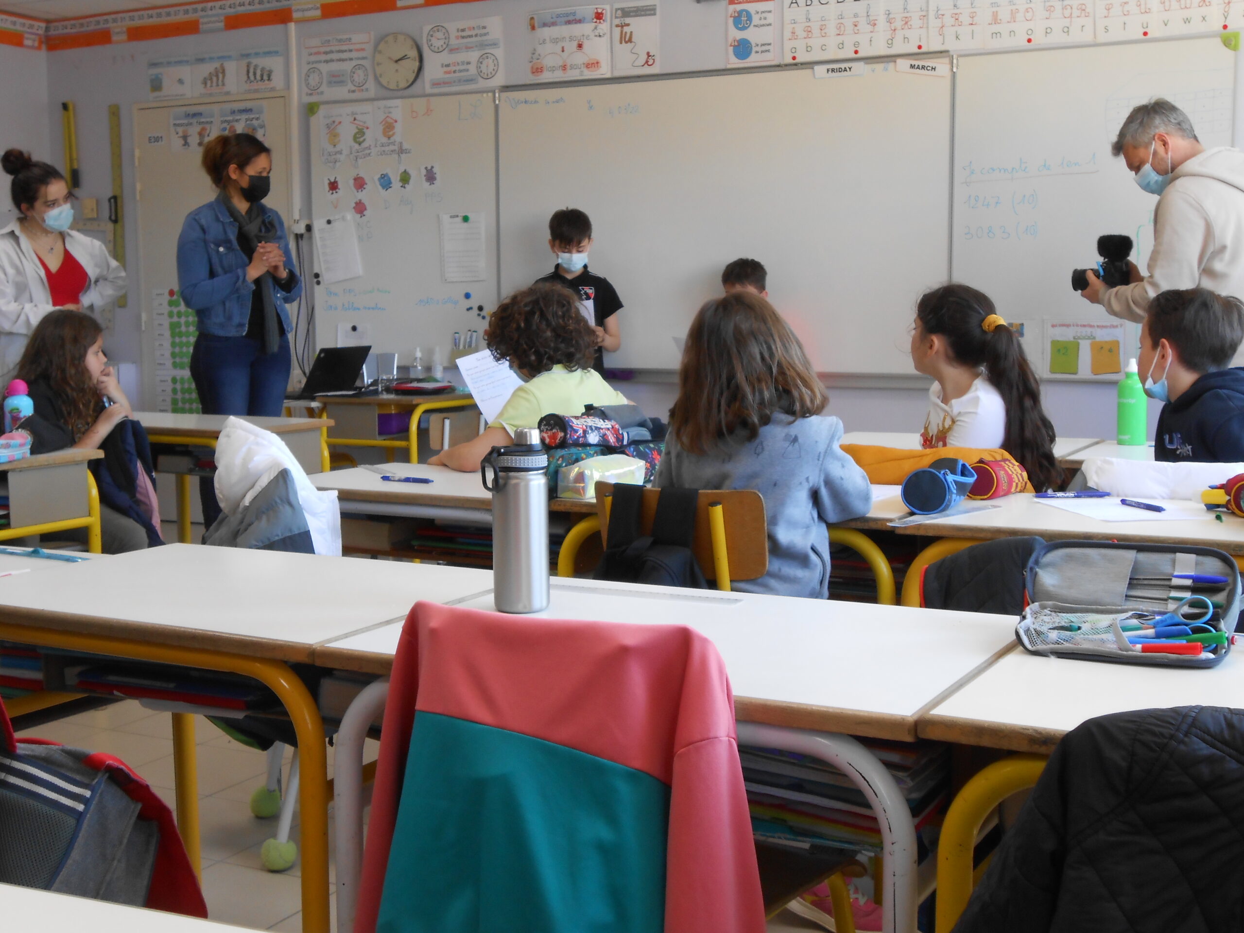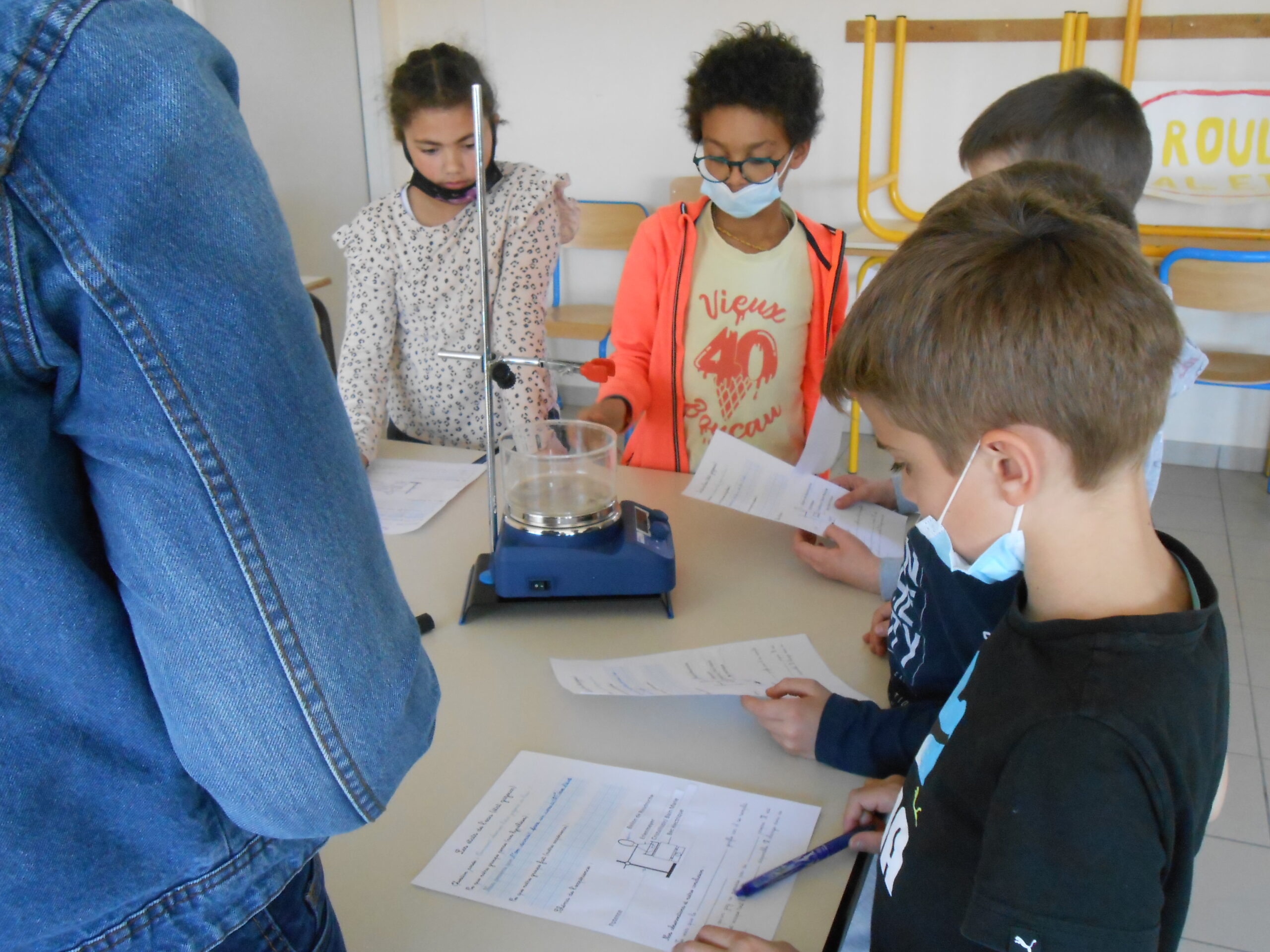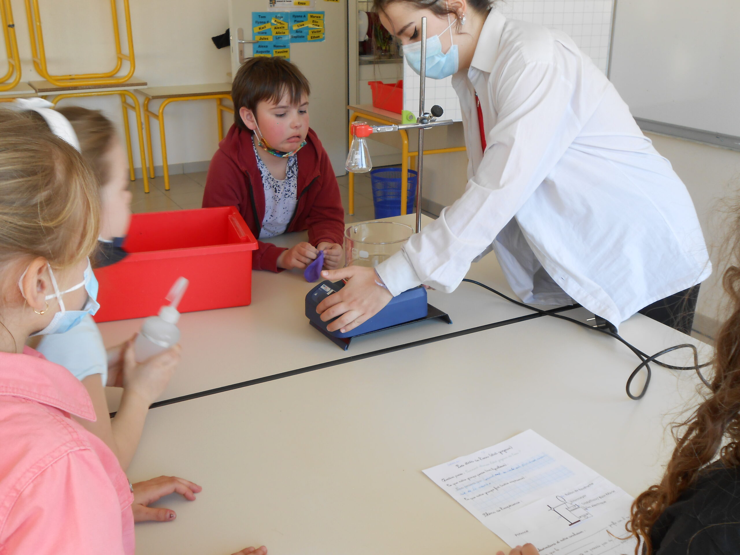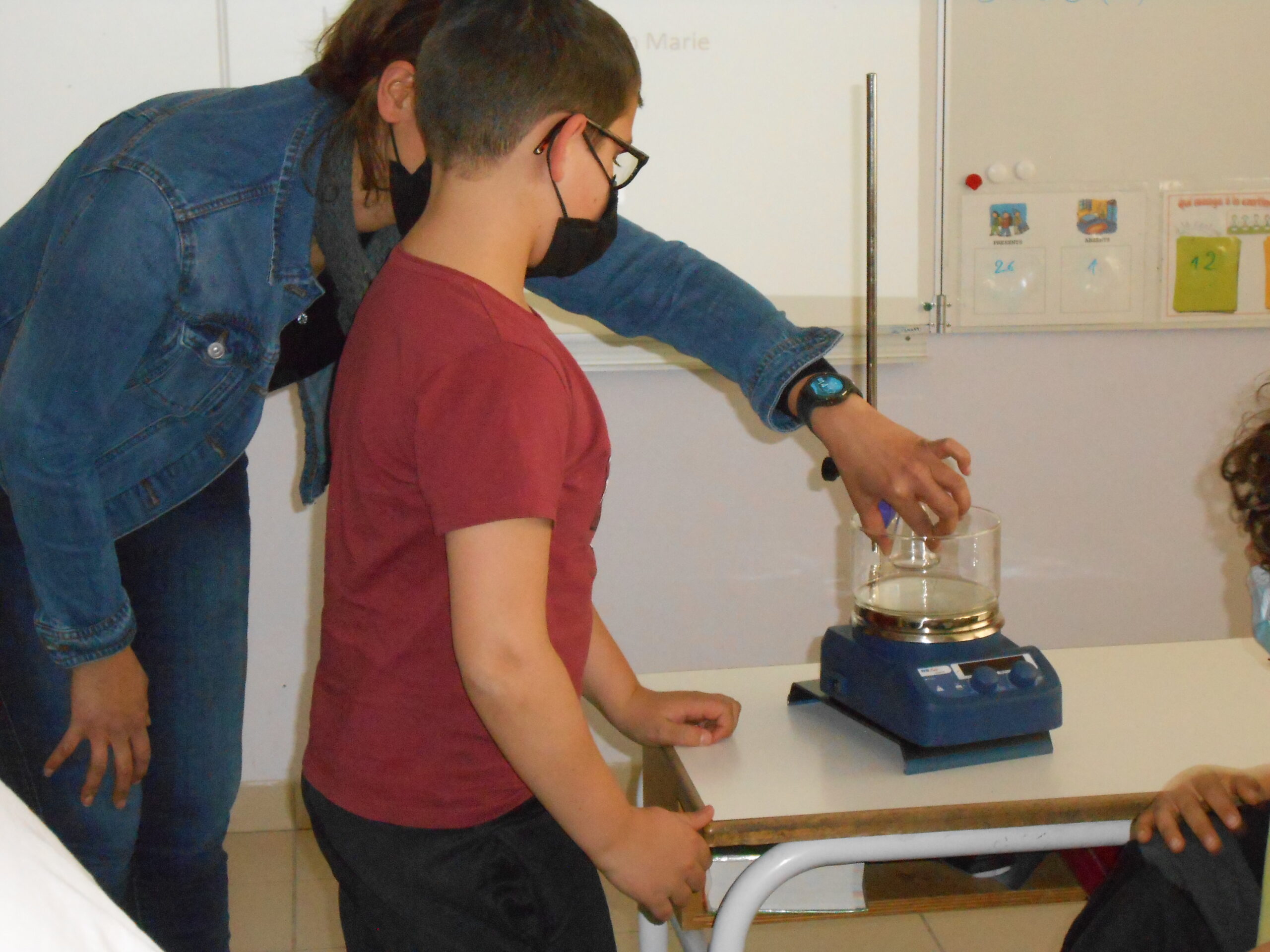 "Le vendredi 4 mars, Madame Chrystelle Fayat, professeure de sciences au lycée Saint Jean, accompagnée d'une élève, est venue dans notre classe pour nous aider à prolonger notre réflexion sur les différents états de l'eau.