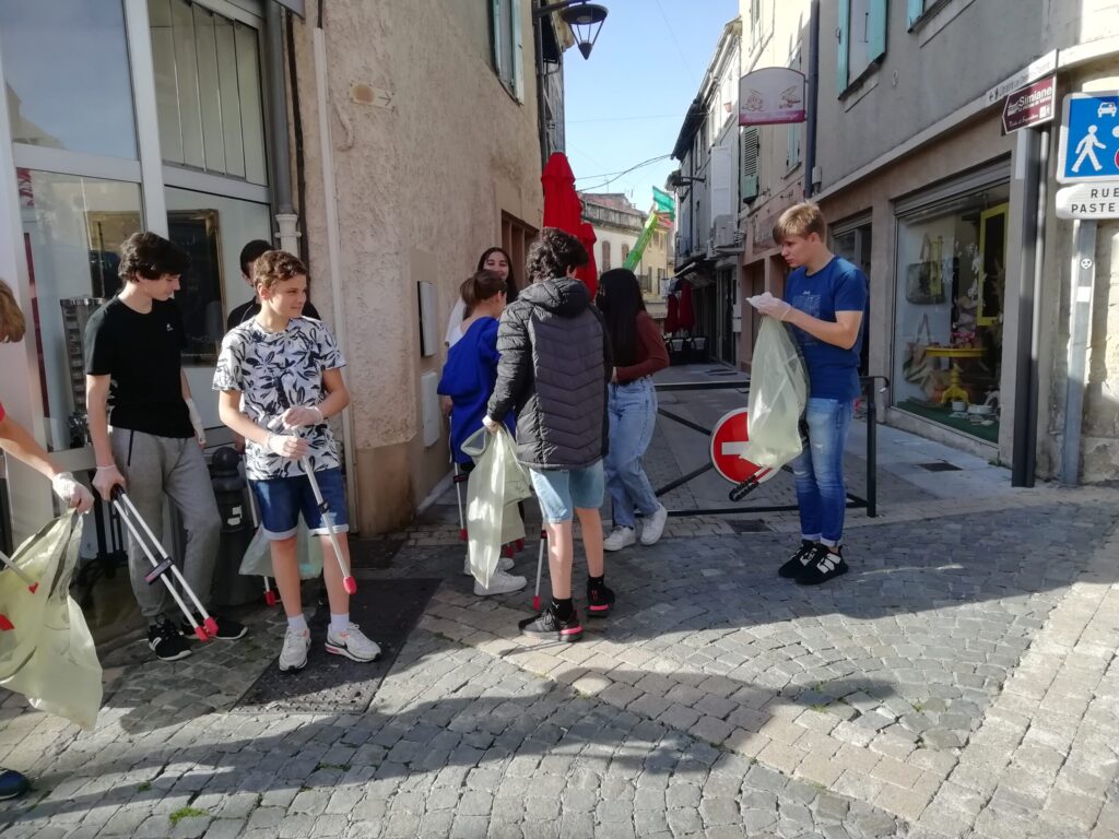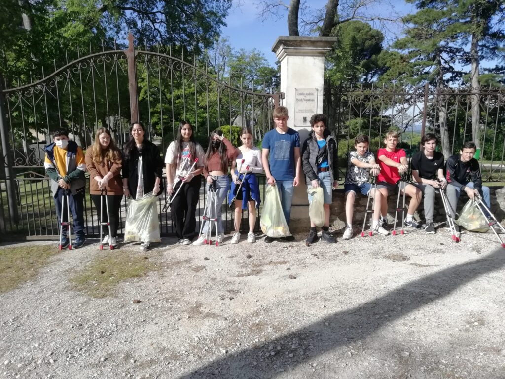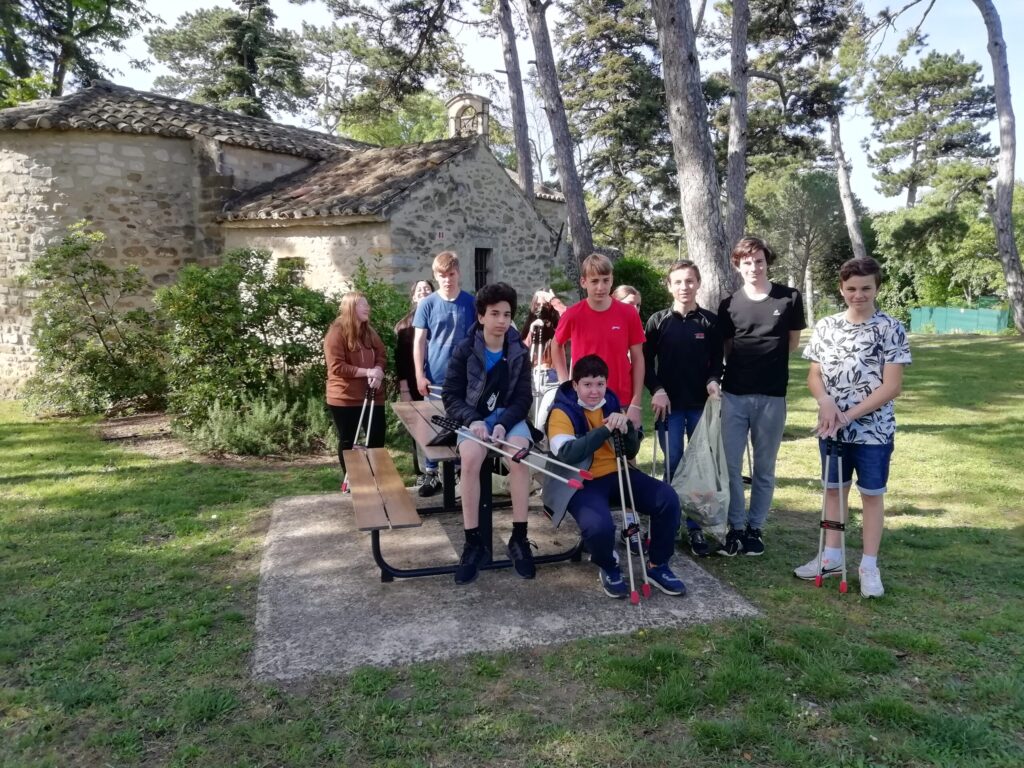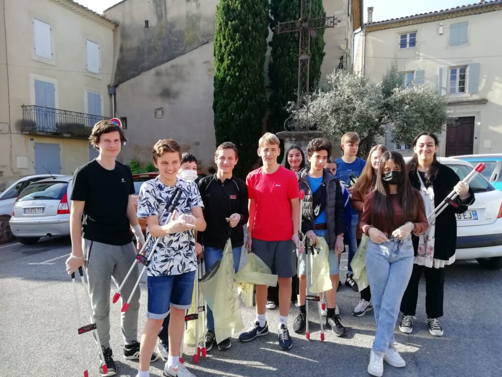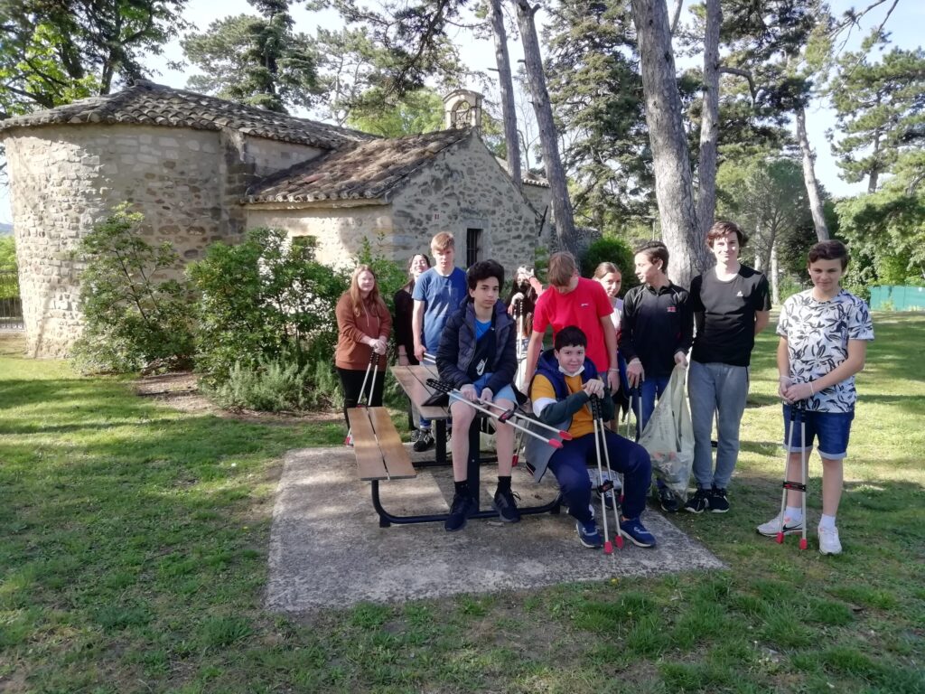 Je remercie également le Centre des Communes de Valréas pour le prêt des pinces et des sacs jaunes. (Les élèves étaient munis de gants, et des masques leur ont été également proposés)