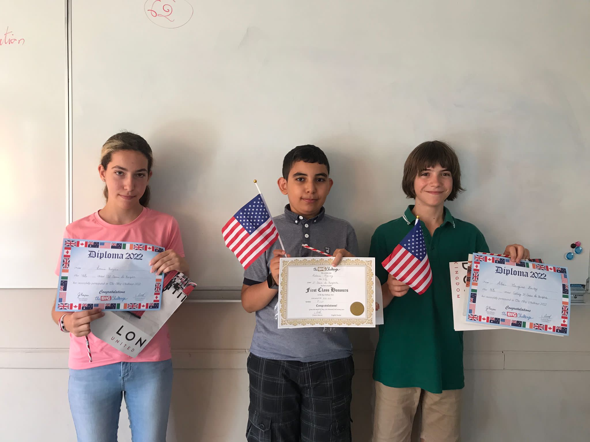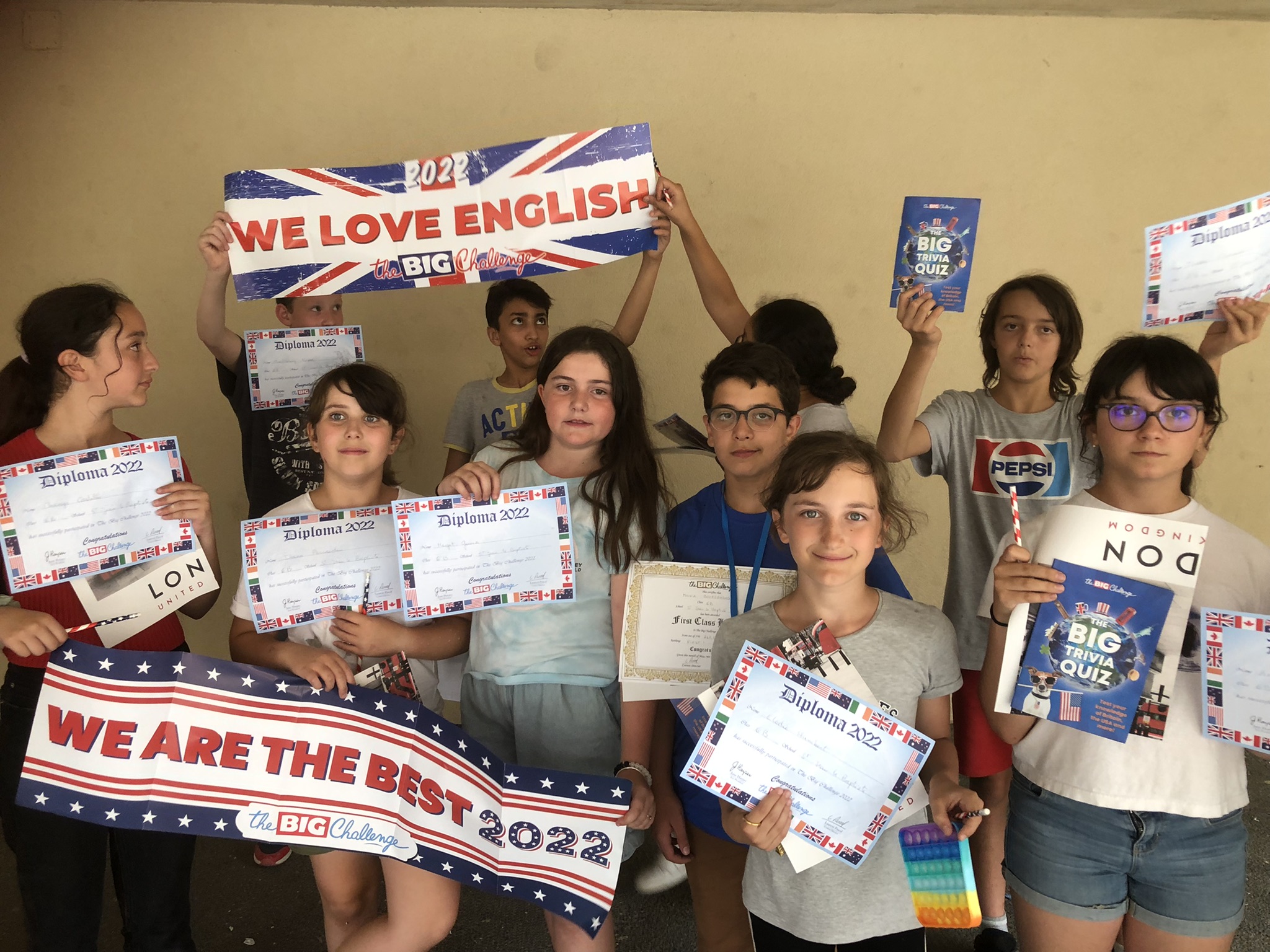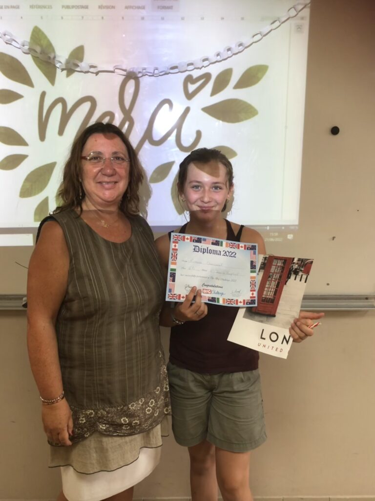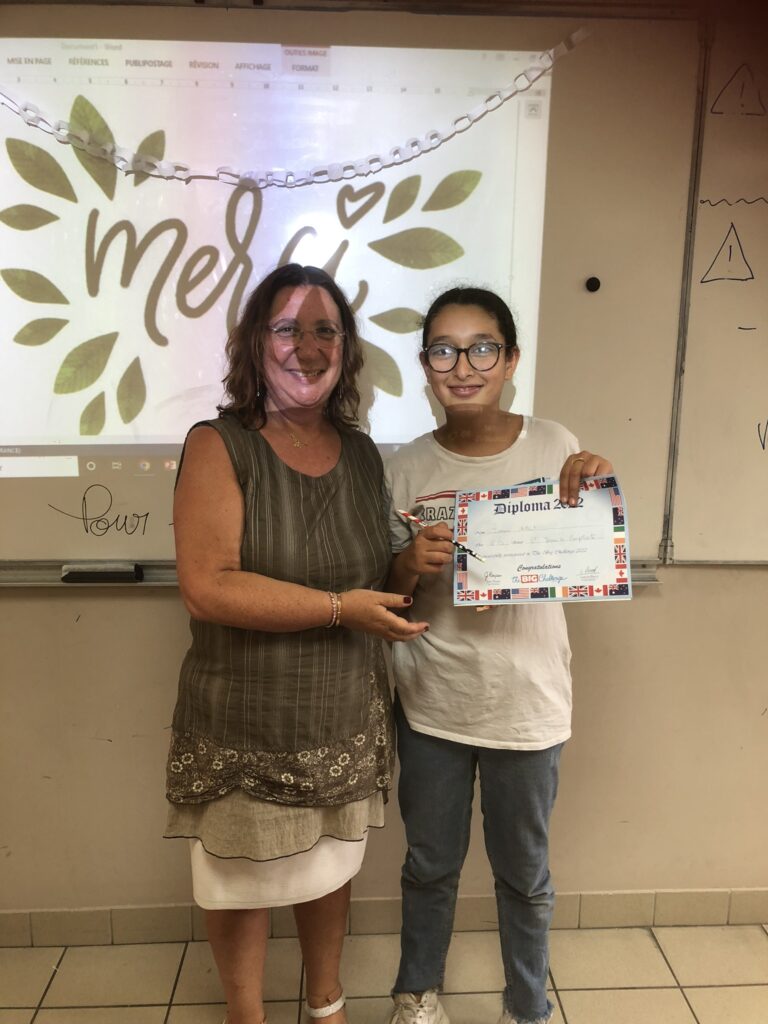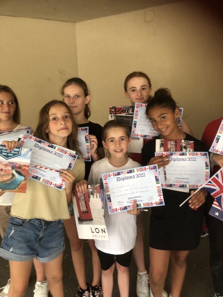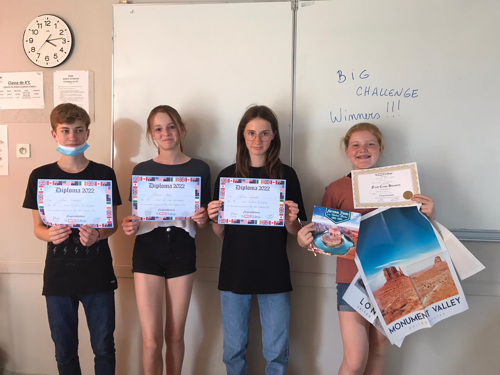 Cette semaine, les élèves qui avaient participé au Big Challenge 2022 se sont vus remettre leurs diplômes et leurs prix par les professeurs d'anglais, Mme Blanchart en 3ème et 4ème, Mme Mourre en 5ème et Mme Varela en 6ème.