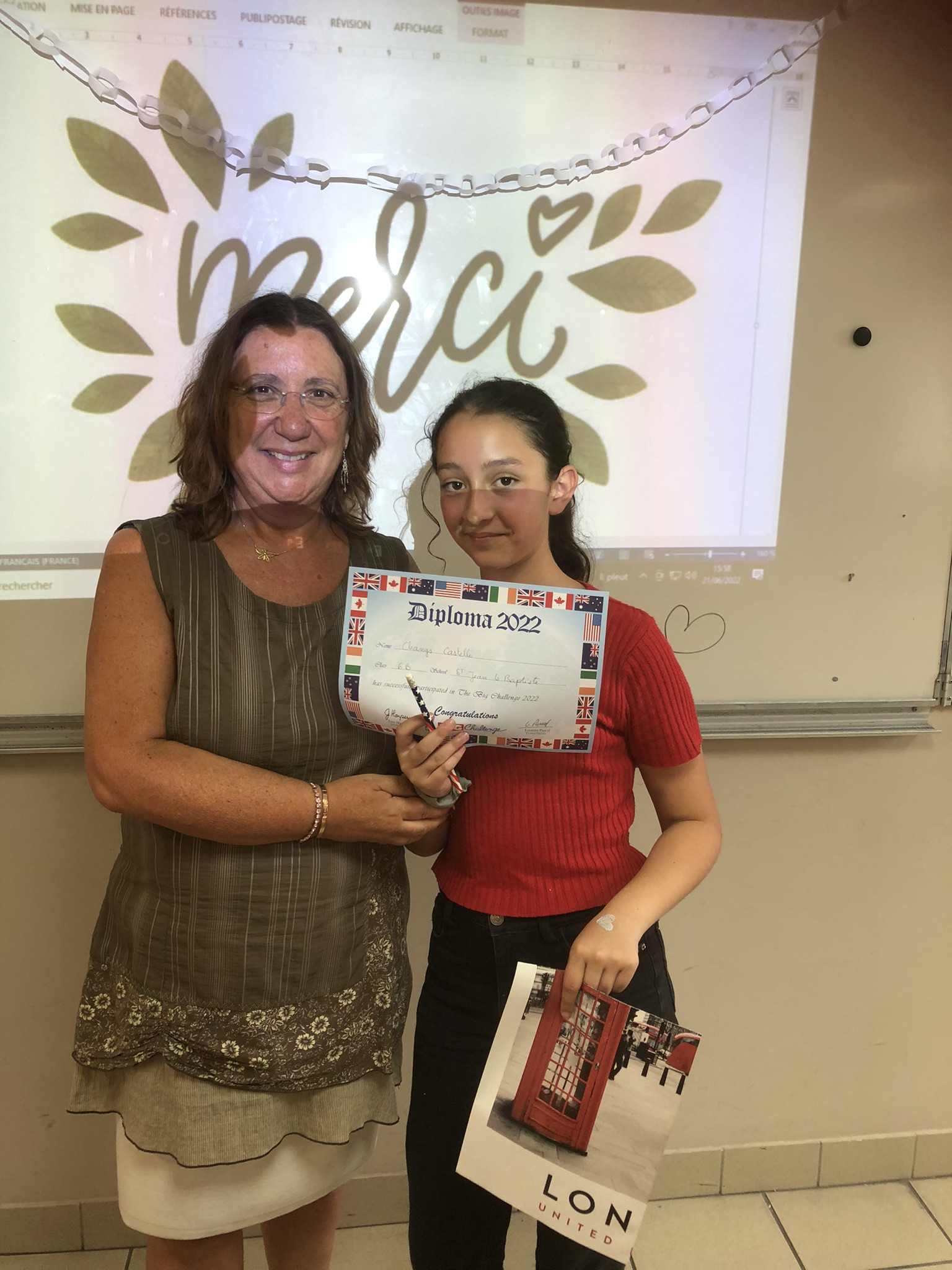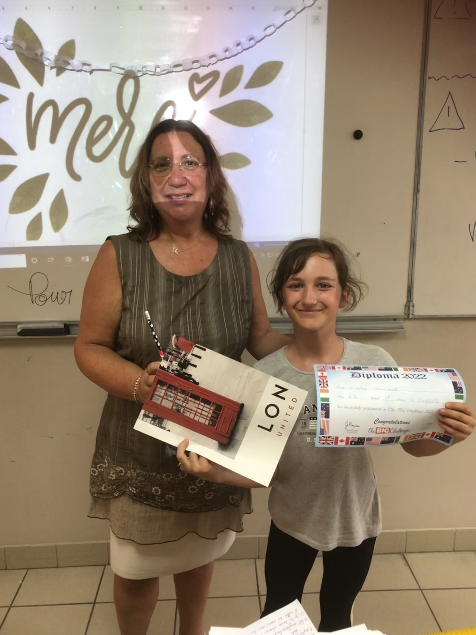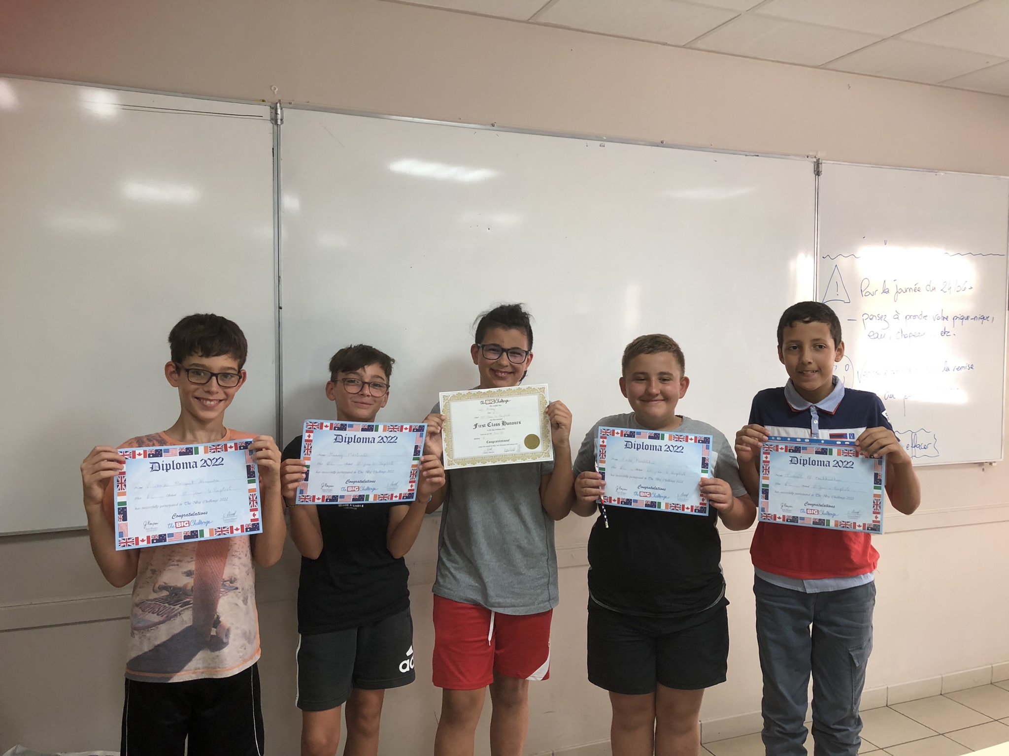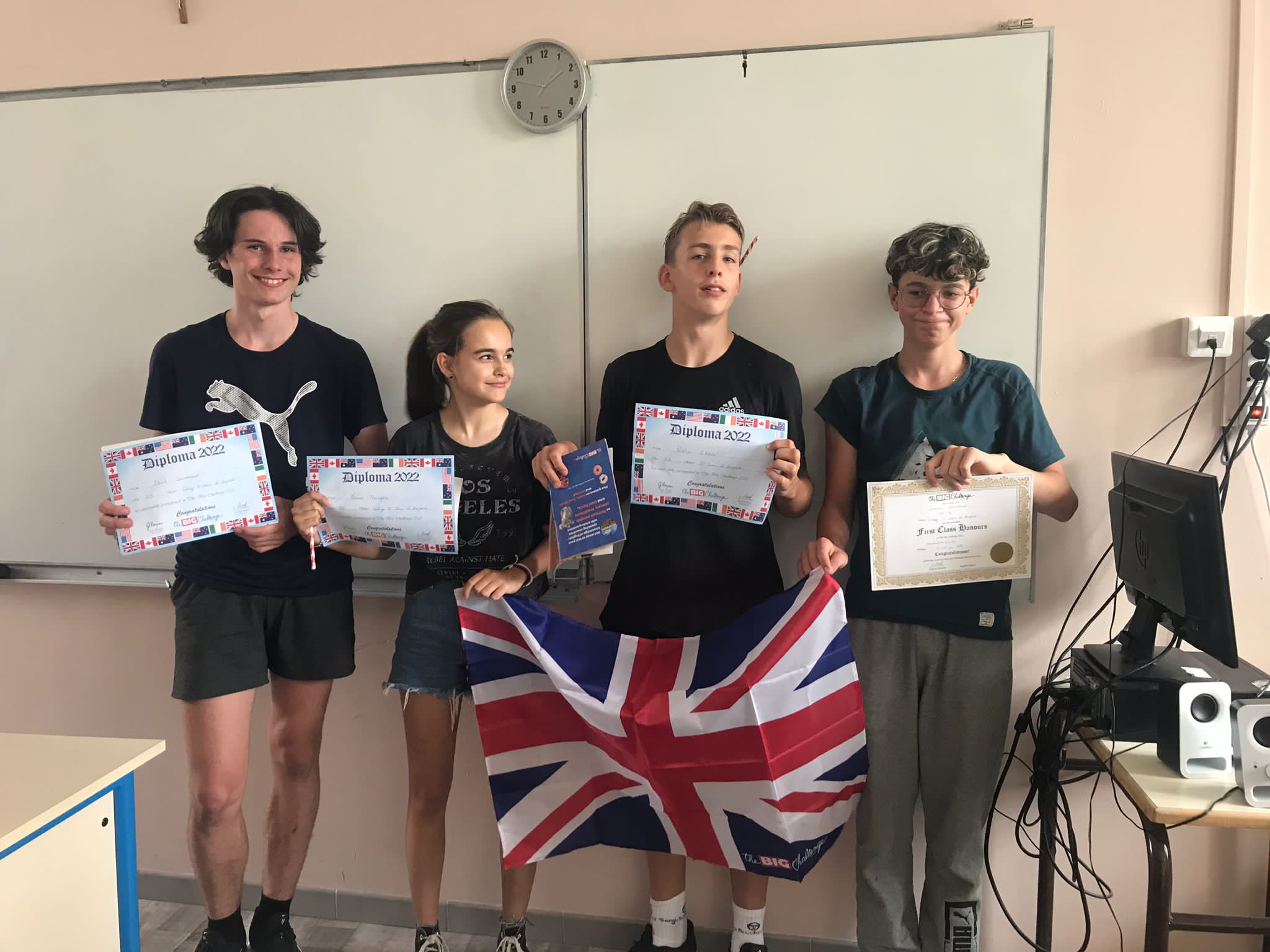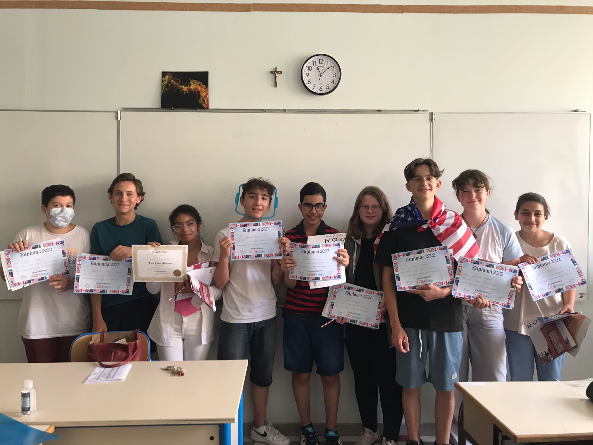 Cette semaine, les élèves qui avaient participé au Big Challenge 2022 se sont vus remettre leurs diplômes et leurs prix par les professeurs d'anglais, Mme Blanchart en 3ème et 4ème, Mme Mourre en 5ème et Mme Varela en 6ème.