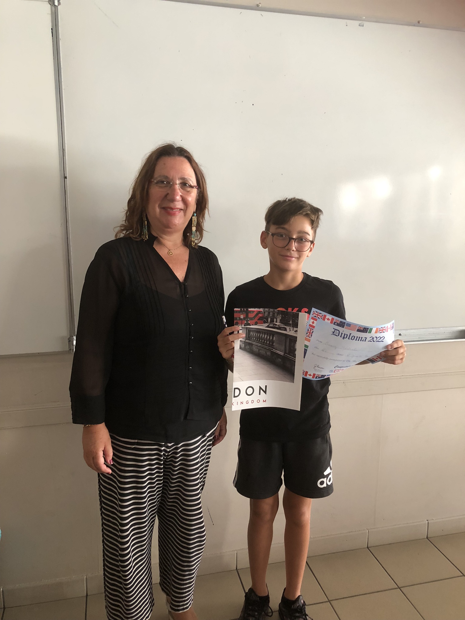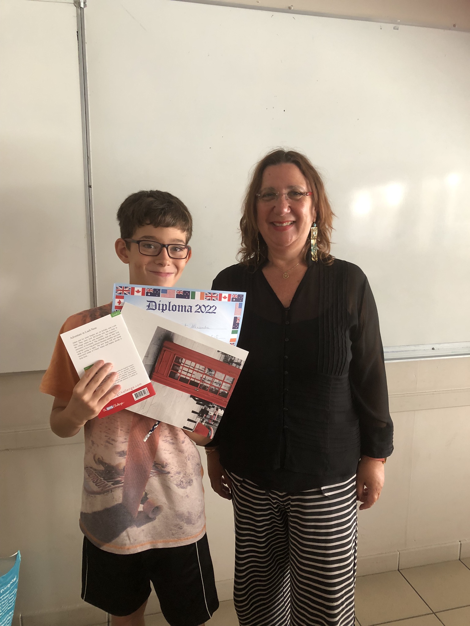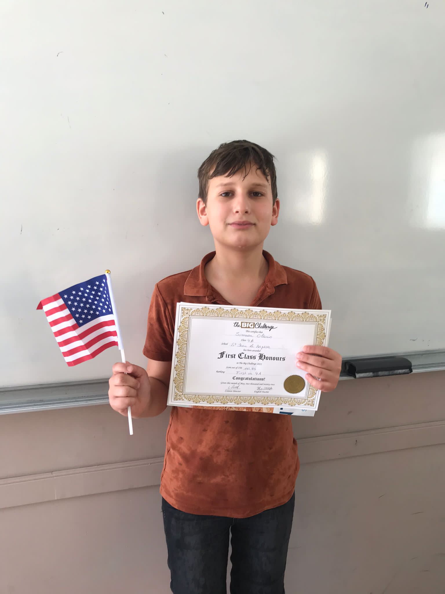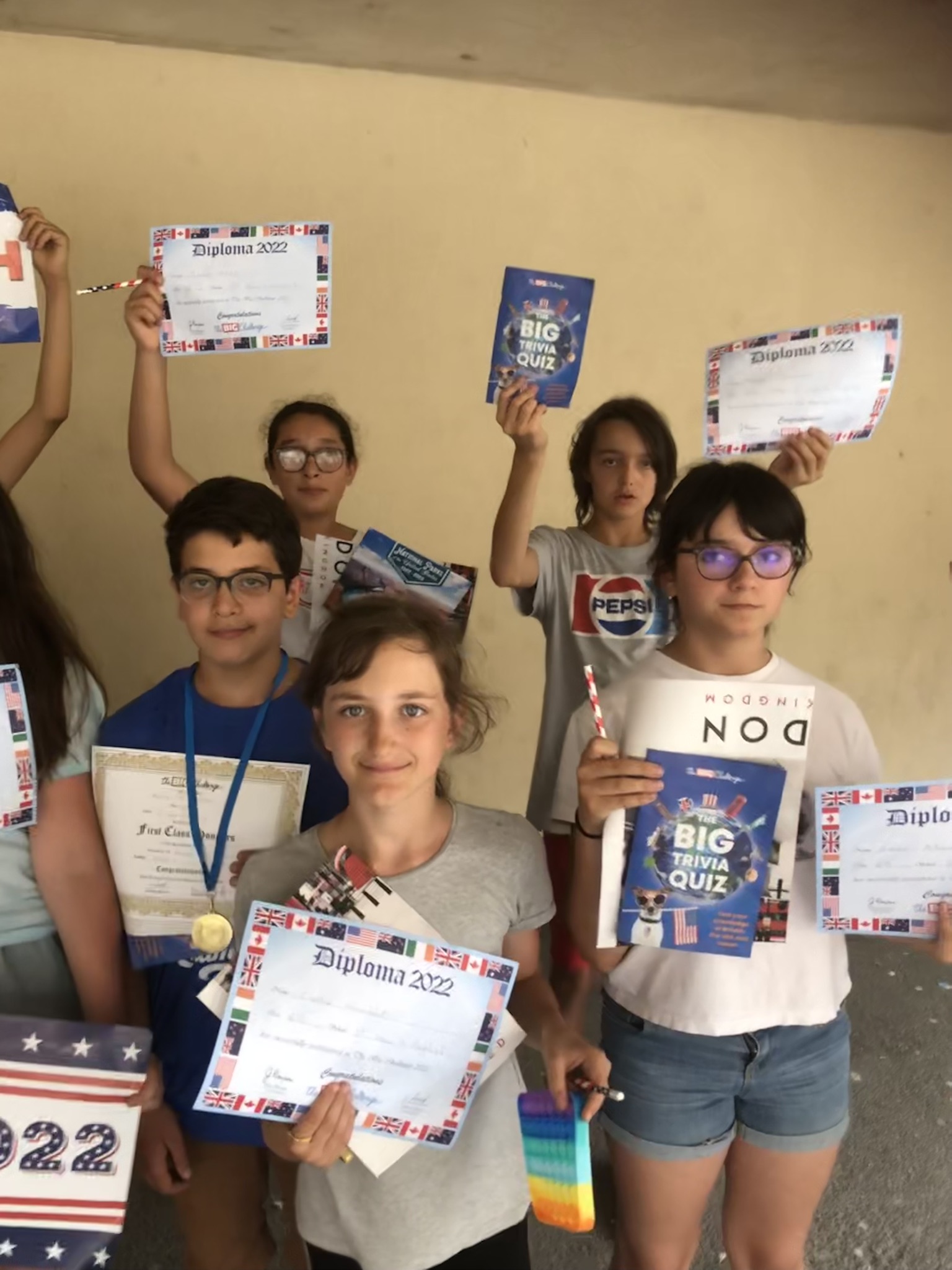 Chaque élève a reçu un diplôme à son nom, un poster et un crayon aux couleurs américaines. Les premiers de chaque classe ont reçu un diplôme doré et les premiers par niveau une médaille.