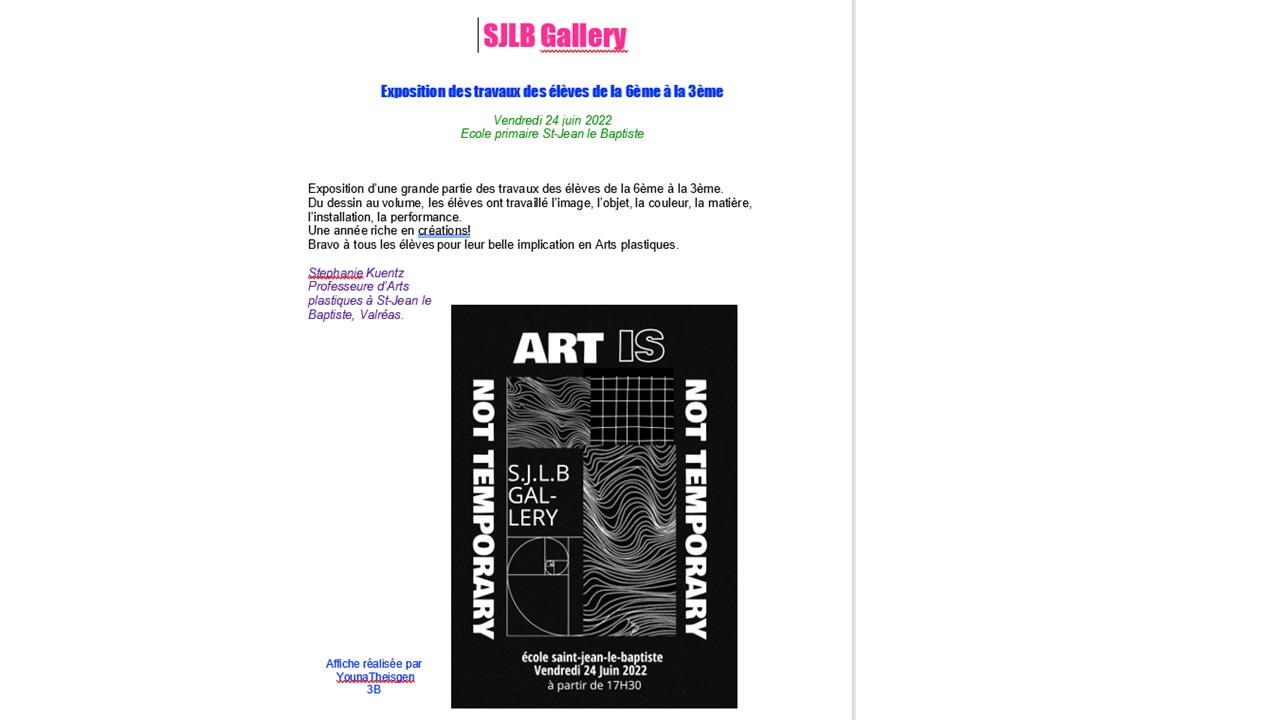 2- Exposition temporaire des œuvres réalisées par les élèves tout au long de l'année.