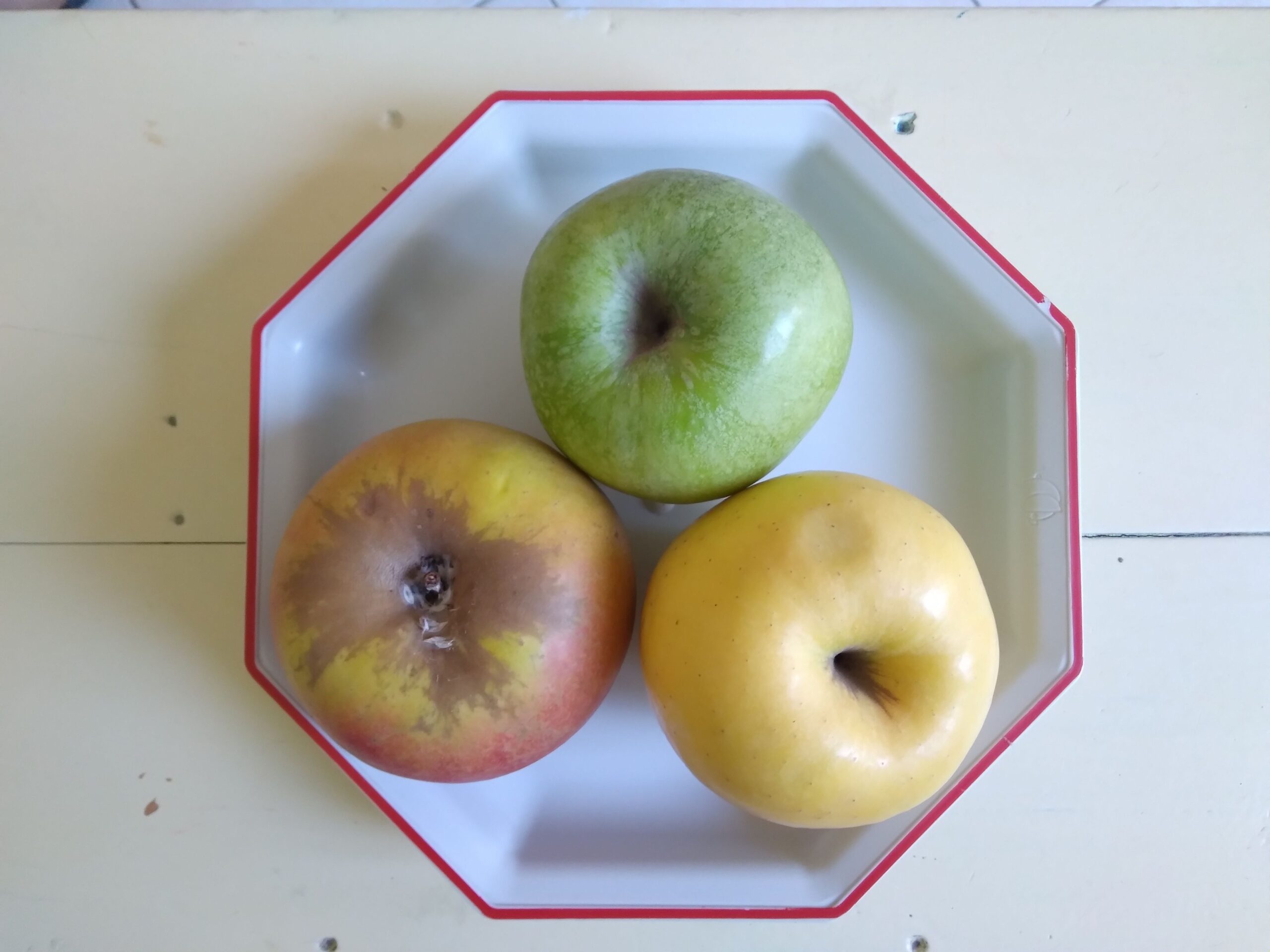Nous avons constaté que les trois pommes n'avaient pas vraiment le même goût : la reinette est plus acide, la golden est plus sucrée. Quoi qu'il en soit nous nous sommes régalé(e)s !