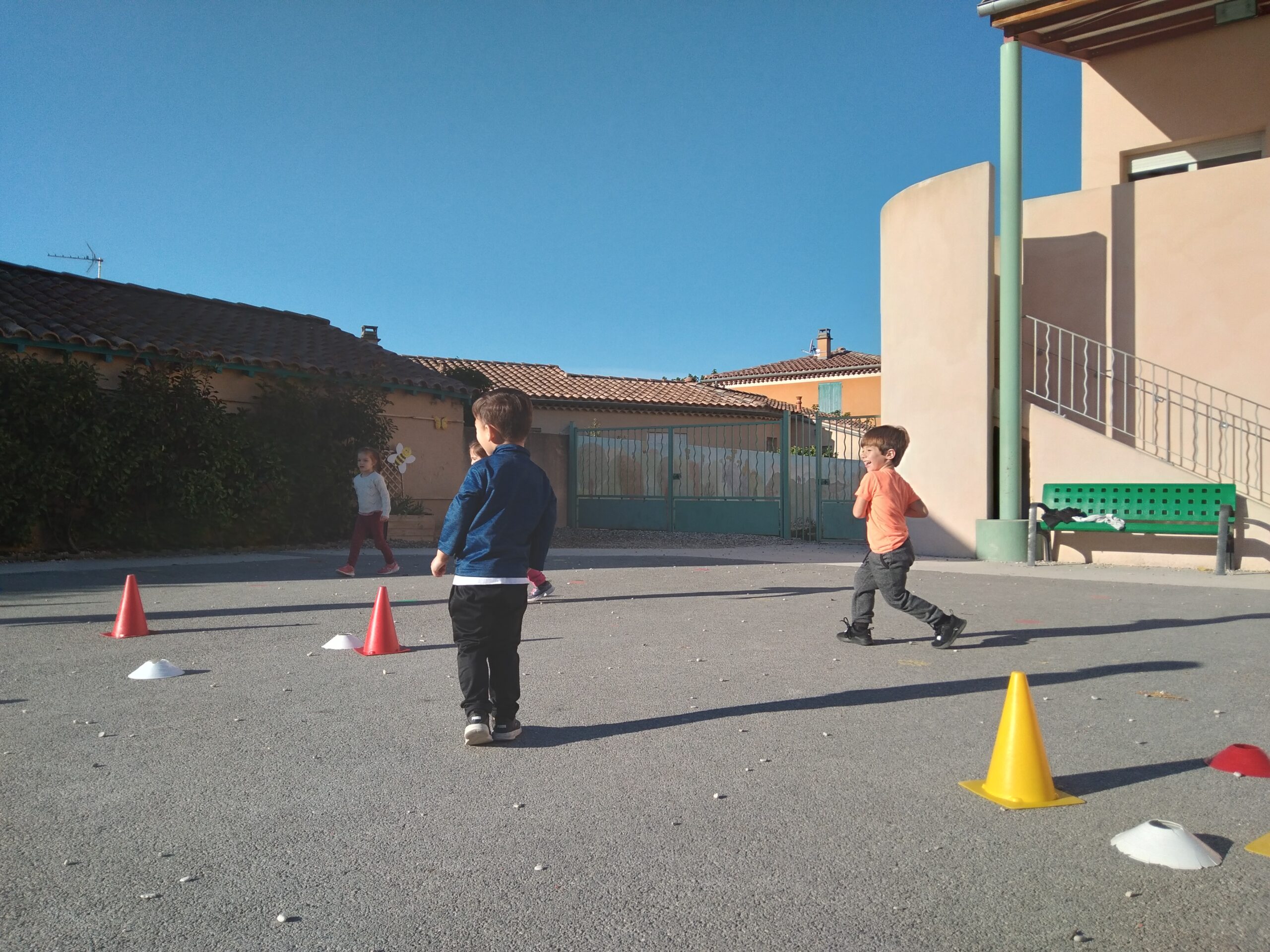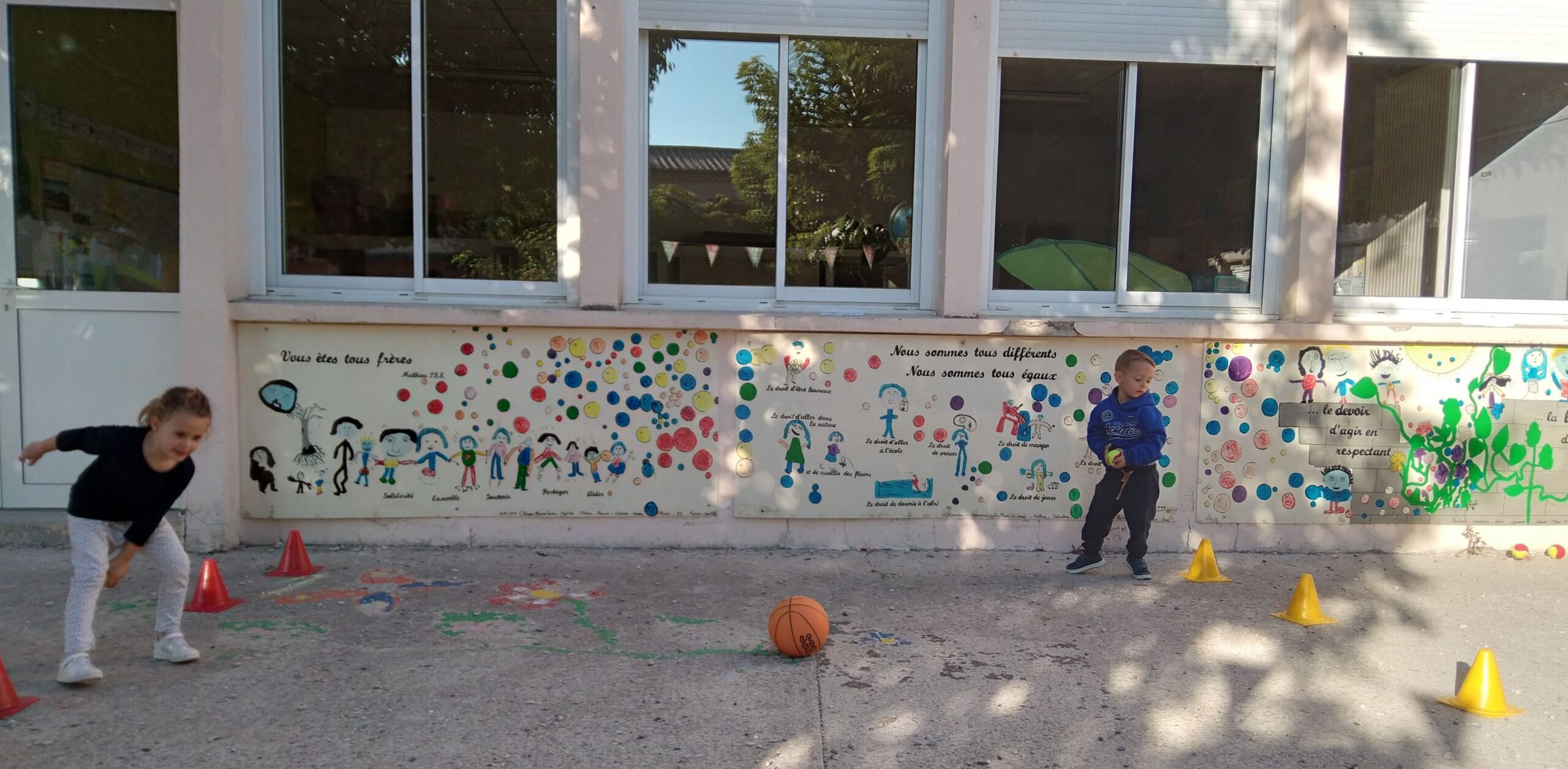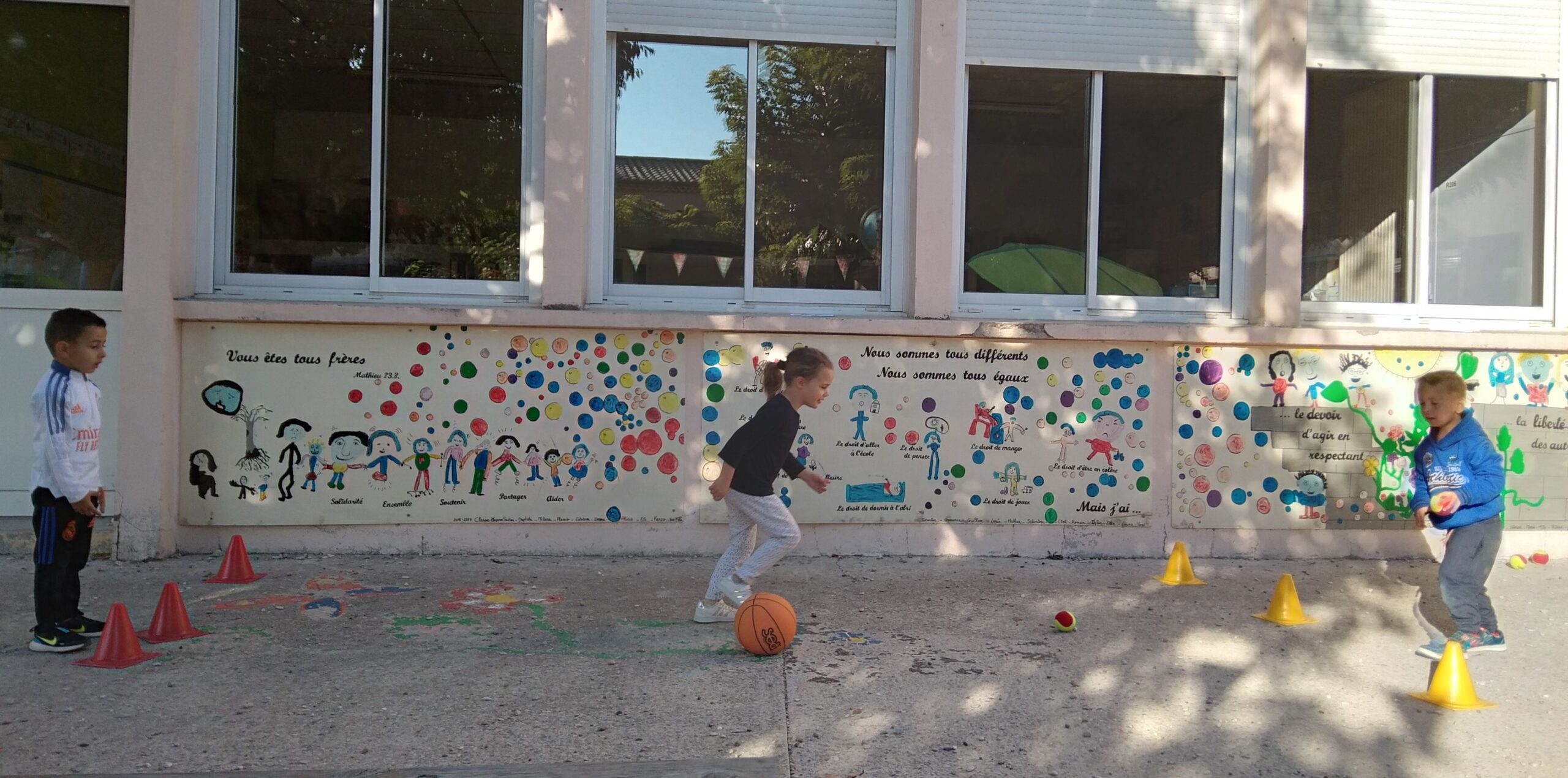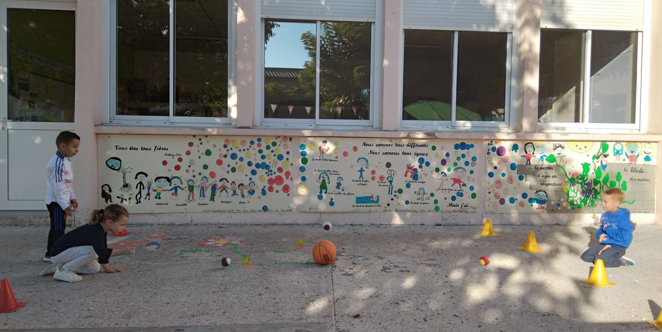 En fin de séance, toute la classe s'est retrouvée pour le grand jeu des balles brûlantes : c'est l'équipe qui a le moins de balles dans son camp qui a gagné !