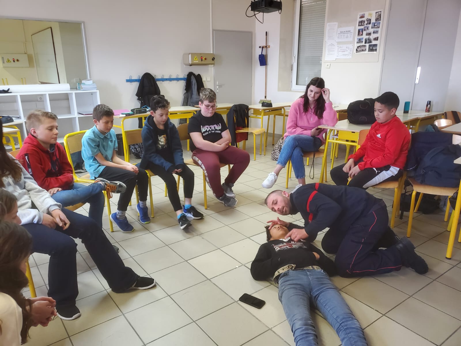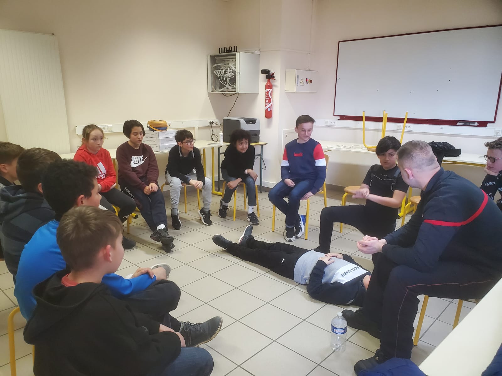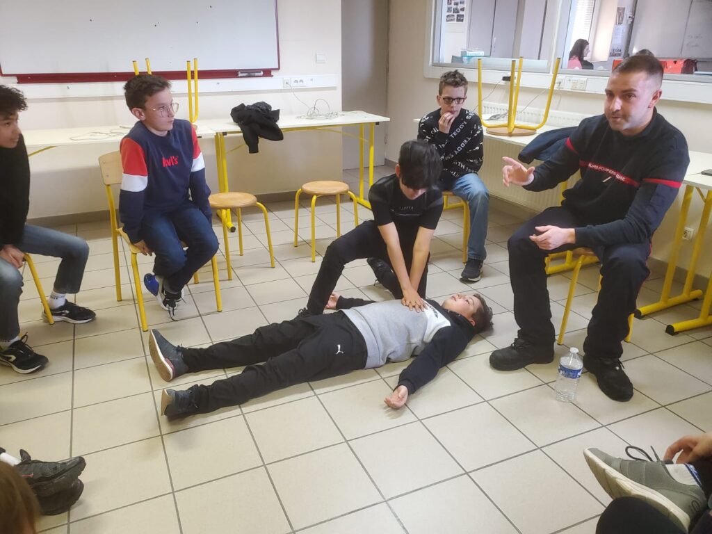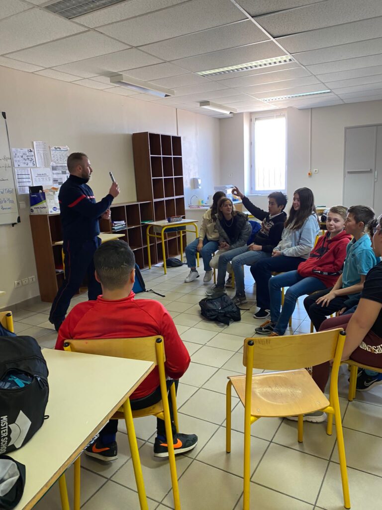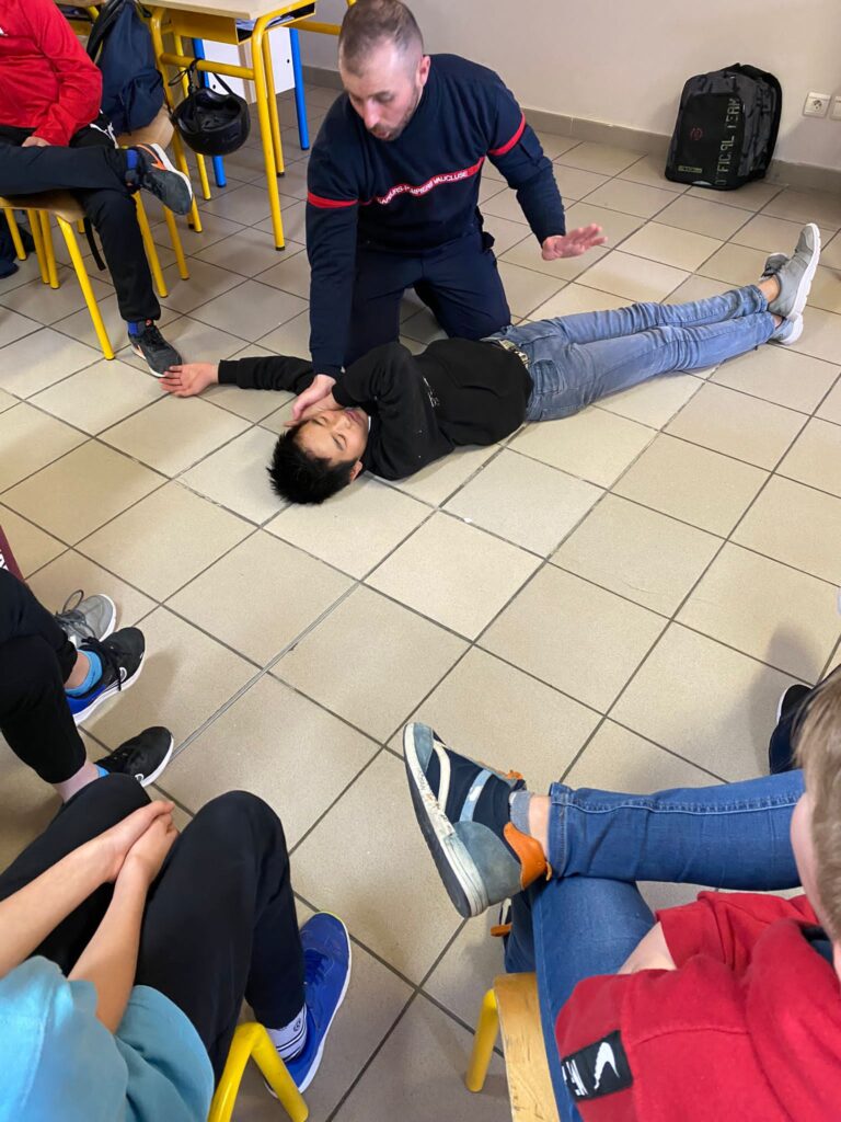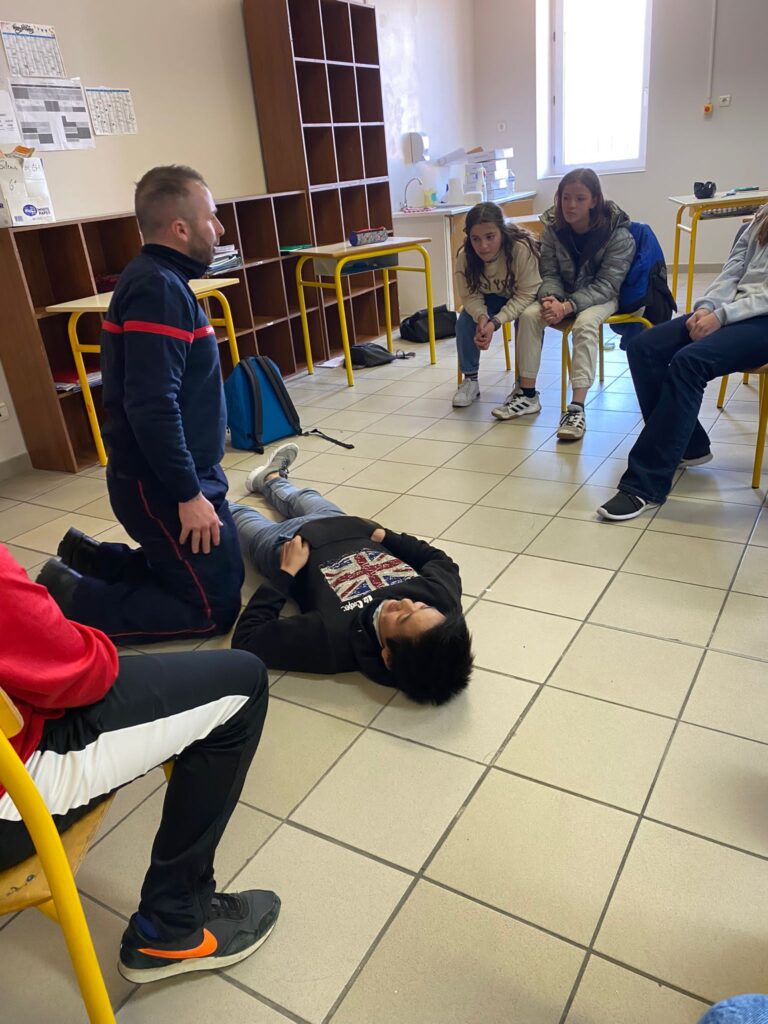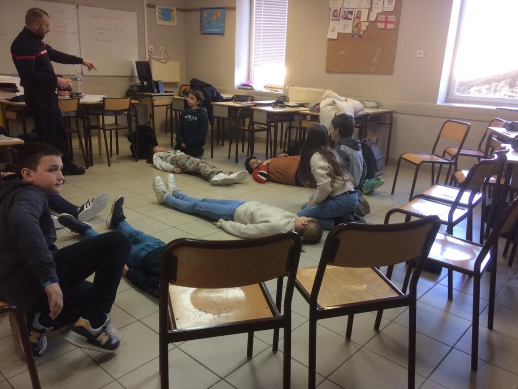 Le vendredi 3 mars a eu lieu une intervention de l'Union Départementale des sapeurs pompiers aux gestes qui sauvent en classe de 6ème, cette intervention est financée par le département, sa durée est de 2h pour chaque classe. Les professeurs étaient présents avec leurs classes afin de veiller au bon déroulement de la séance.