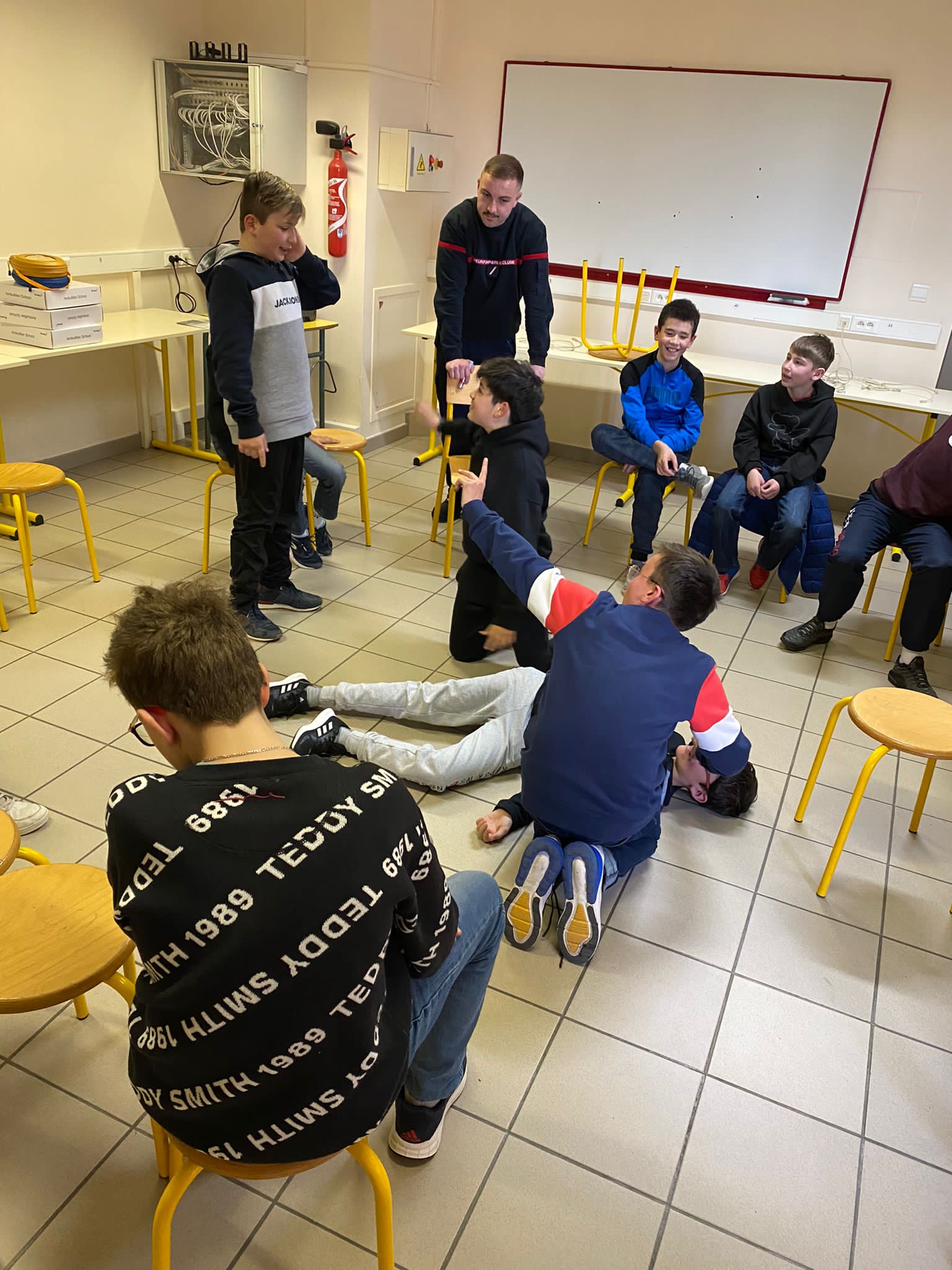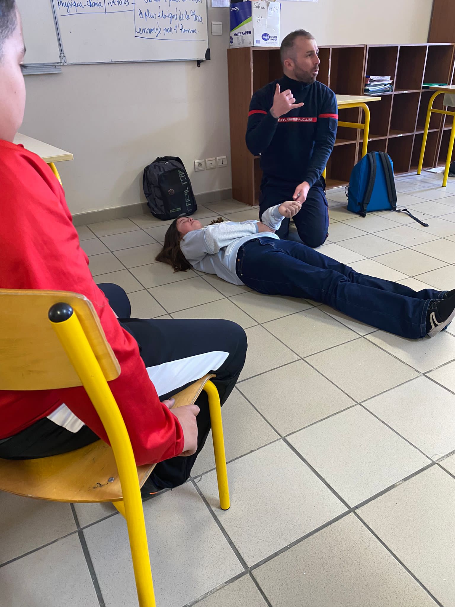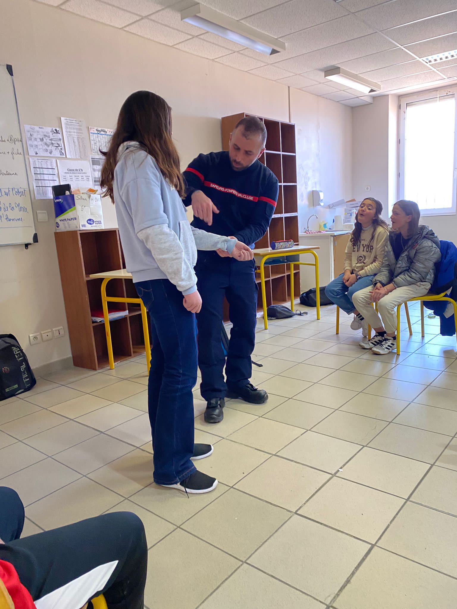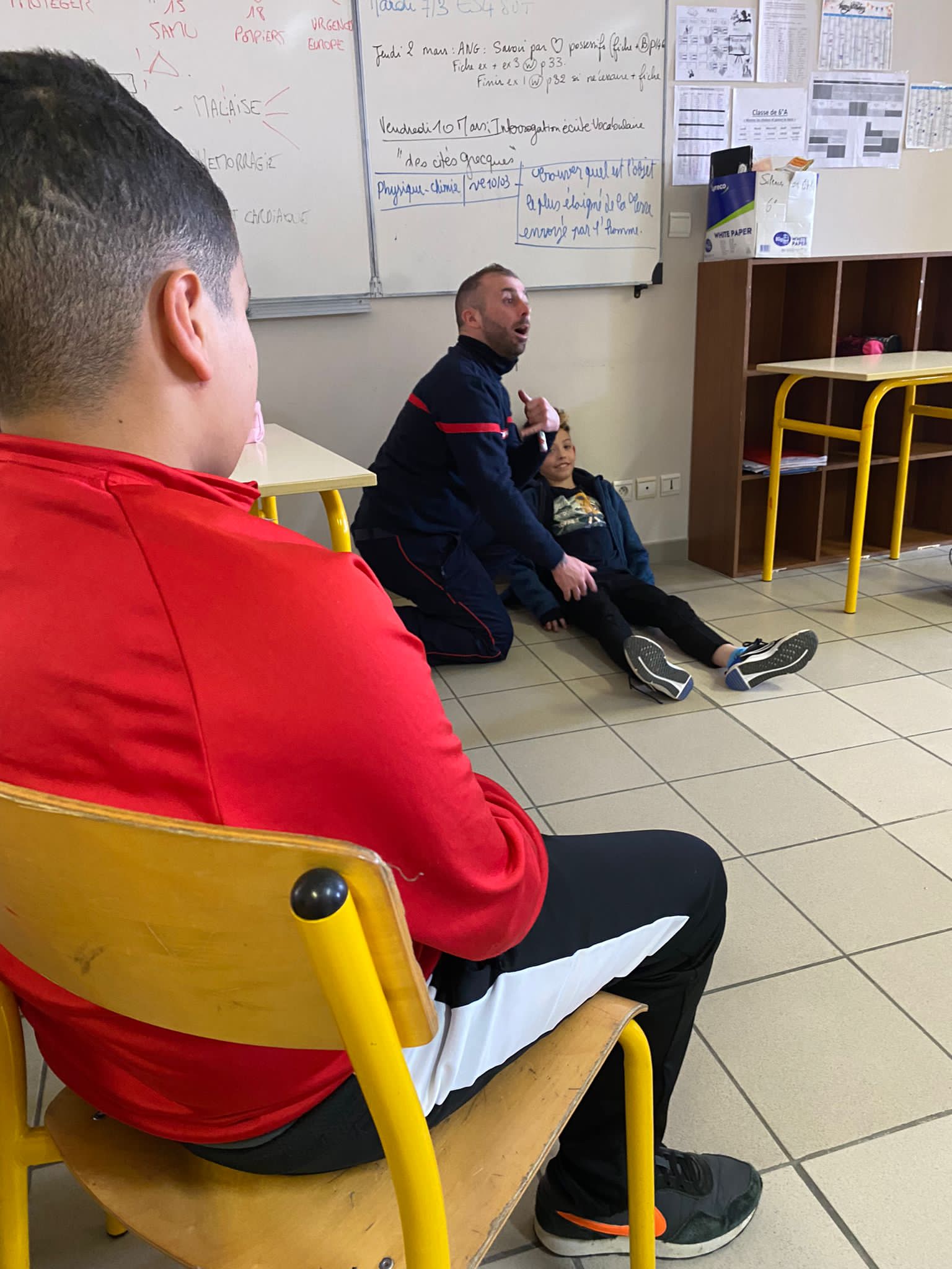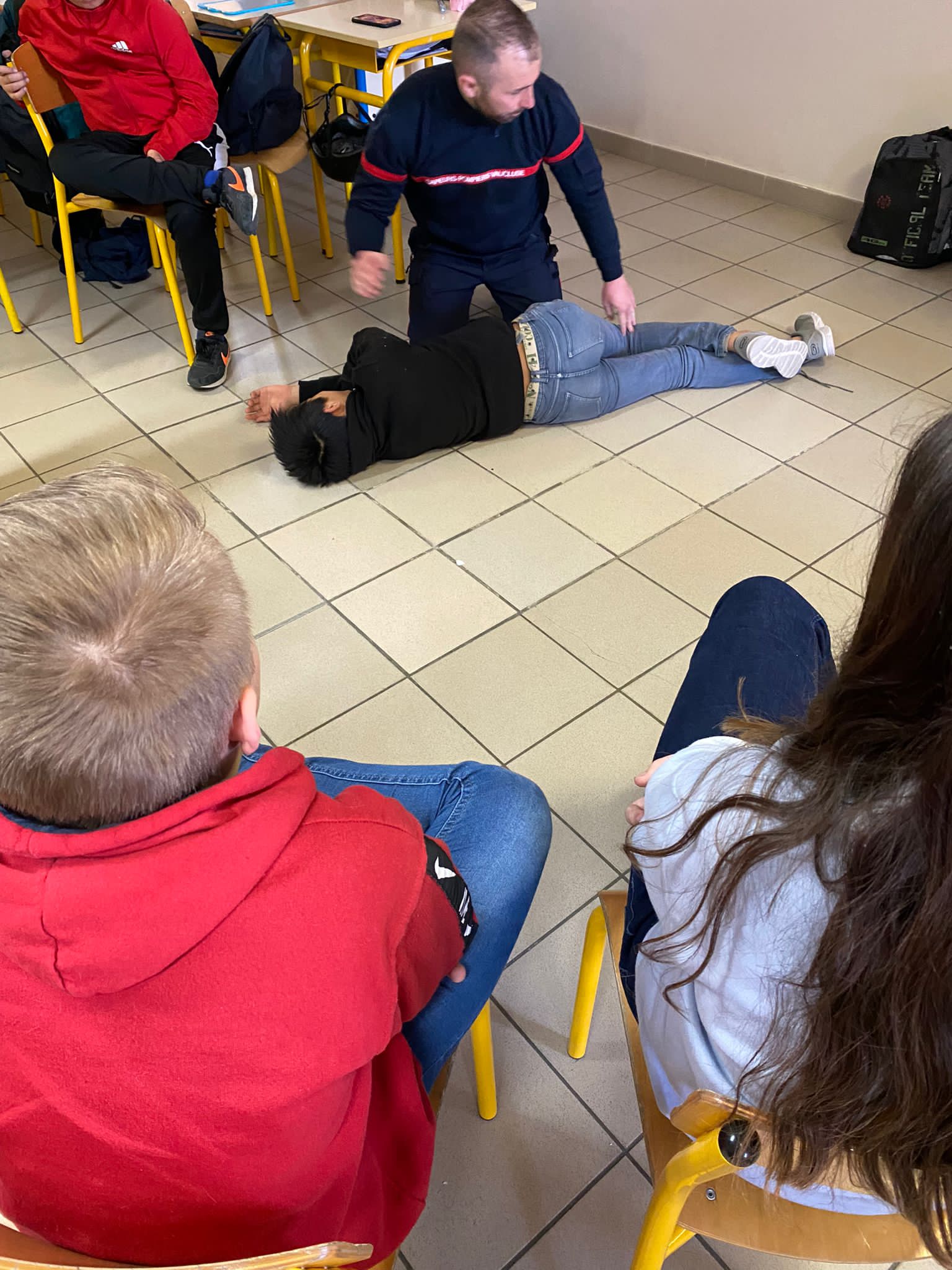 Le vendredi 3 mars a eu lieu une intervention de l'Union Départementale des sapeurs pompiers aux gestes qui sauvent en classe de 6ème, cette intervention est financée par le département, sa durée est de 2h pour chaque classe. Les professeurs étaient présents avec leurs classes afin de veiller au bon déroulement de la séance.