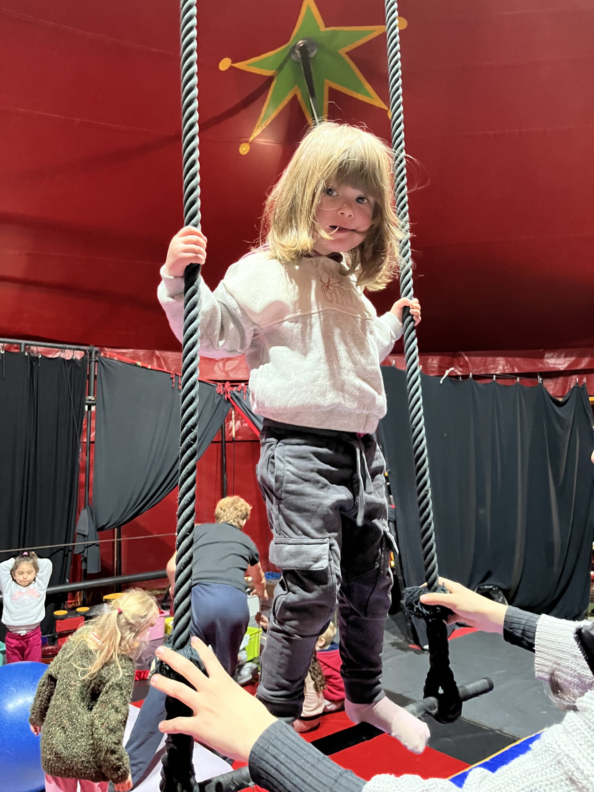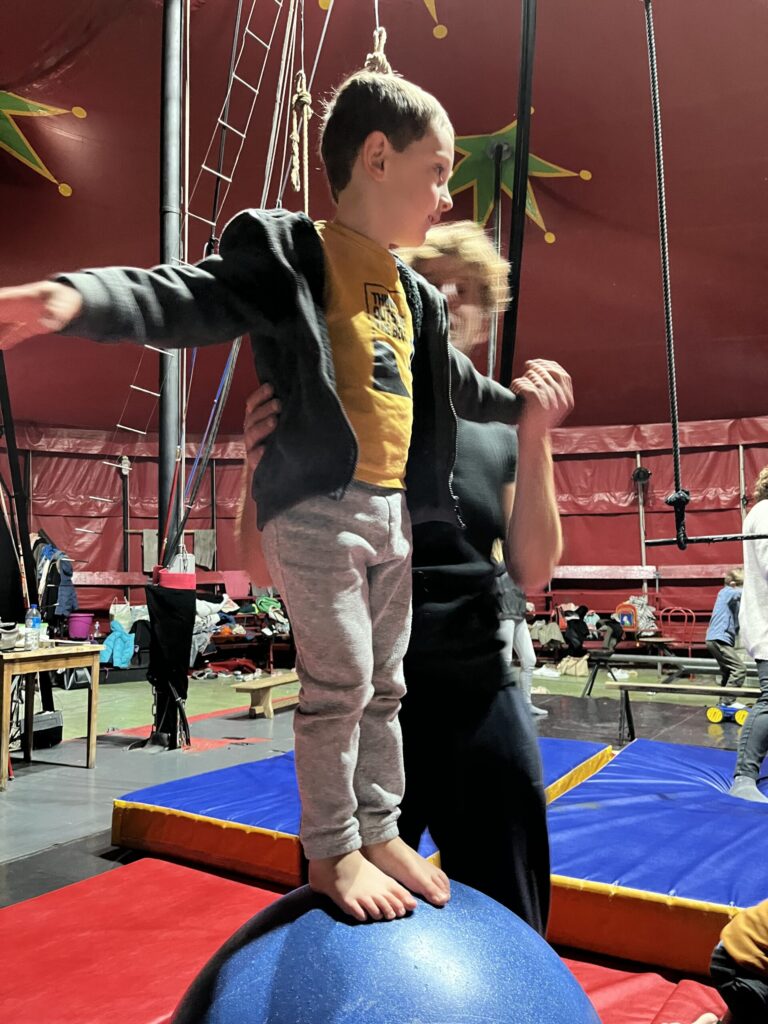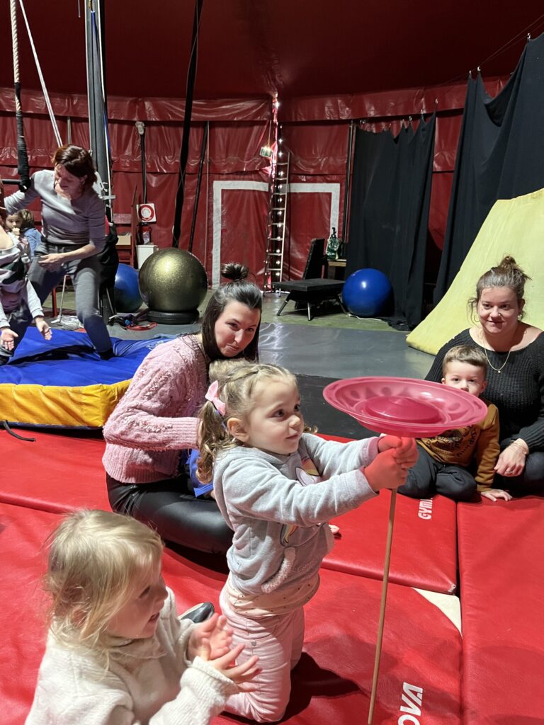 Nous démarrons notre projet cirque par une magnifique sortie à l'école de cirque des Pilles sous chapiteau. Un moment magique où les yeux des enfants pétillent !