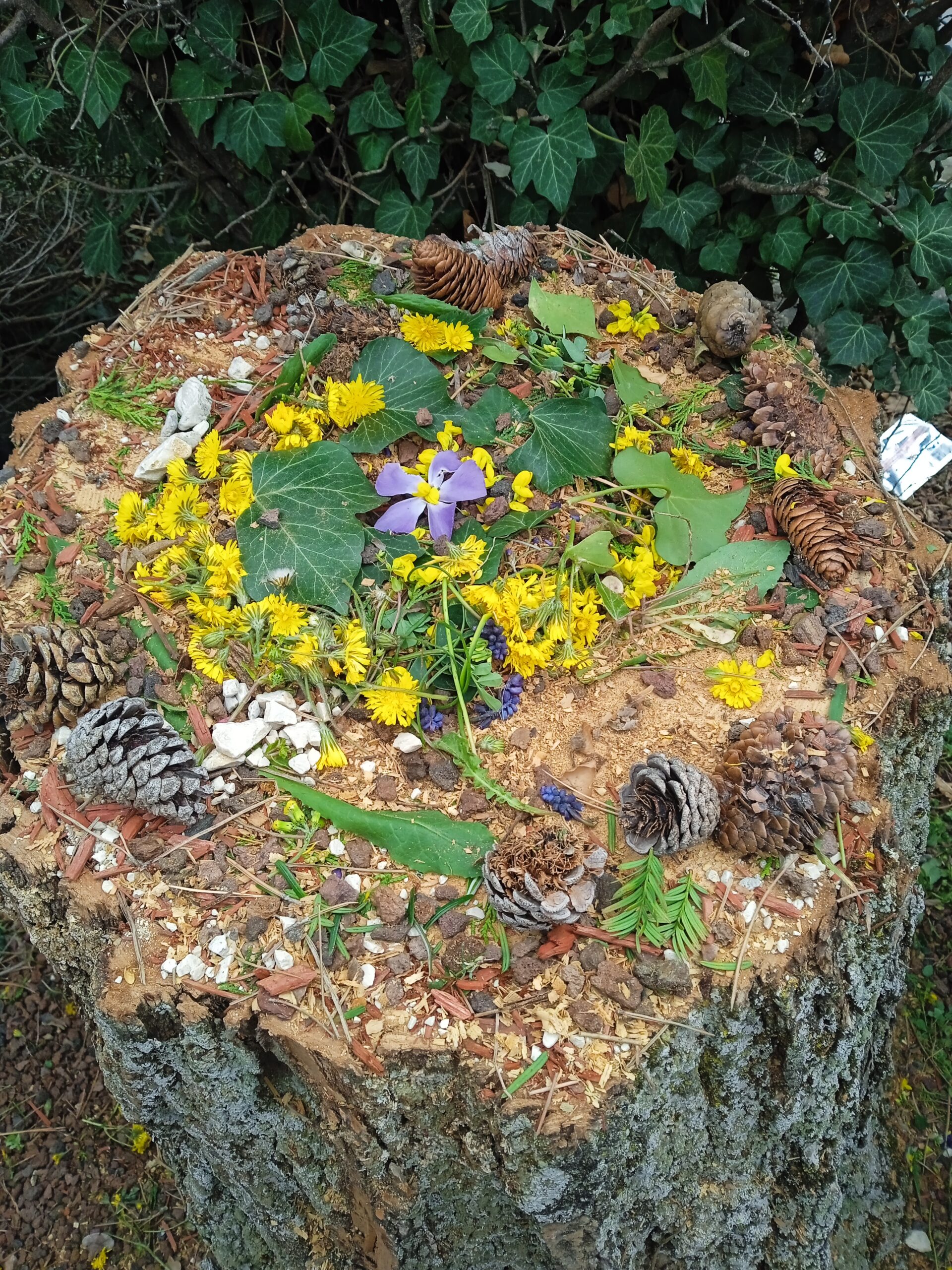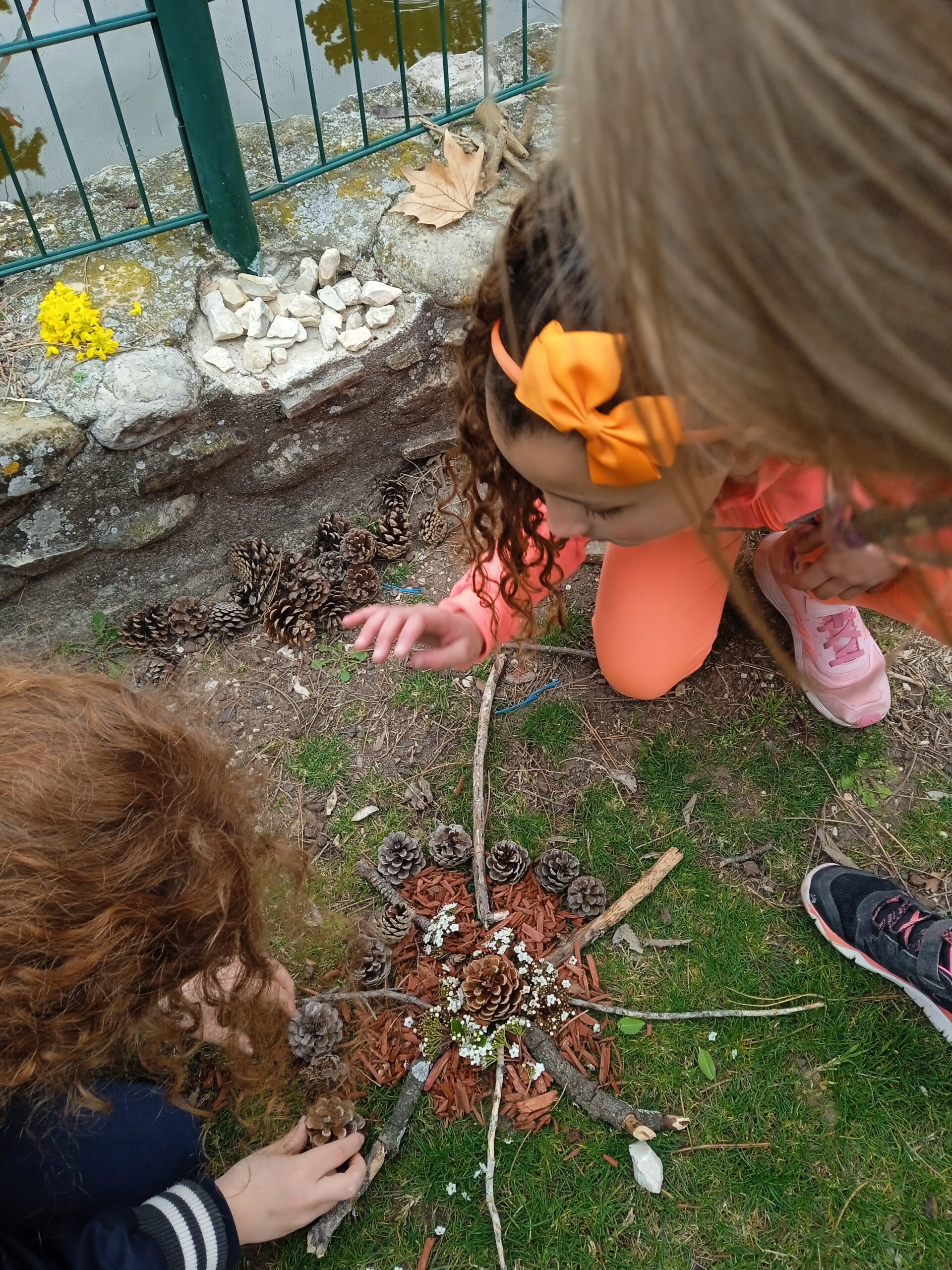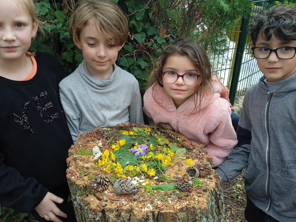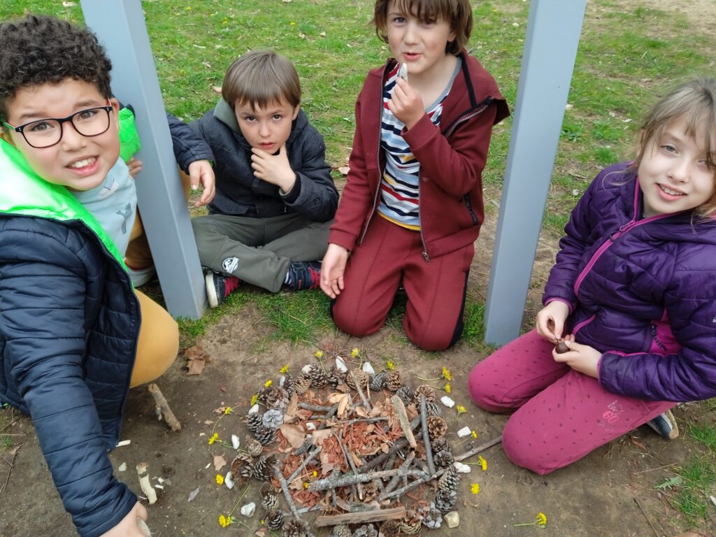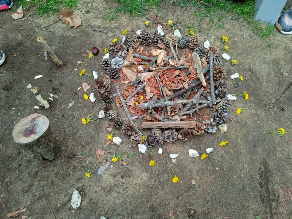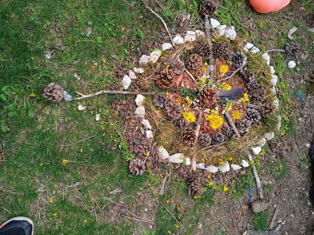 Puis la mission de la semaine pour le carême nous attendait : celle de tisser des liens et de s'entendre pour réaliser une activité ensemble. Après avoir formé 5 groupes de manière aléatoire, nous avons réalisé "une oeuvre d'art" avec des éléments de la nature ! Tout le monde a bien participé dans un bon esprit !