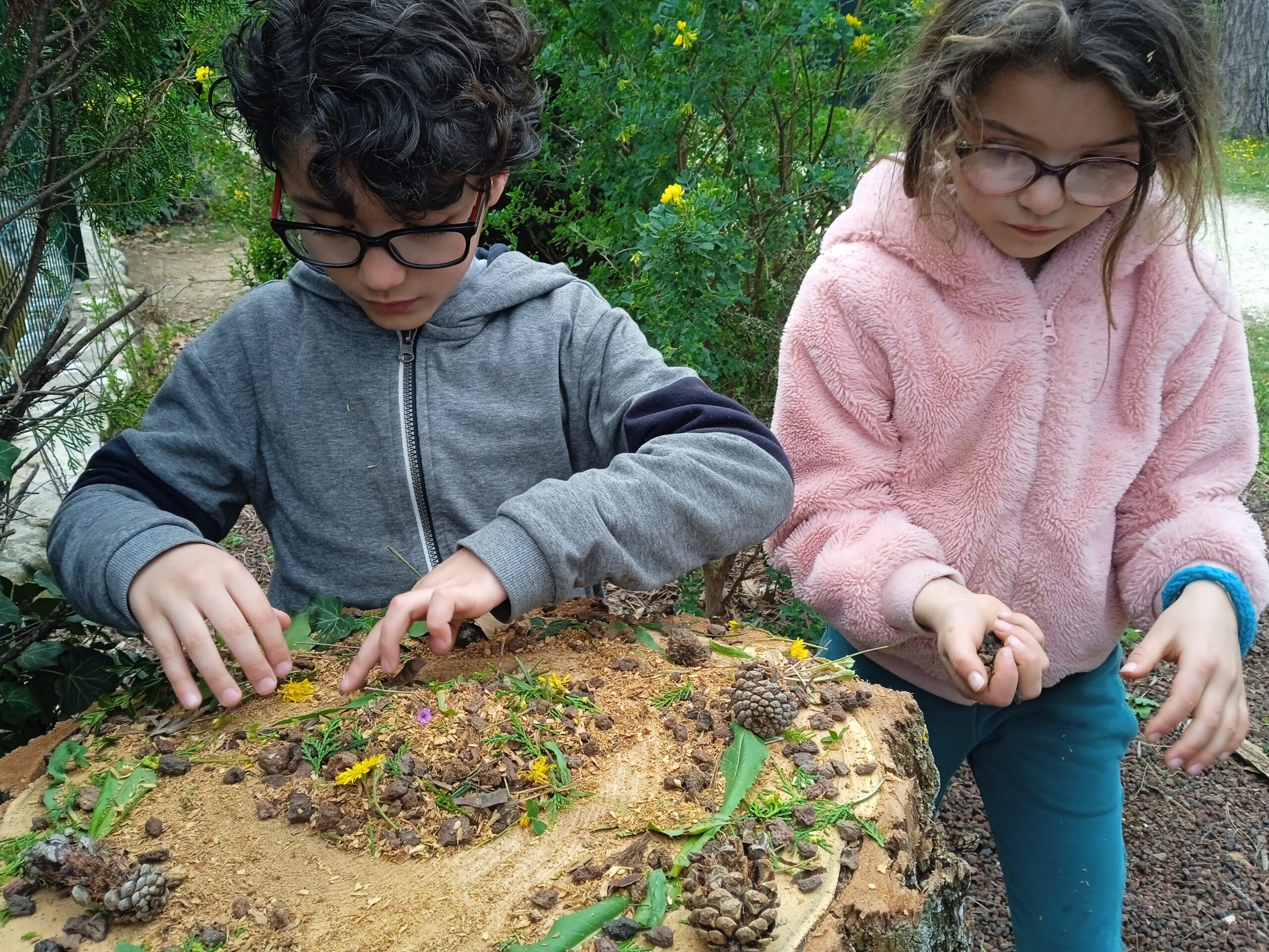 Ce jeudi 23 mars, par une belle après-midi printanière nous nous sommes rendus au jardin de Pied Vaurias pour 2 activités : le quart d'heure de "Silence, on lit! " comme tous les jeudis et une activité de "land's art".