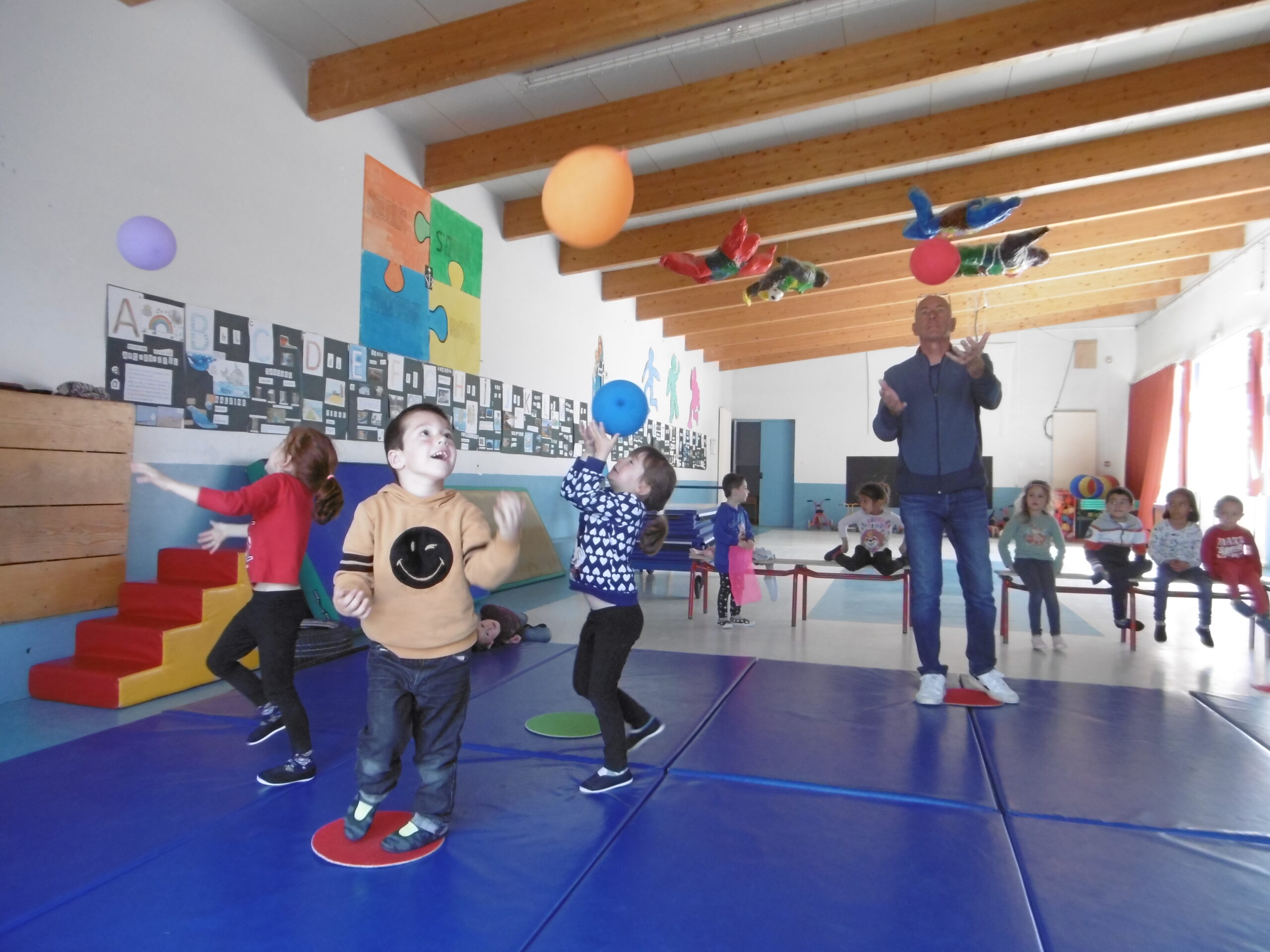 Depuis plusieurs semaines, avec Bruno Cortinovis nous préparons un spectacle de cirque, qui sera présenté aux parents jeudi 13 avril. Voici quelques photos de notre atelier de jeudi 30 mars.