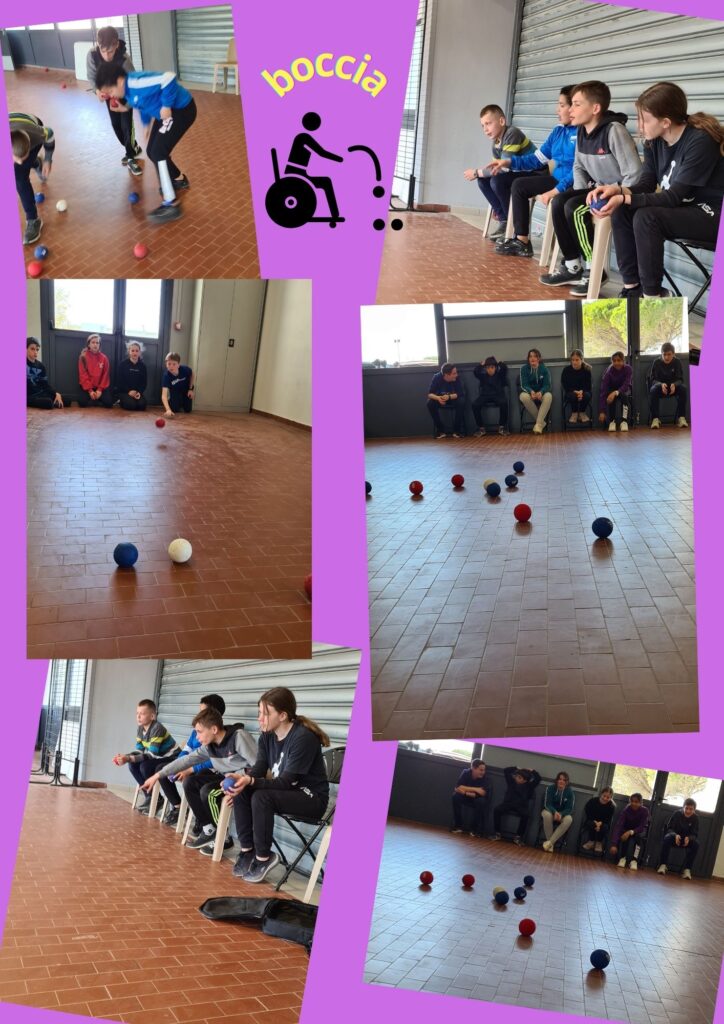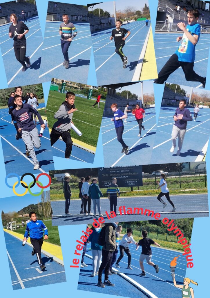 A l'occasion de la semaine olympique et paralympique, le collège Giono à Orange organisait ce mercredi 5 avril, pour les AS volontaires une journée multisports autour de sports olympiques et paralympiques. Peu d'AS se sont mobilisées mais nos élèves eux étaient bien présents et enthousiastes comme toujours. Vingt élèves ont répondu à l'appel et se sont prêtés au jeu. Un programme varié nous attendait : escalade (bloc) d'abord, puis basket encadré par des élèves de terminales en spécialité EPS. Ils ont ensuite pu tester le tir à l'arc et ont fait un relais en biathlon (course puis tir puis passage de relais au suivant ...). Après une pause pique-nique, les élèves ont été sensibilisés à deux sports paralympiques : le basket fauteuil et la boccia (pétanque assise). Enfin, une courte cérémonie autour des valeurs de l'olympisme a permis de de lancer un relais permettant de faire parcourir à une flamme olympique imaginaire 2024m.. Et pas trop fatigués après tous ces moments de sports partagés ils ont même fait un petit sprint de 400m chronométré autour de la superbe piste bleue du stade d'Orange ! Histoire de profiter jusqu'au bout... ! Bravo à eux ! Mme Chuffart