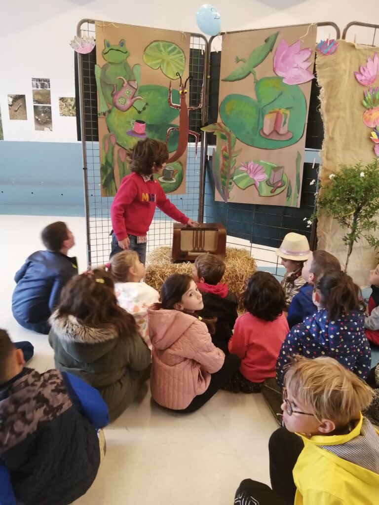 Lors de la journée nature du 16 mai 2023 "Voyage autour de l'eau", les élèves de CP ont entendu l'enregistrement du conte pour la première fois. Quelle émotion ! Entendre sa voix dans "ces drôles de boîtes" ! Puis groupe après groupe, tous les enfants de l'école ont écouté le conte "Charly, le meilleur pour la fin" en suivant le chemin ponctué par les postes vintages.