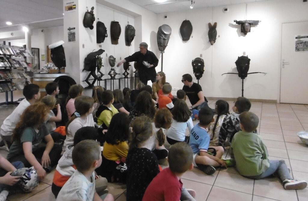 Mardi 23 mai après-midi, les deux classes de MS et CE1 ont visité ensemble deux expositions à Valréas : les photos de Muriel Pellegrin à l'hôtel de Simiane puis les masques de Georges Belenguier à l'office de tourisme.