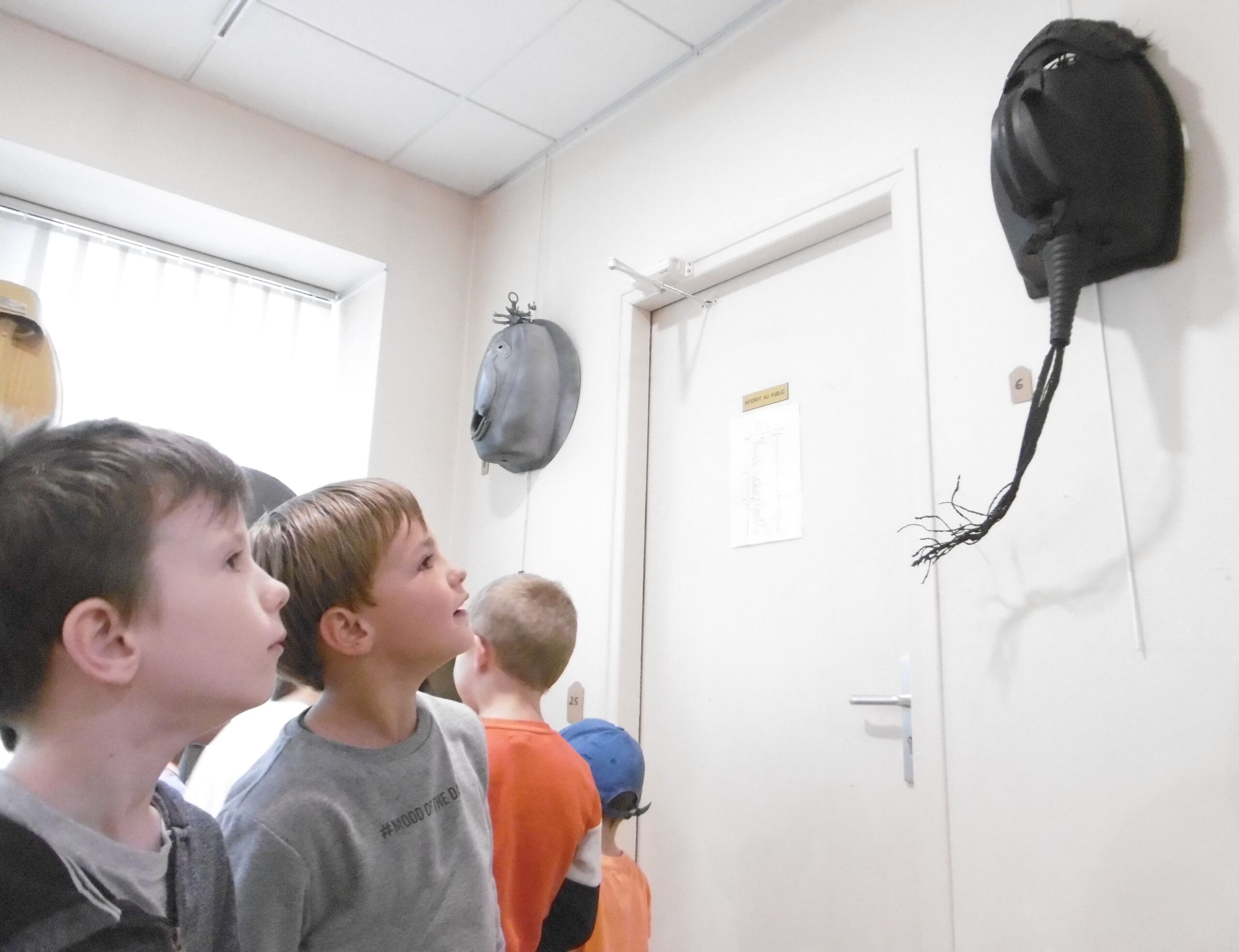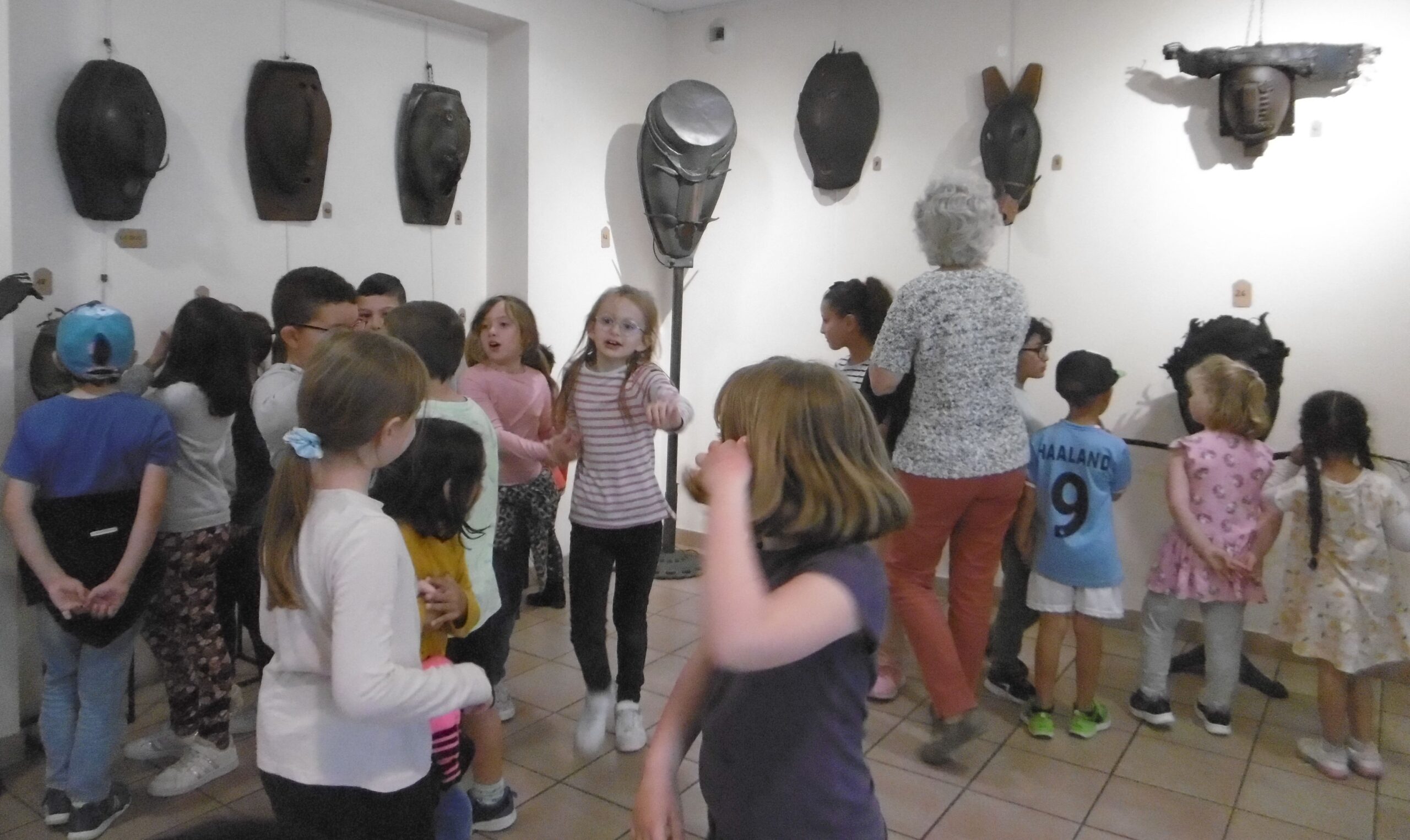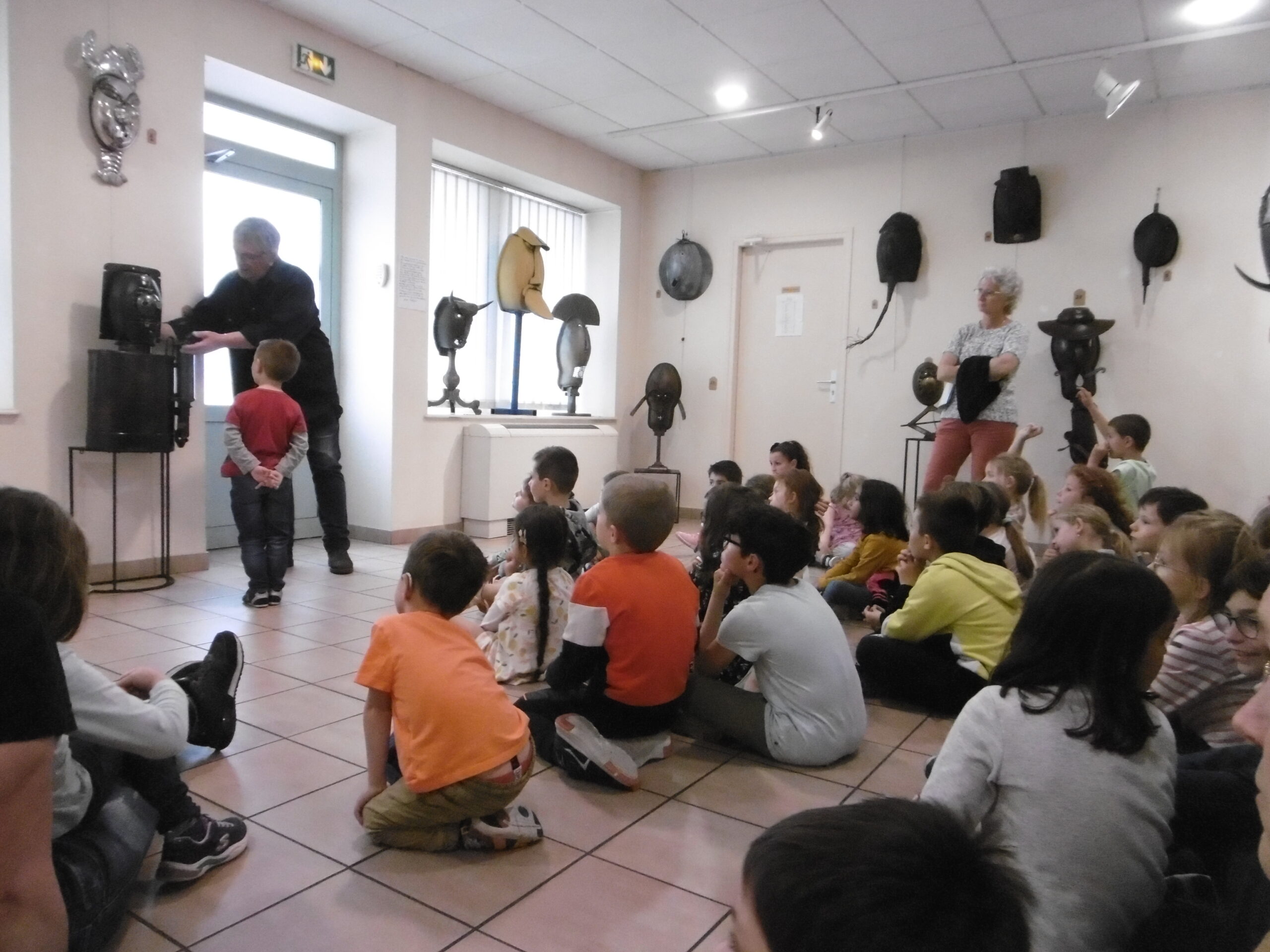 Mardi 23 mai après-midi, les deux classes de MS et CE1 ont visité ensemble deux expositions à Valréas : les photos de Muriel Pellegrin à l'hôtel de Simiane puis les masques de Georges Belenguier à l'office de tourisme.
