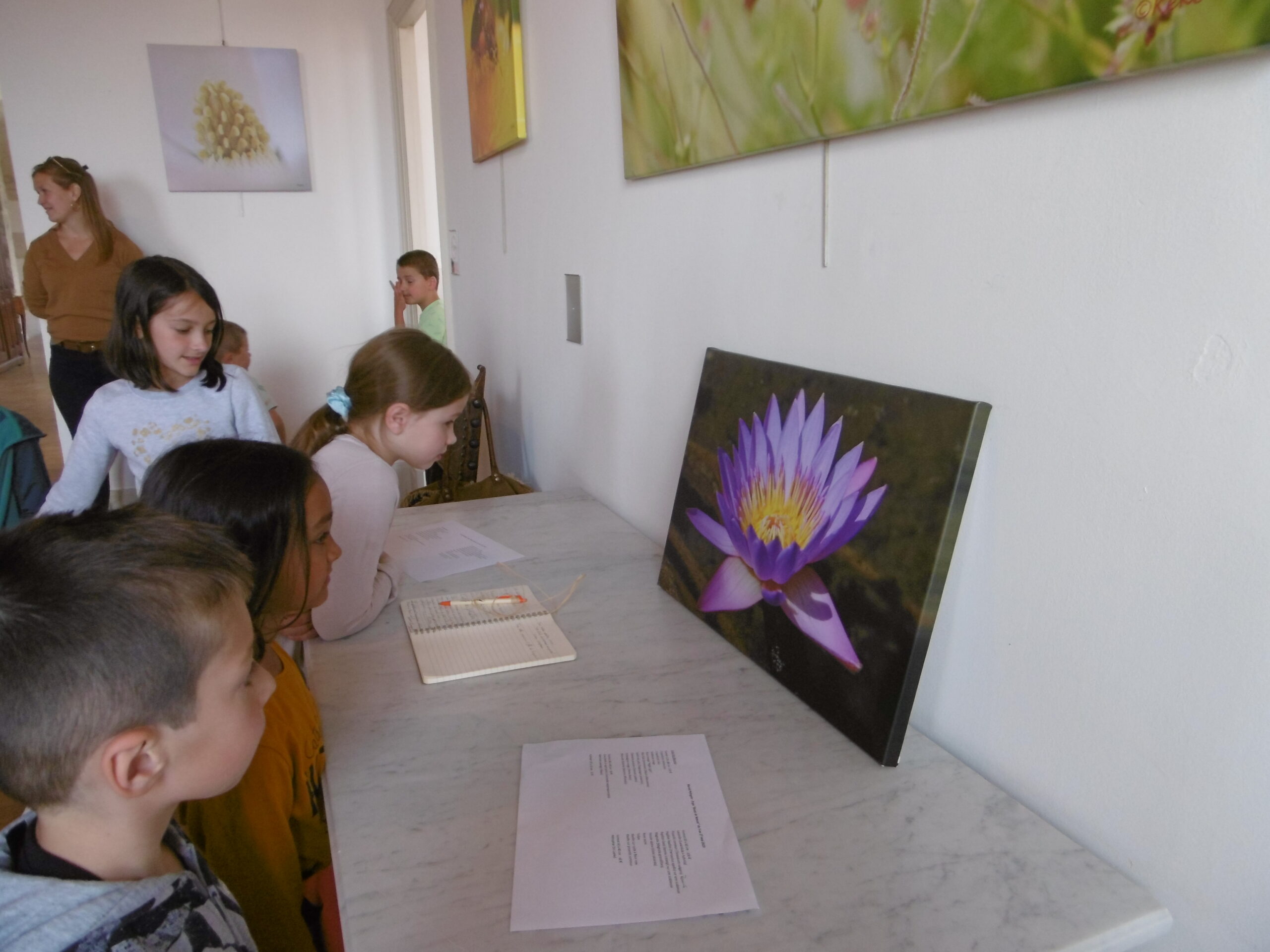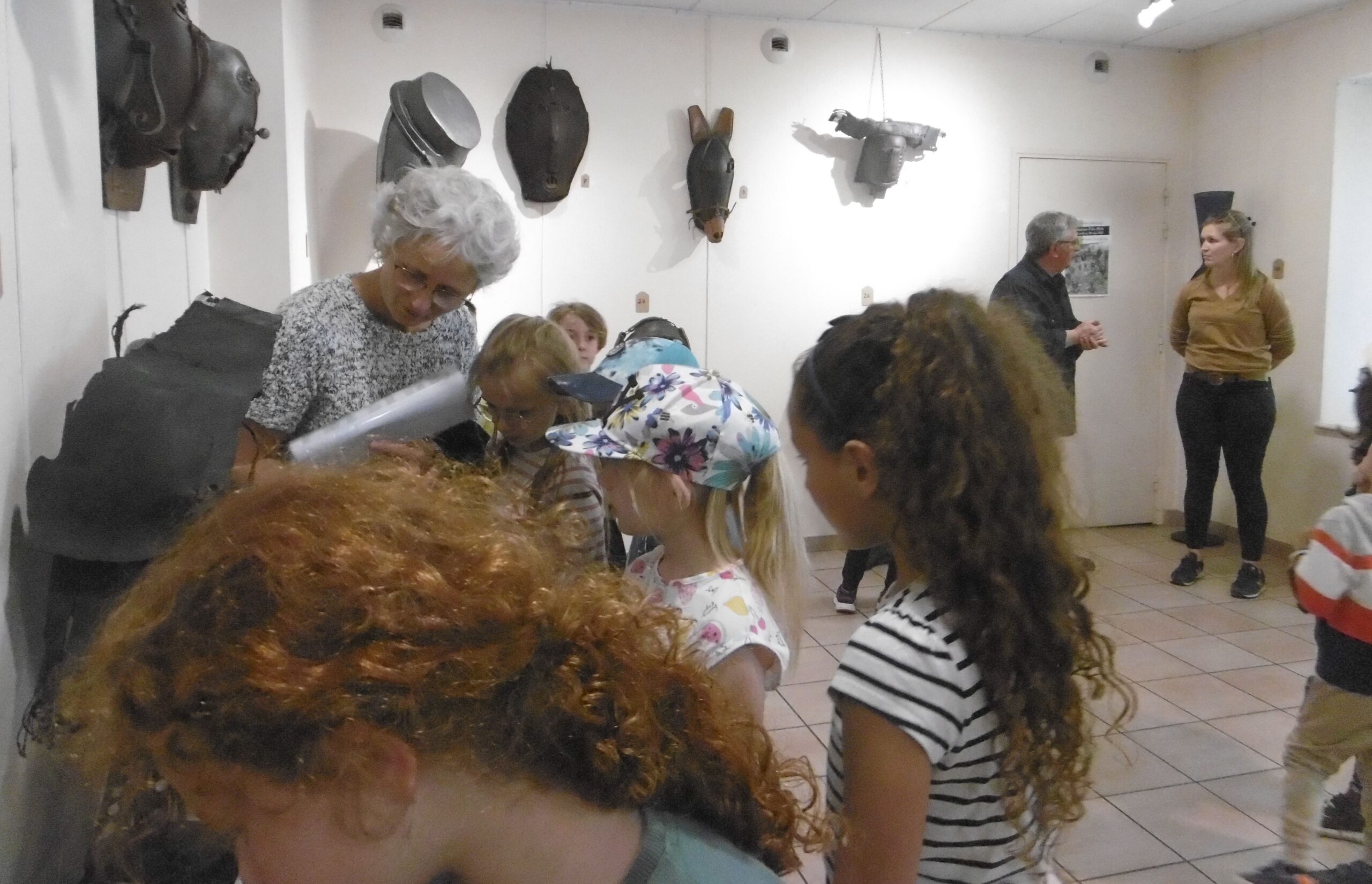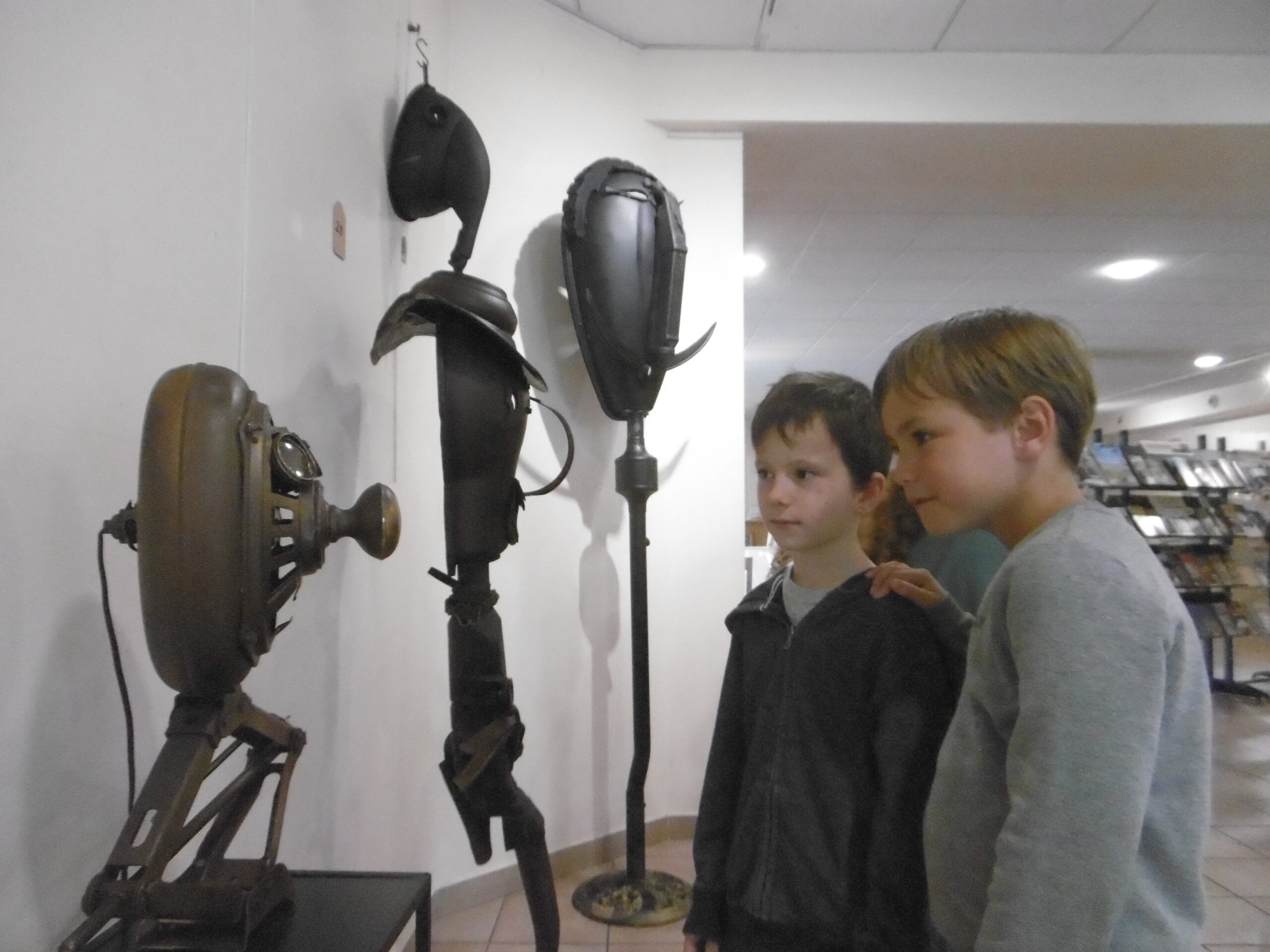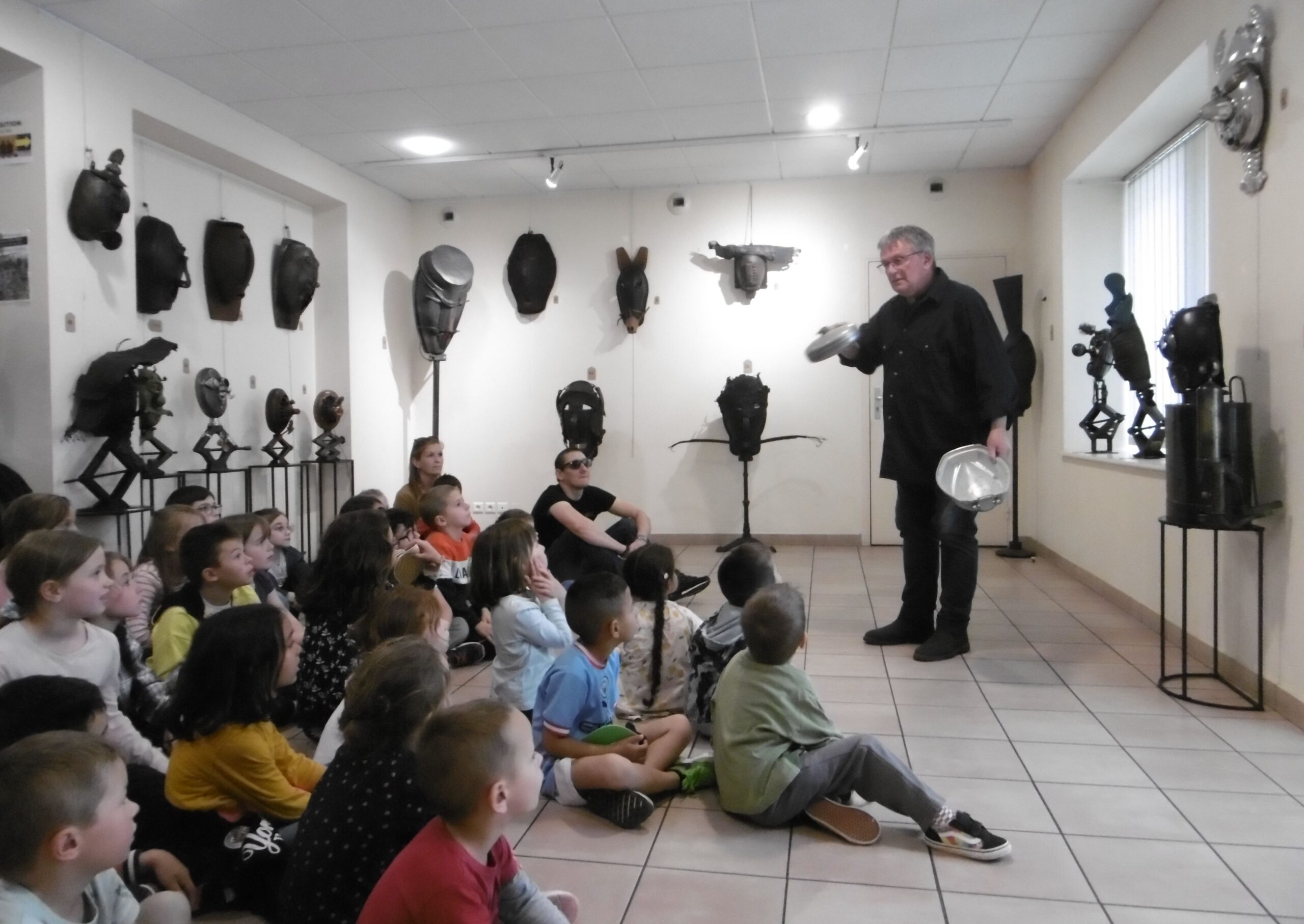 Mardi 23 mai après-midi, les deux classes de MS et CE1 ont visité ensemble deux expositions à Valréas : les photos de Muriel Pellegrin à l'hôtel de Simiane puis les masques de Georges Belenguier à l'office de tourisme.