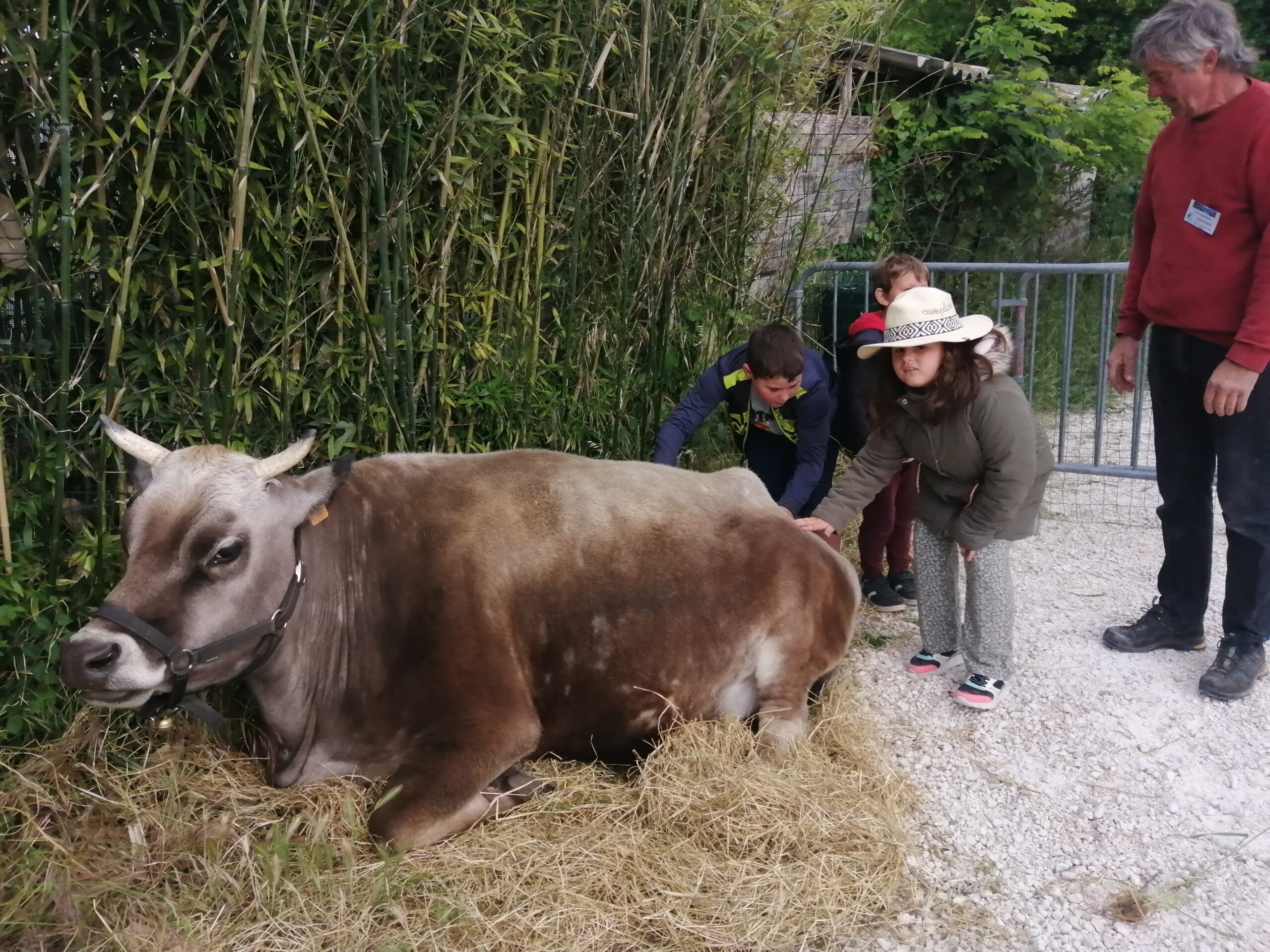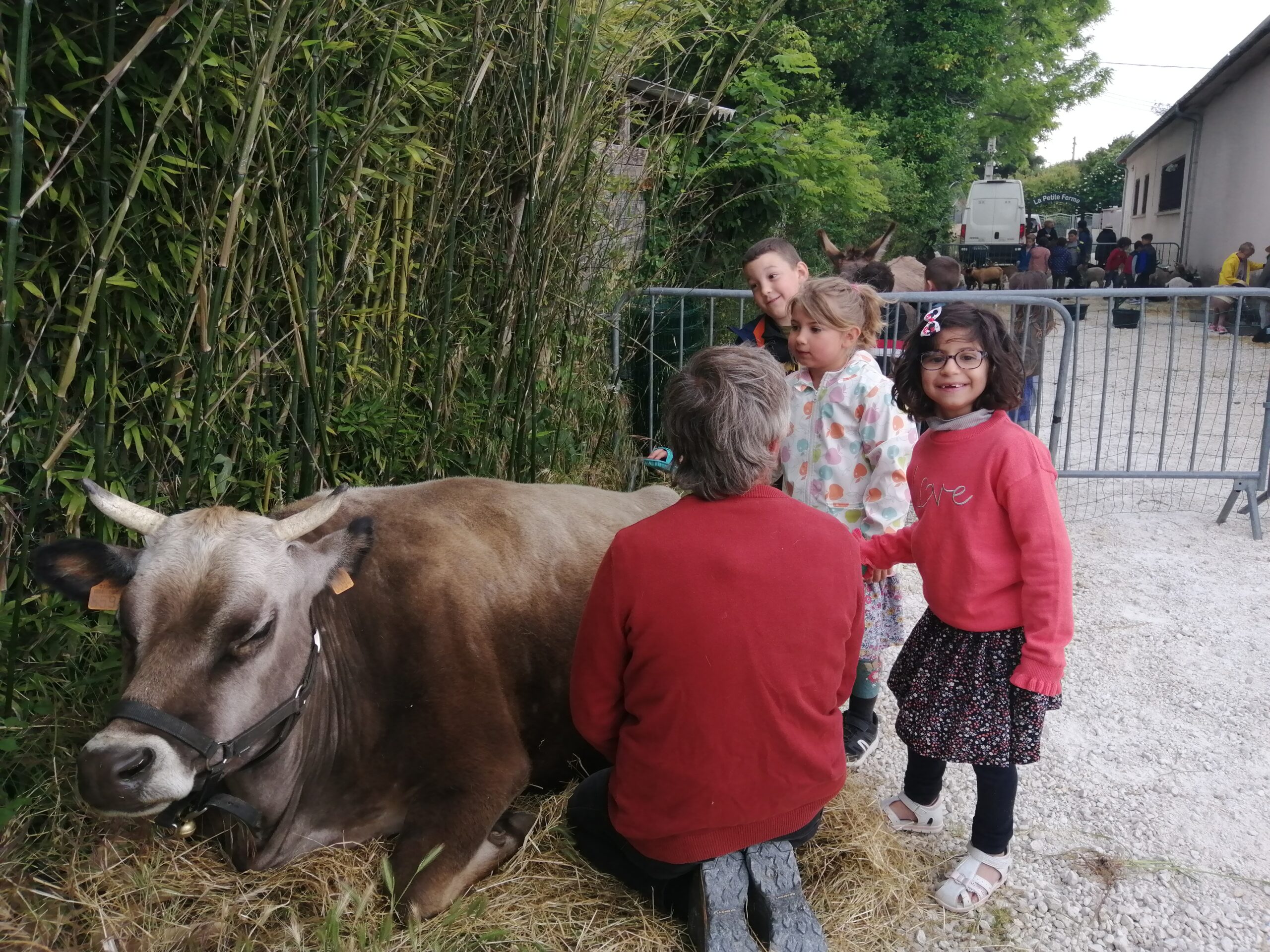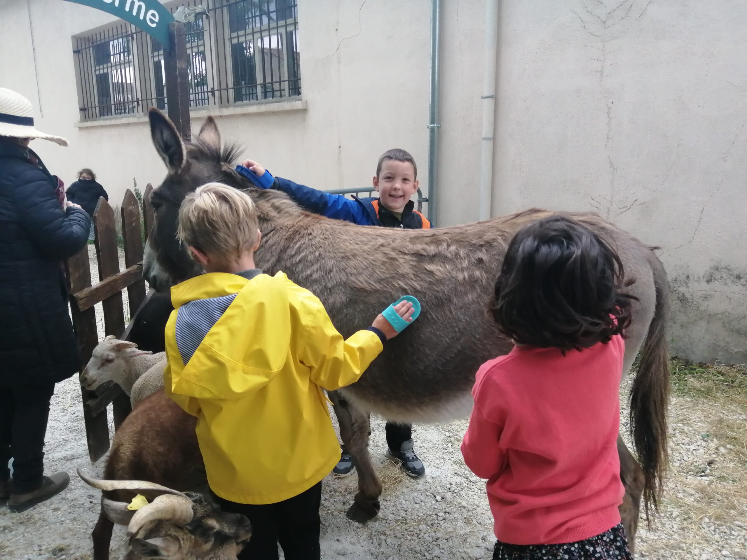 Nous avons pu caresser, brosser un âne, une vache, des chèvres, des lapereaux, des poussins ... C'est un moment privilégié ! ON ADORE !!!!!