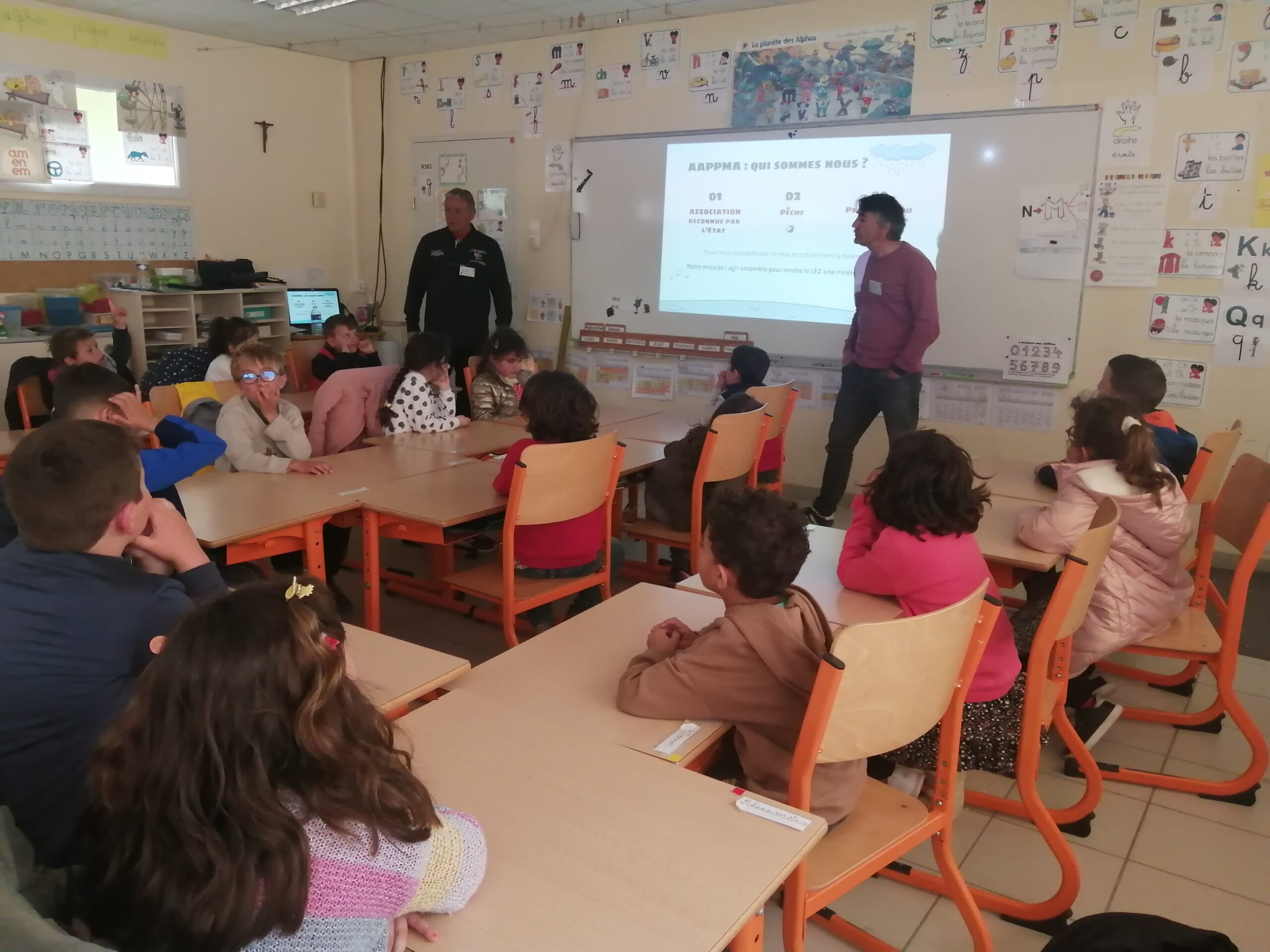 Deux bénévoles de la société de pêche nous ont expliqué l'impact de nos comportements au bord de l'eau sur la biodiversité de nos ruisseaux !
