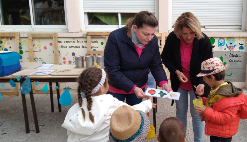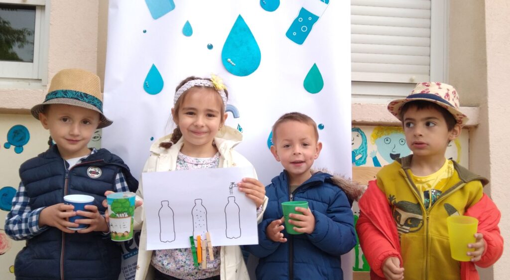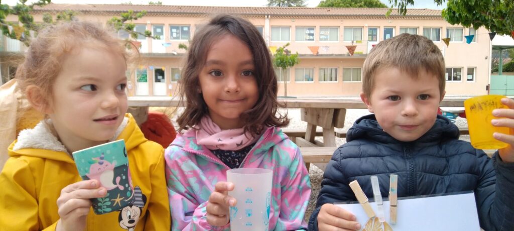 Mardi 16 mai c'était notre "traditionnelle" journée de la nature. Après la biodiversité en mai 2021, la gestion des déchets en mai 2022, l'équipe pédagogique avait choisi, pour cette année 2023, le thème de l'eau et notre classe de MS a commencé la journée au "bar à eaux".