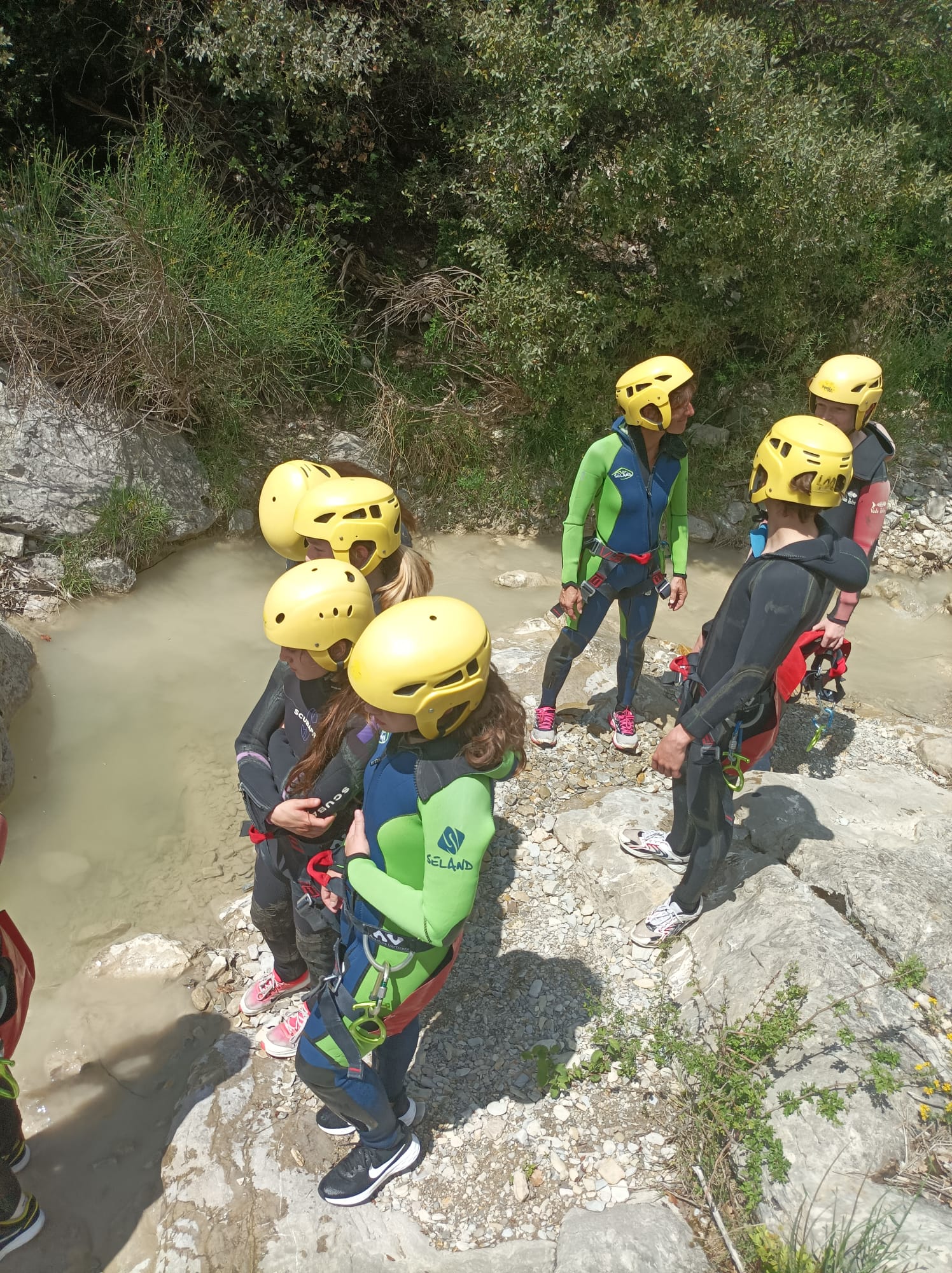 Ce mois de mai est décidément placé sous le signe de l'EAU ! Nous sommes allés ce mercredi 24 mai, à 4 véhicules, et 26 élèves du côté de Reilhanette, où nous avons retrouvé 3 guides pour une descente des gorges en canyoning (équipés de combinaison, de baudrier et de cordes). Plusieurs rappels et plusieurs sauts au programme. Il ne manquait pas d'eau , étonnamment (!) et les élèves ont adoré cette balade aquatique un peu engagée ! Le bruit, le froid de l'eau, mais aussi les sensations fortes des sauts.. pas mal d'émotions au programme ! Une chance pour nous tous d'avoir pu faire cette sortie ! Mme Chuffart