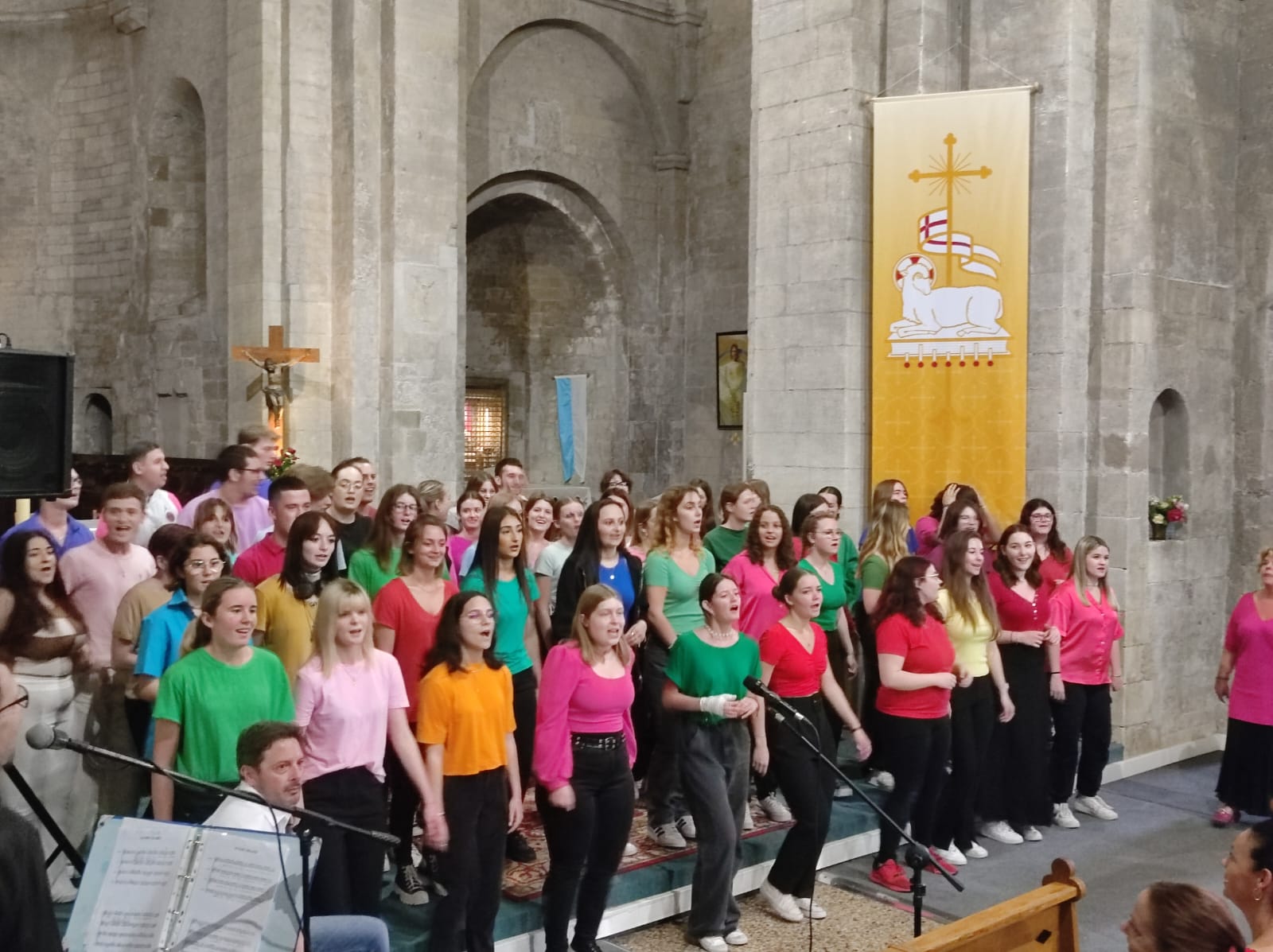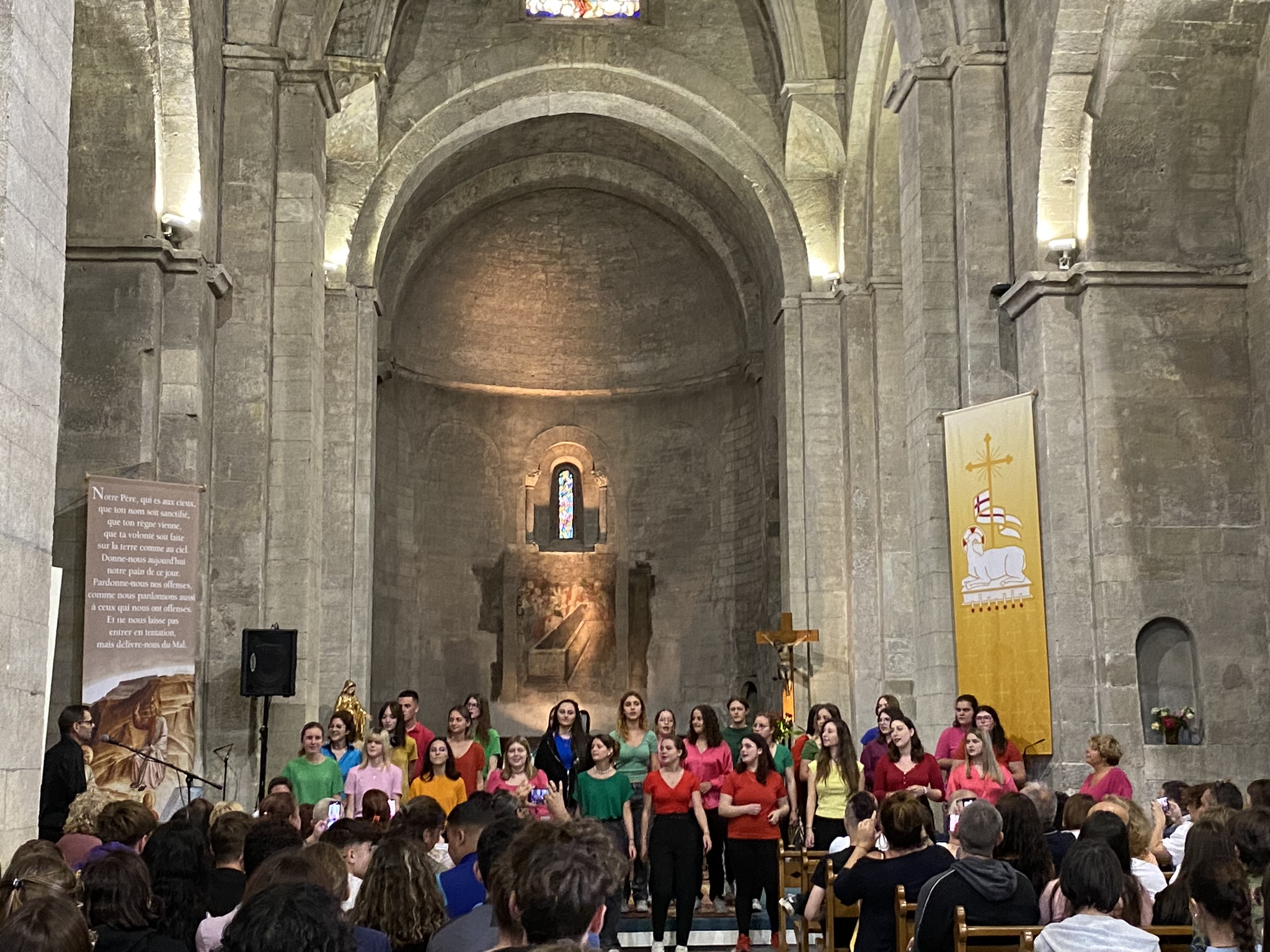Les 28 élèves de première SAPAT du lycée professionnel Saint-Jean le Baptiste ont offert une représentation de Gospel, après 4 répétitions, ce jeudi 1er juin 2023, en L’Eglise de Valréas, et sous la direction de Monsieur Jean Paul Fages chef de choeur professionnel, accompagné à la percussion de M Urbaniak.