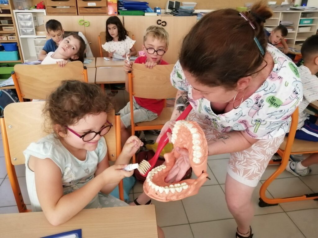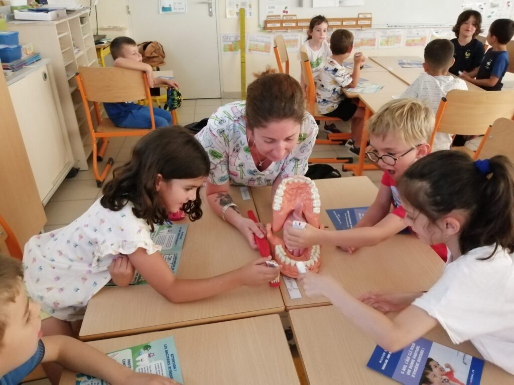 Lundi 26 juin, une maman de notre classe, assistante dentaire, est venue dans la classe de CP pour nous parler de nos dents.