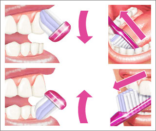 Elle avait apporté un grand modèle avec deux mâchoires et une très grande brosse à dent pour nous montrer comment faire pour bien se brosser les dents. Il faut aller du rose vers le blanc !