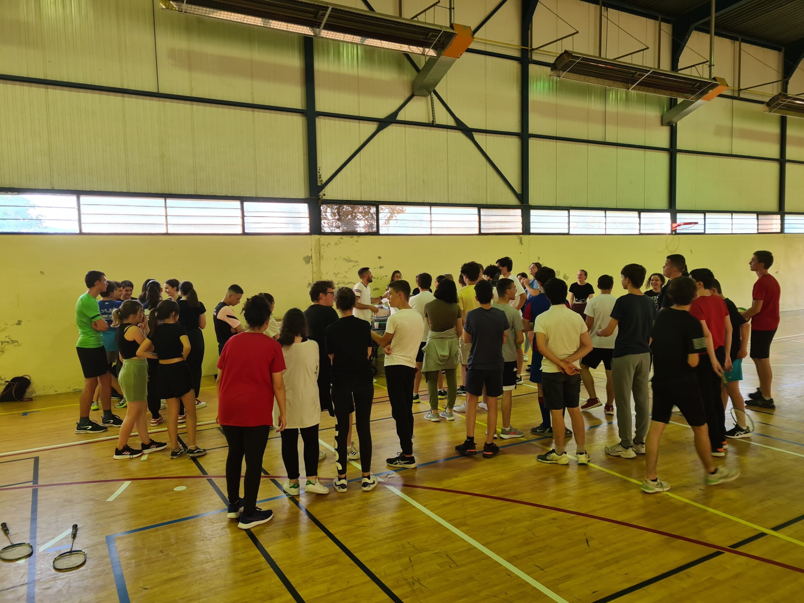 Les élèves de 3èmes avaient leurs oraux DNB le lendemain matin , ils nous ont quitté tôt. Mais les lycéens ont tenu bon, certains jusqu'à 23h! M. Gojon, Mme Bodiguel, Mme Carmon Alice, M. Dermeghsian, M. Pons, M. Bassemon, M. Perrot, M. Pinard, Mme Chuffart étaient présents et ont même pu affronter les élèves au Volley, au badminton ou au TT. C'était une belle soirée... vivement la prochaine, à l'automne 2023 !