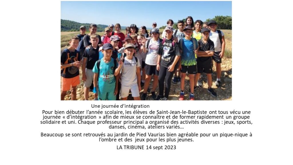Ce jeudi 7 septembre 2023, chaque classe du grand ensemble Saint-Jean le Baptiste était en journée banalisée "d'intégration" afin de mieux se connaitre et de former rapidement un groupe solidaire et uni.