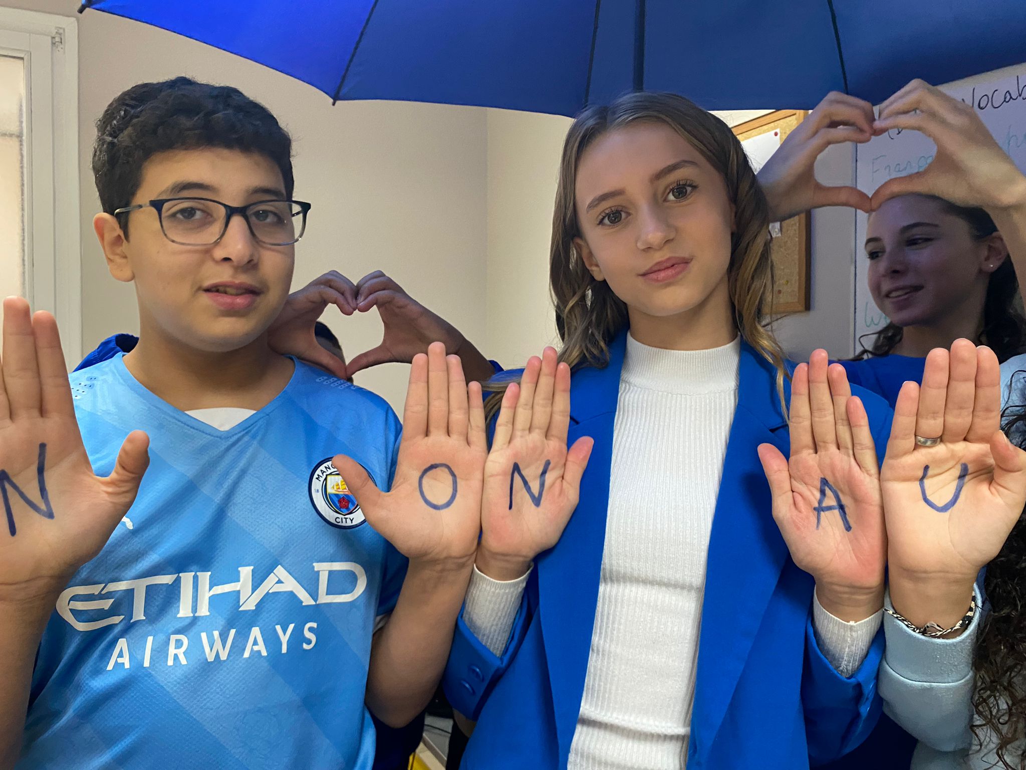 Tous les élèves et les personnels ont été invités à s’habiller ce jour-là avec un haut bleu. Ce camaïeu de différents bleus a montré notre engagement commun pour cette cause, avec toutes nos différences.