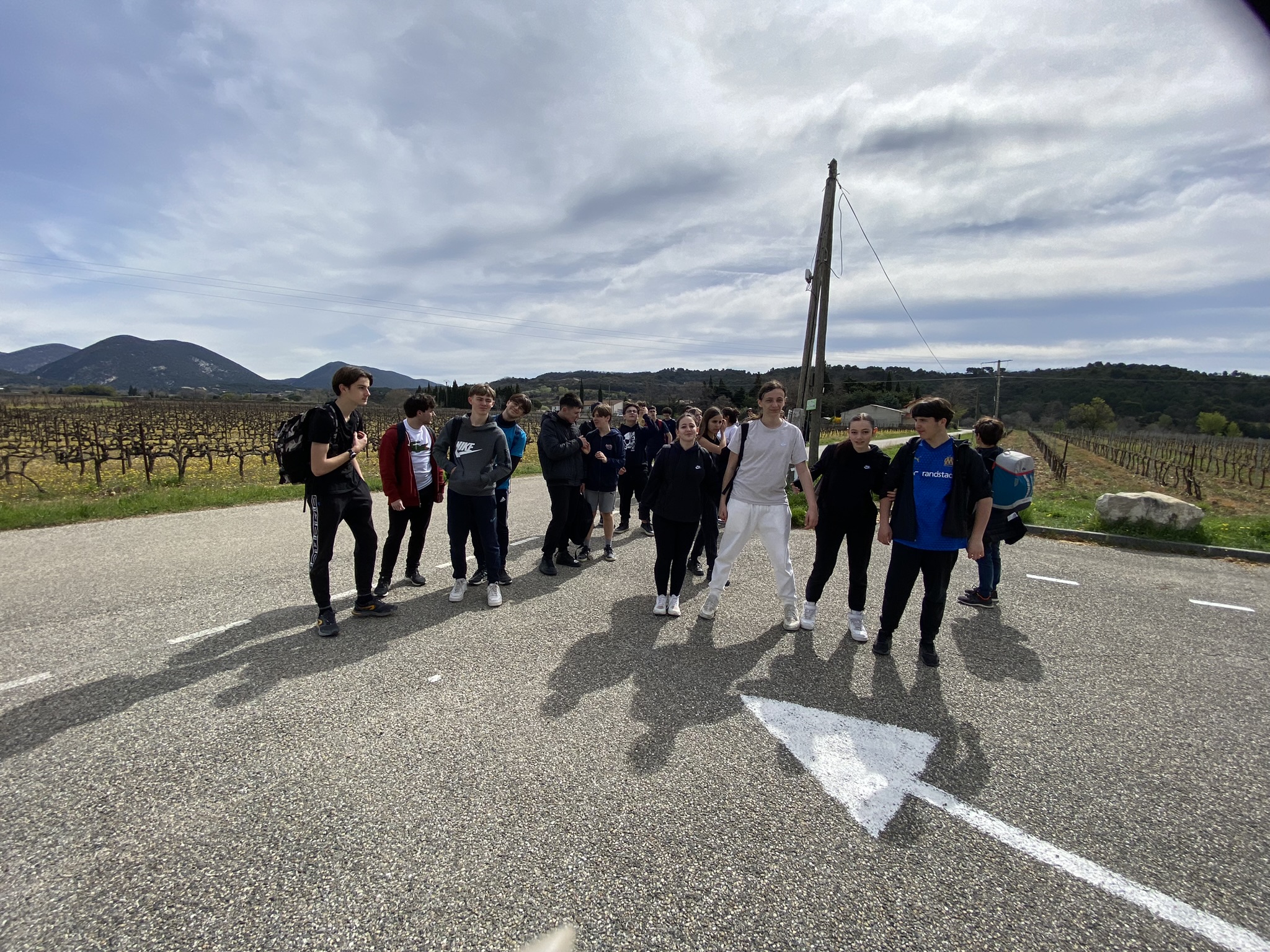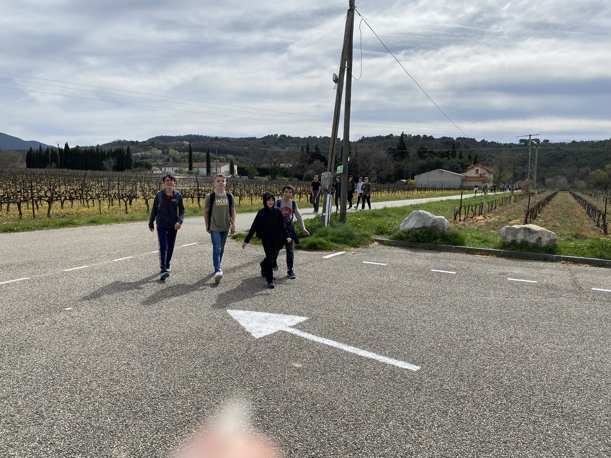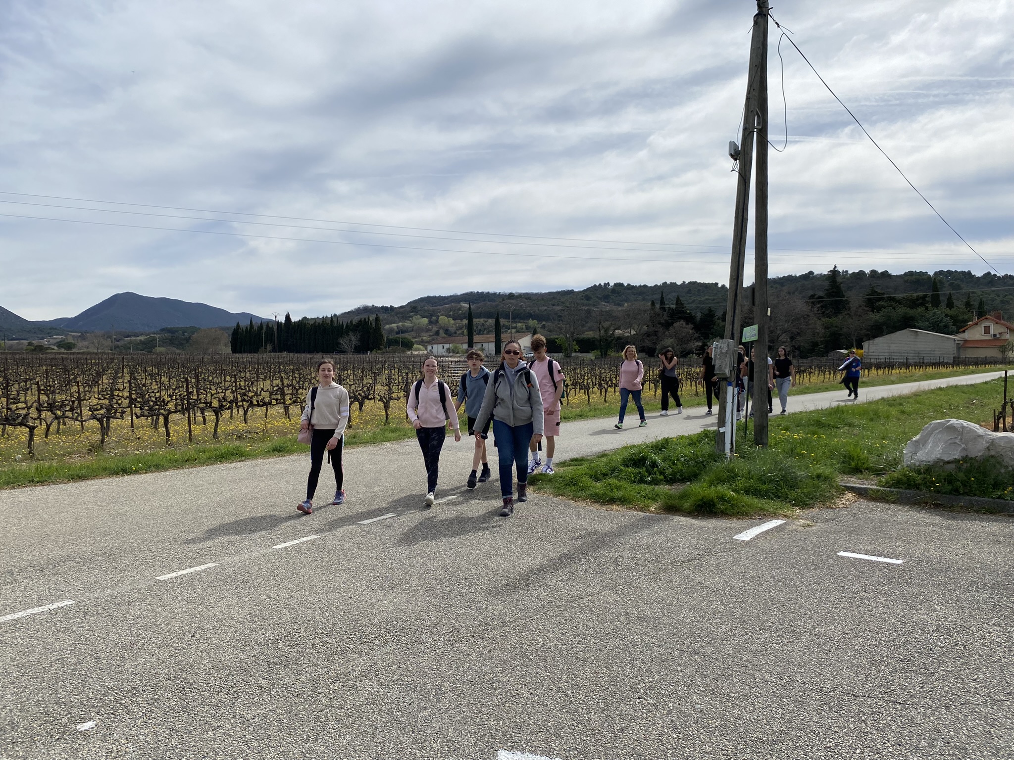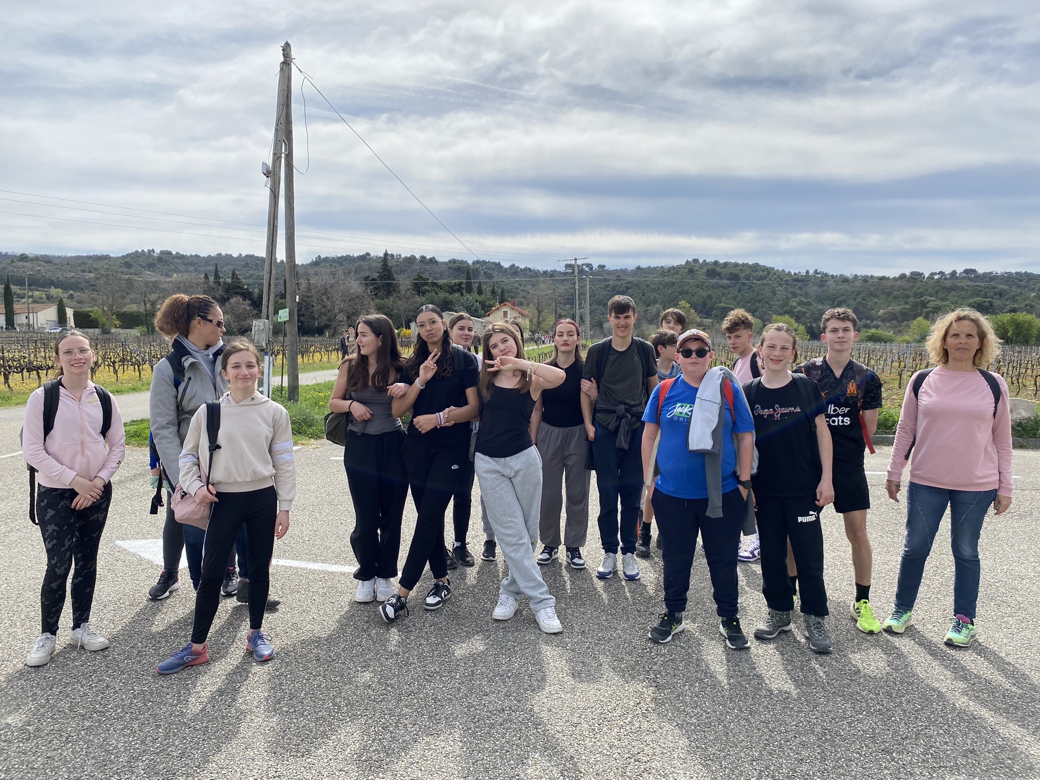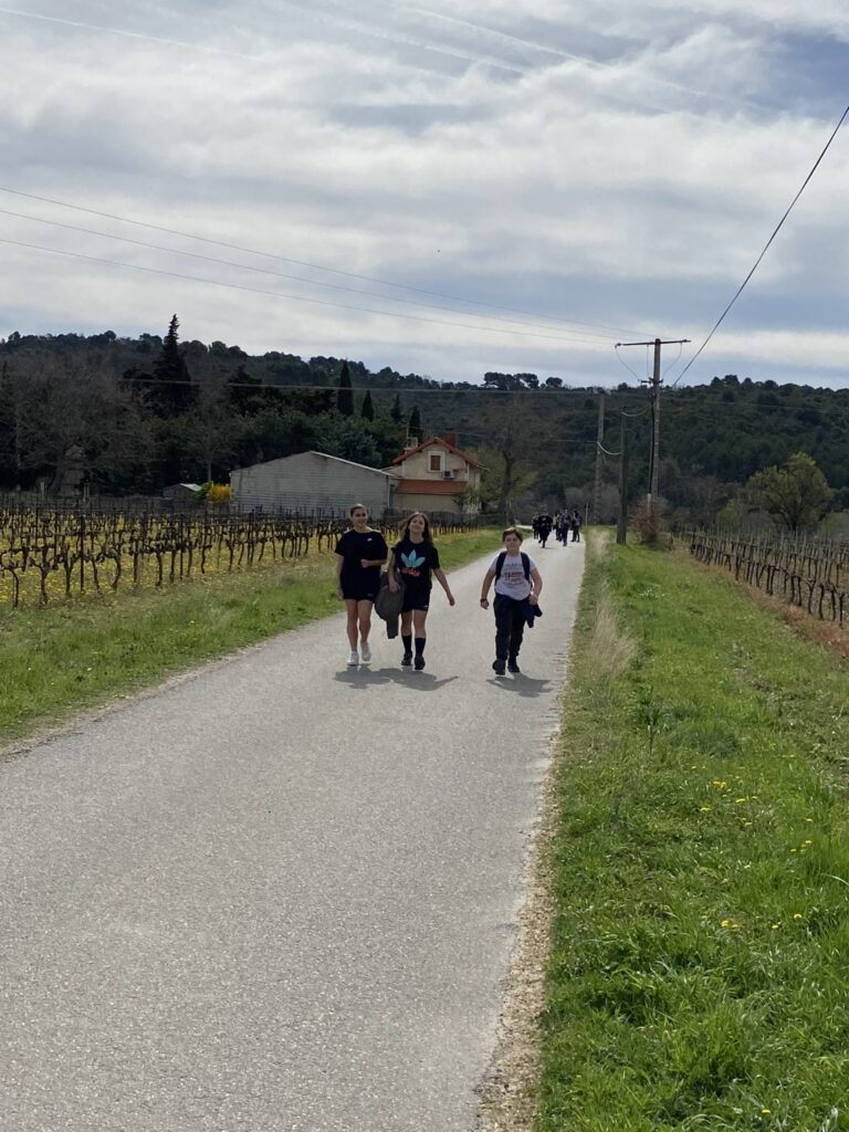 Tous les élèves et les adultes du CM2 aux terminales se sont mis en route vers le château Urdy à St Pantaléon-les-Vignes. 10km ou 15 km de marche et même un groupe de 18 "runners" de la 5ème à la 1ère qui ont couru avec Mme Chuffart.