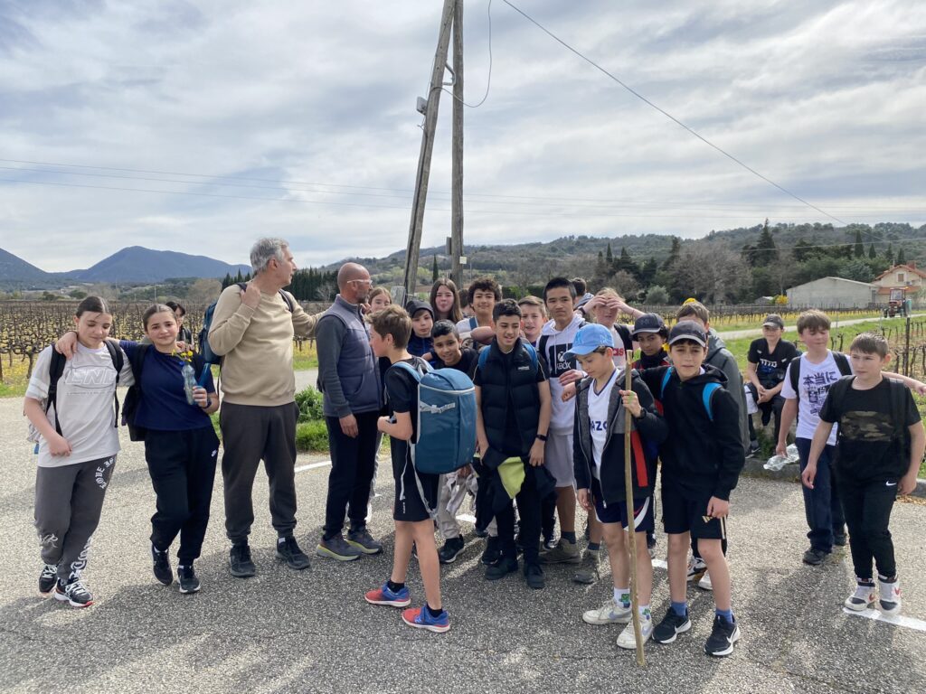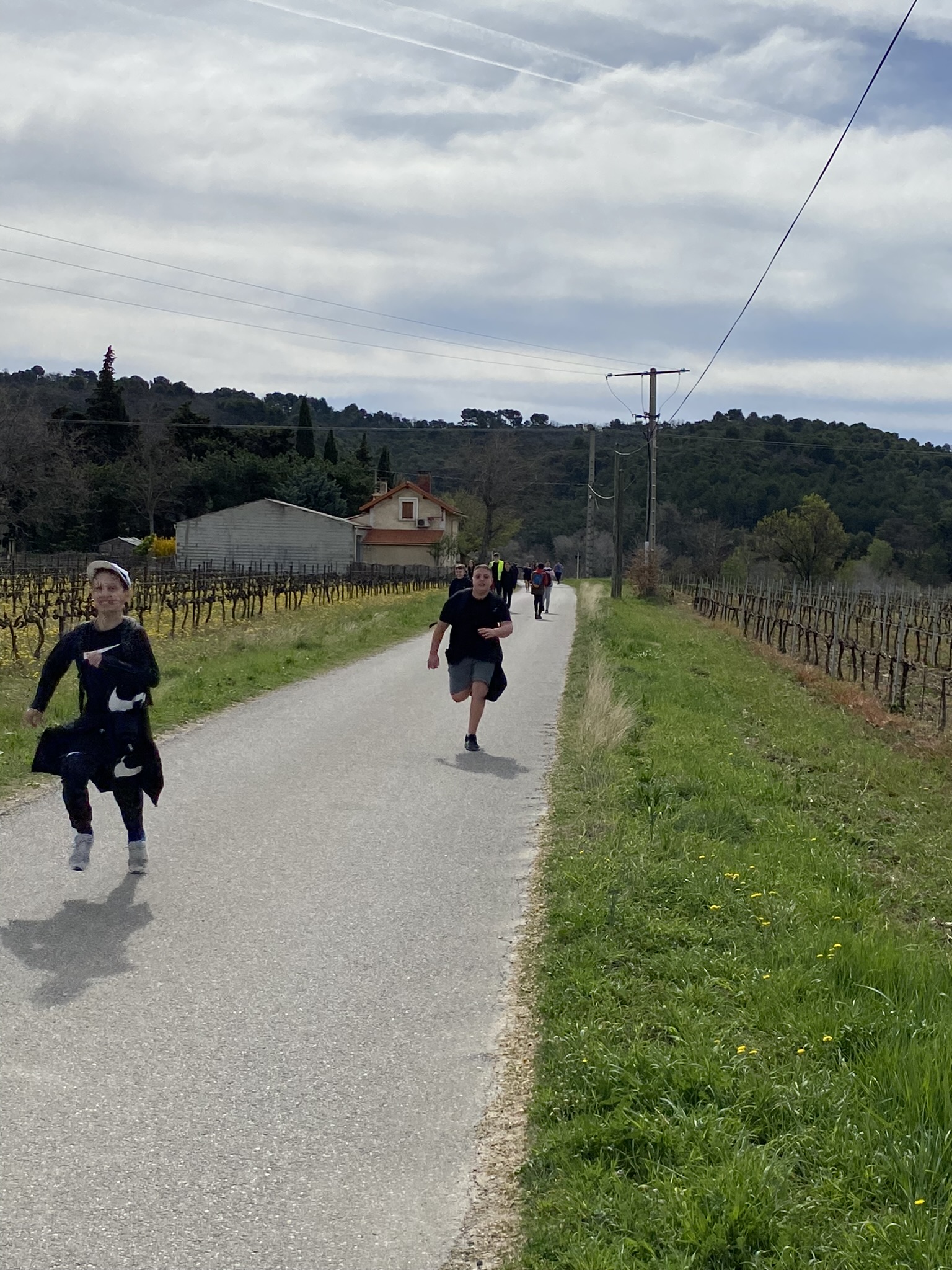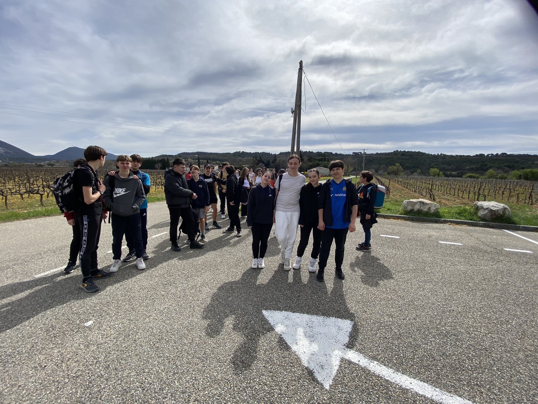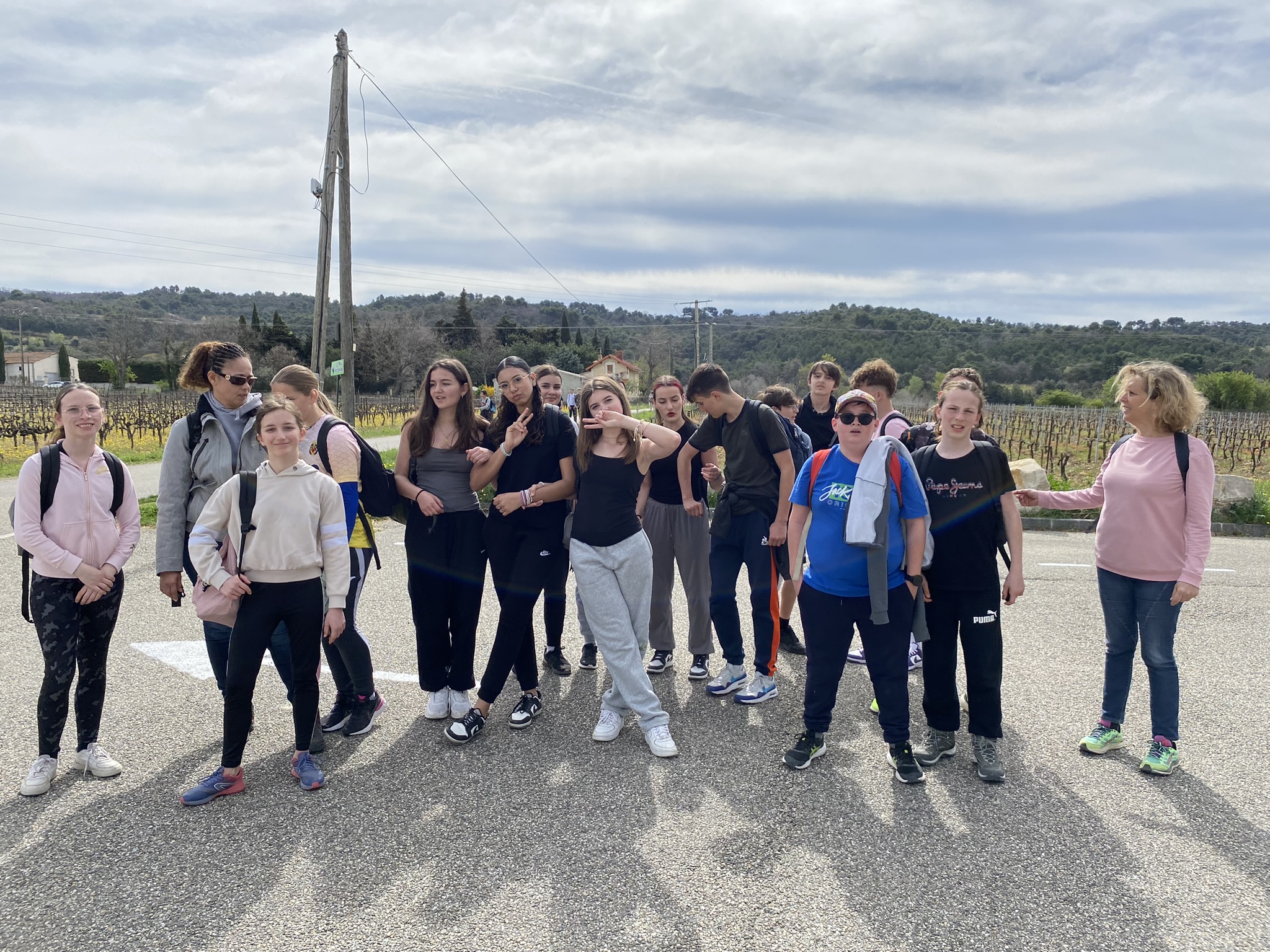 Tous les élèves et les adultes du CM2 aux terminales se sont mis en route vers le château Urdy à St Pantaléon-les-Vignes. 10km ou 15 km de marche et même un groupe de 18 "runners" de la 5ème à la 1ère qui ont couru avec Mme Chuffart.