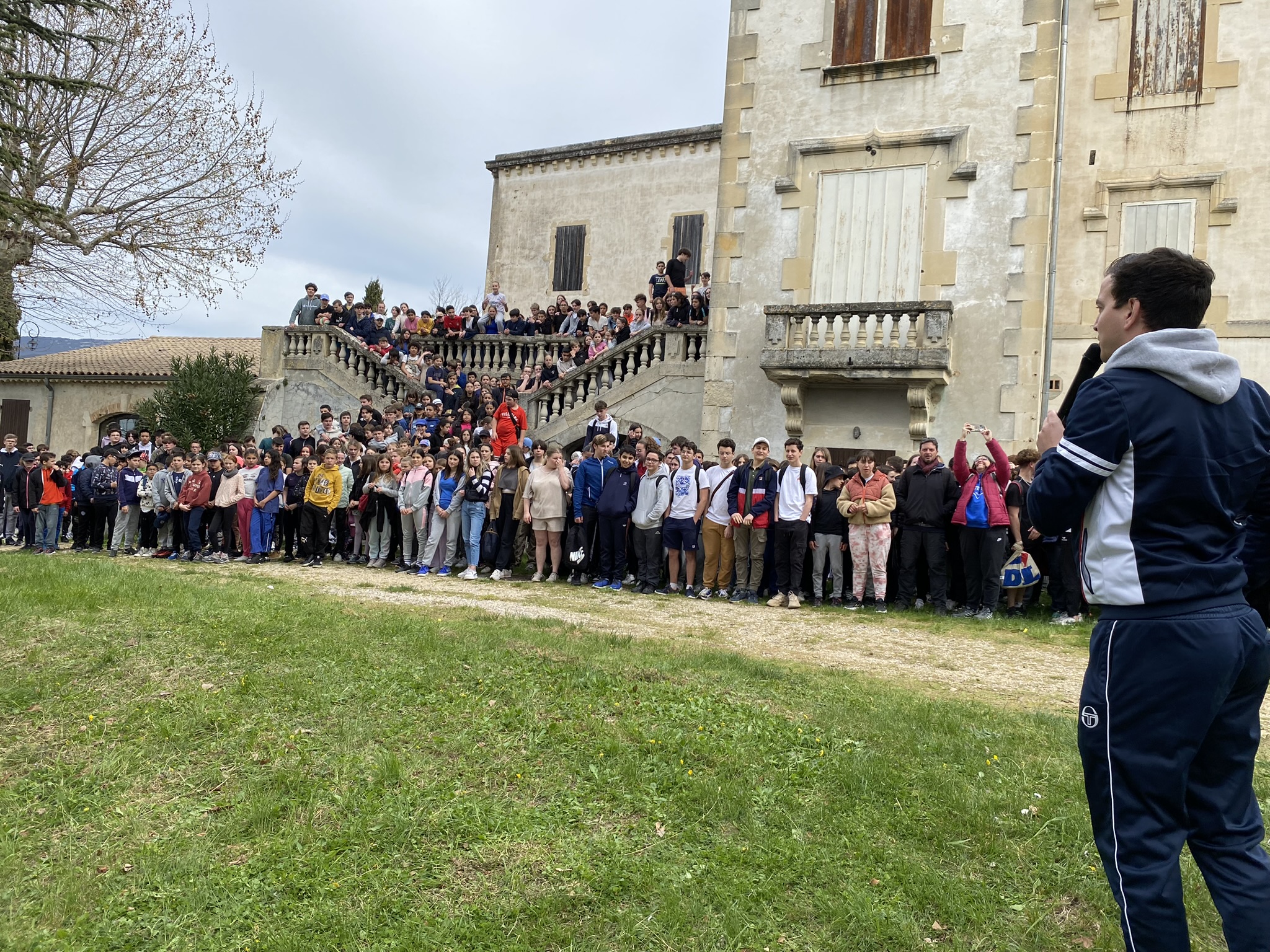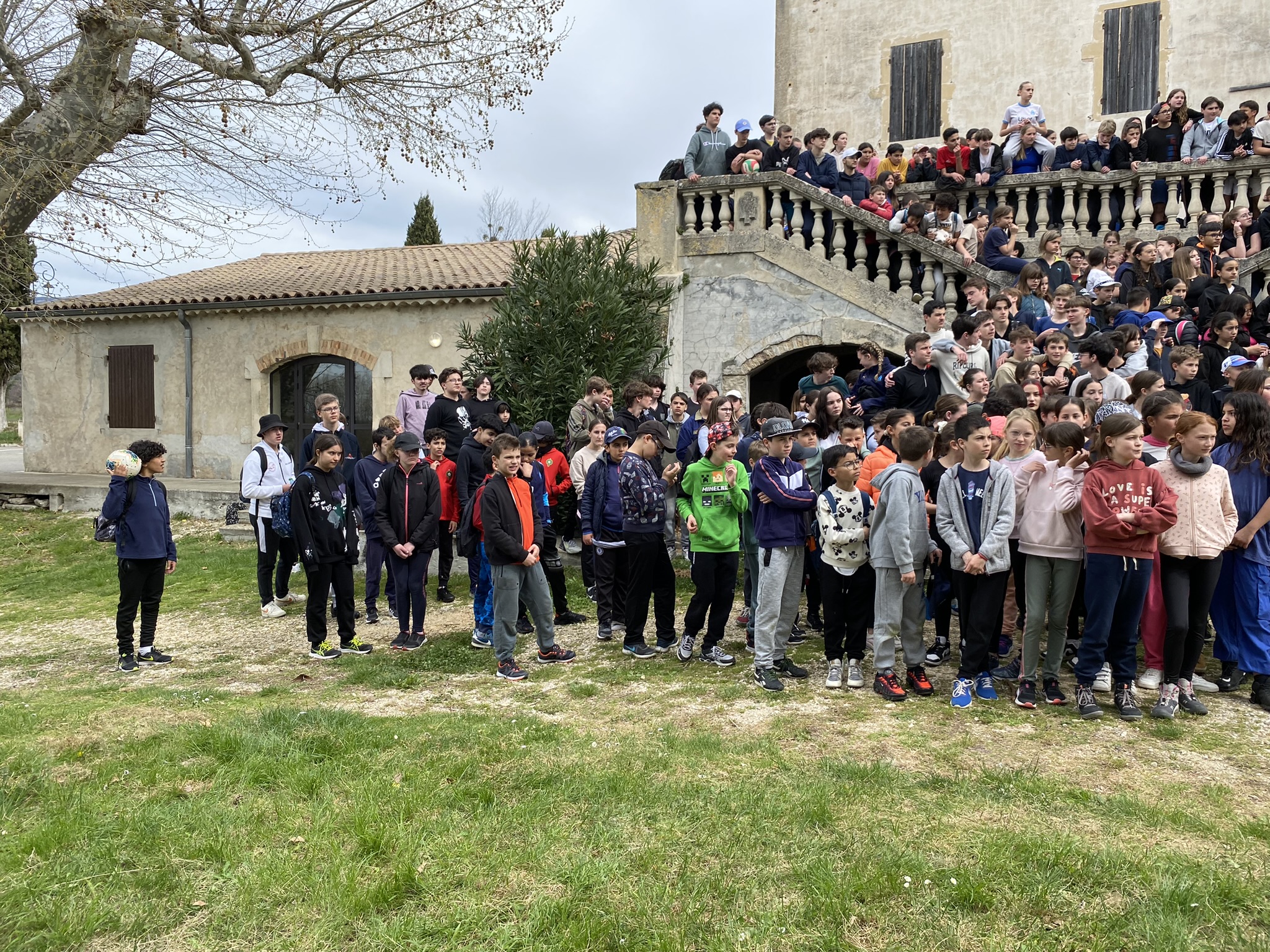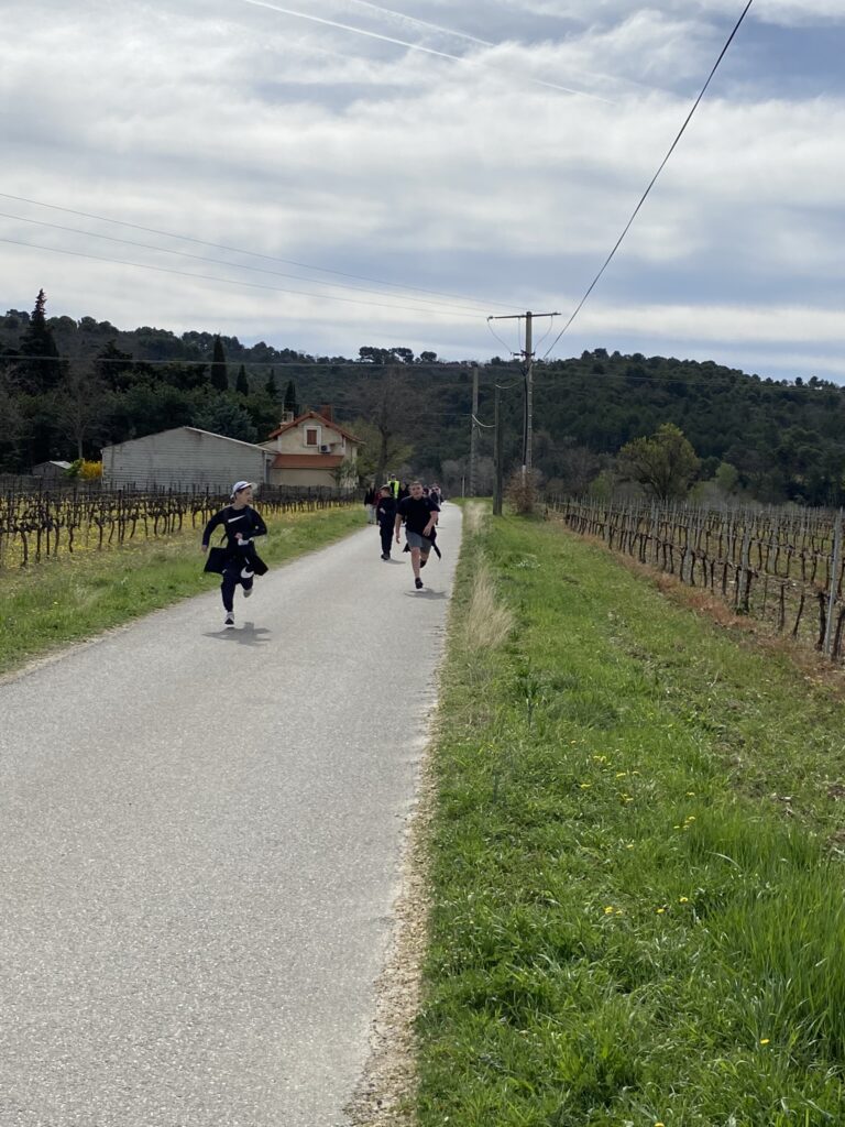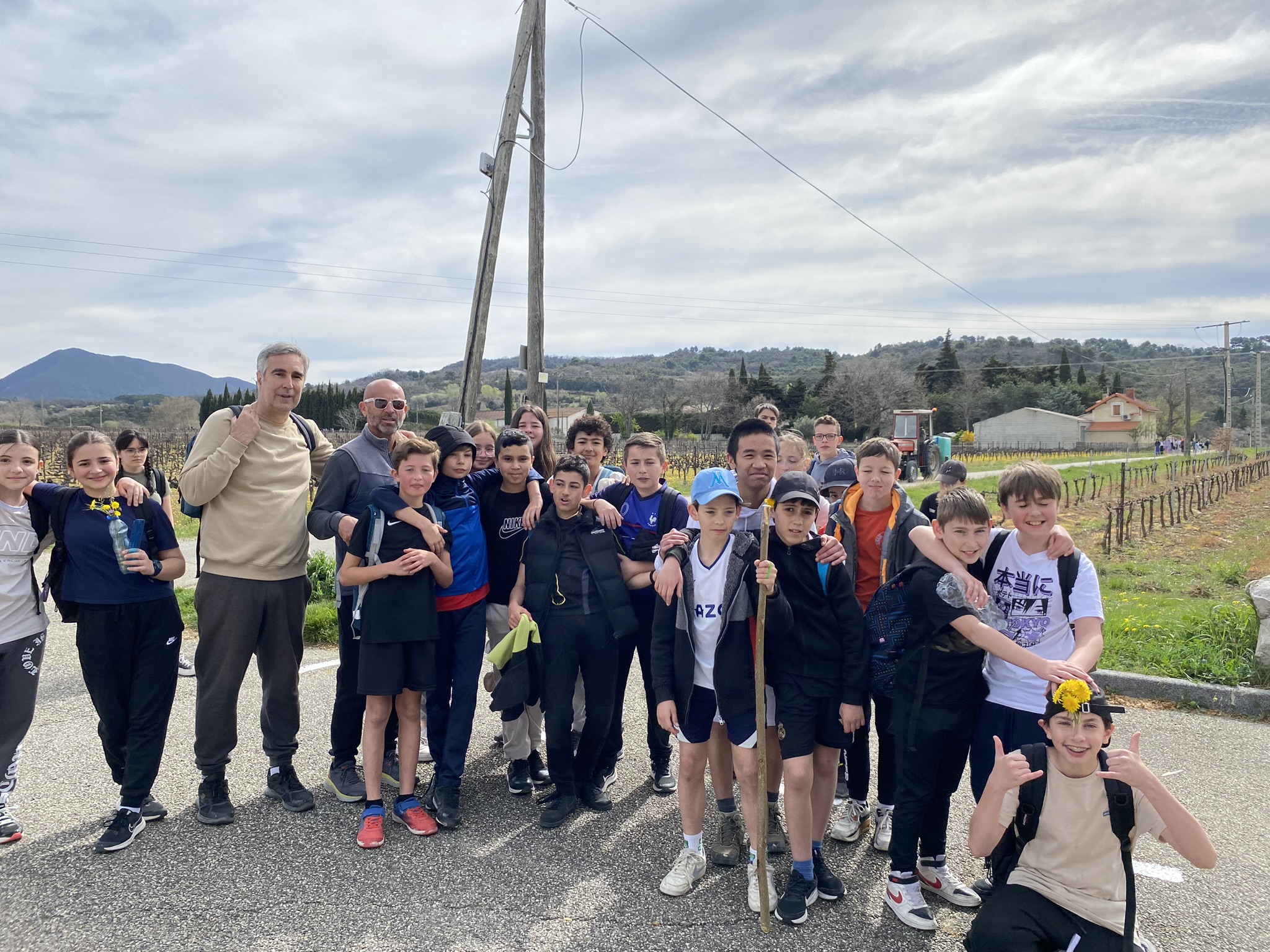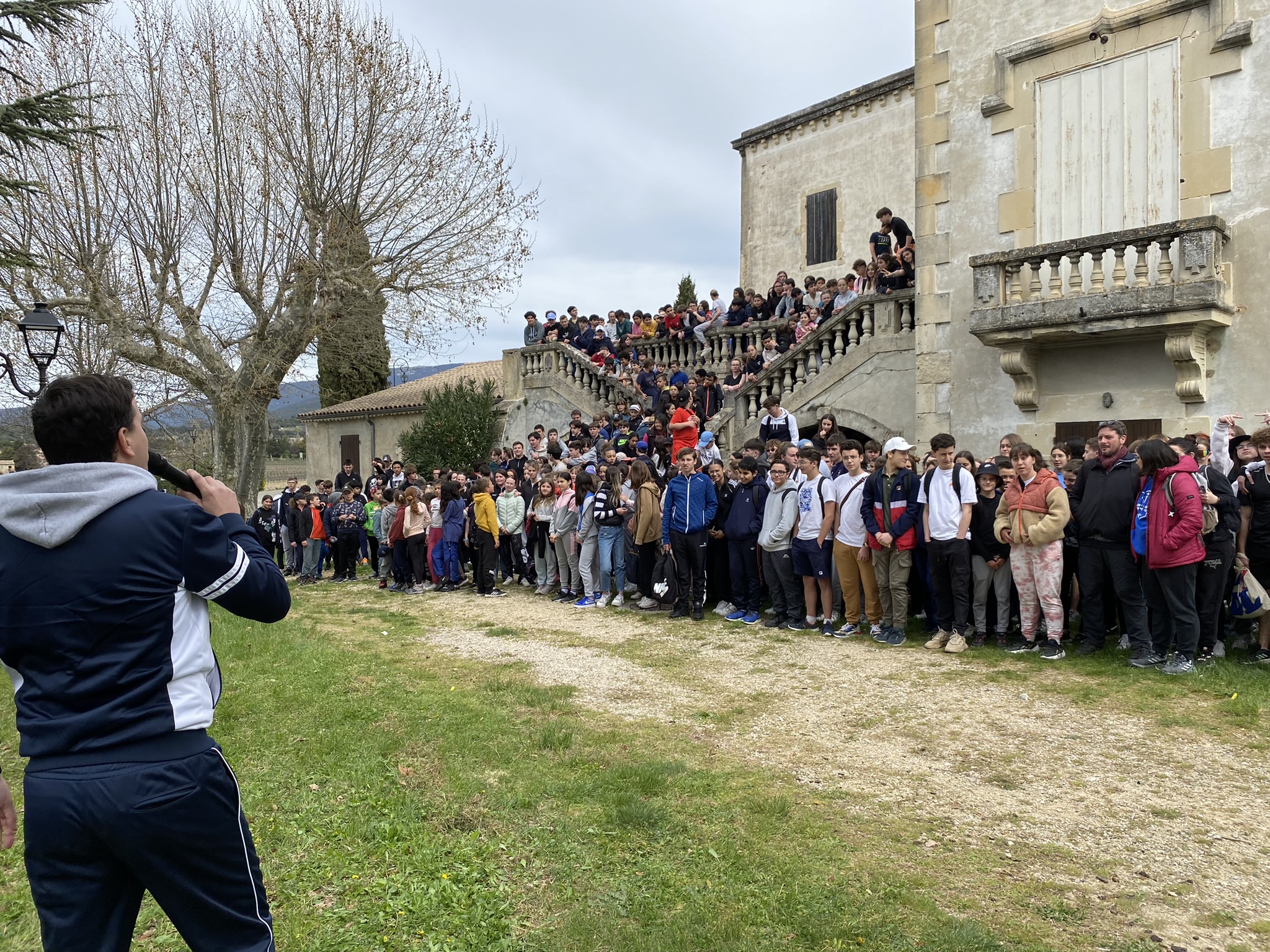 Tous les élèves et les adultes du CM2 aux terminales se sont mis en route vers le château Urdy à St Pantaléon-les-Vignes. 10km ou 15 km de marche et même un groupe de 18 "runners" de la 5ème à la 1ère qui ont couru avec Mme Chuffart.
