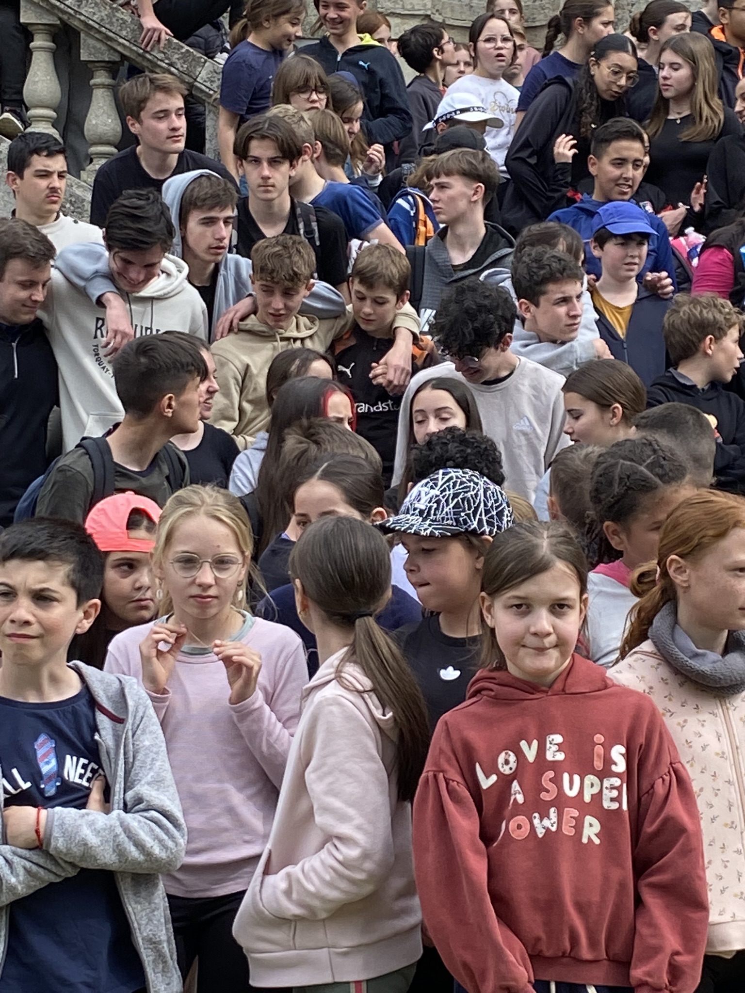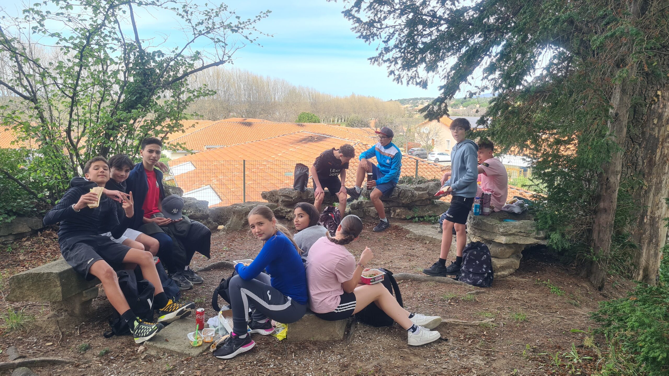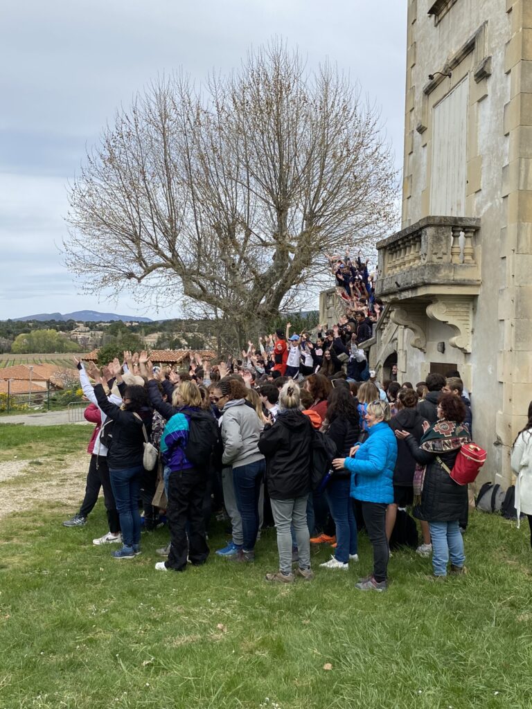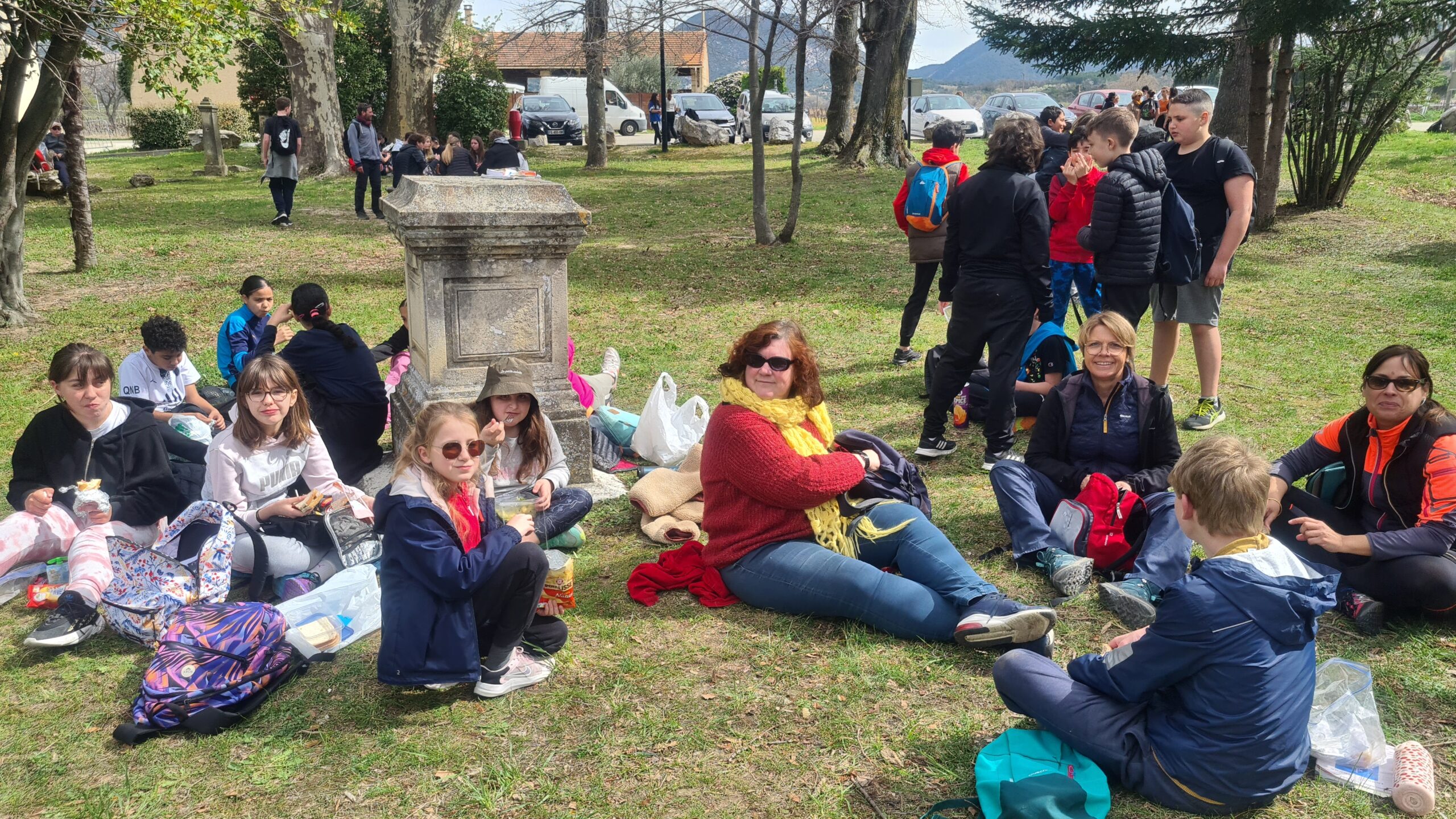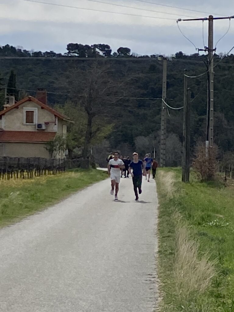 Tous les élèves et les adultes du CM2 aux terminales se sont mis en route vers le château Urdy à St Pantaléon-les-Vignes. 10km ou 15 km de marche et même un groupe de 18 "runners" de la 5ème à la 1ère qui ont couru avec Mme Chuffart.