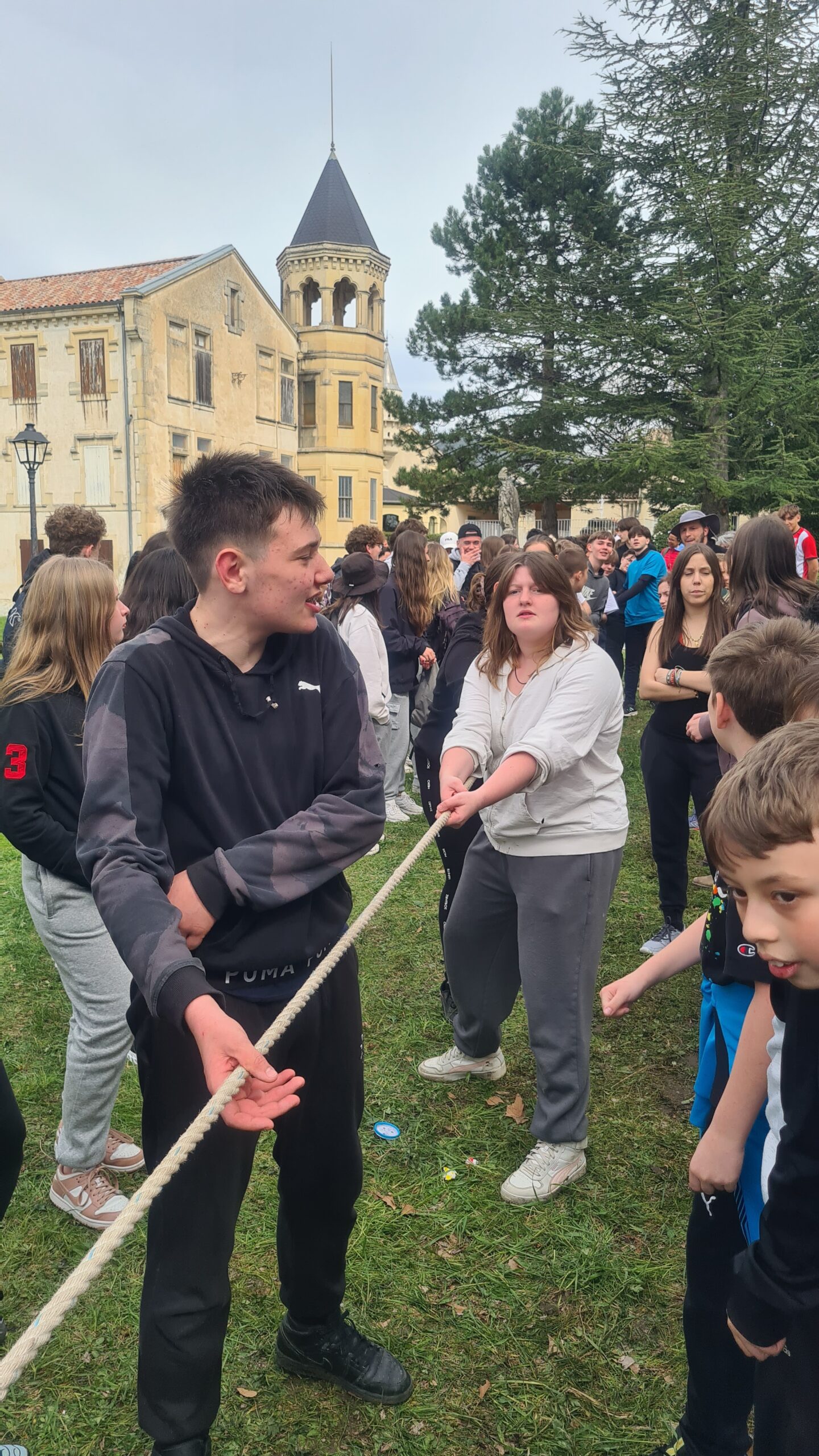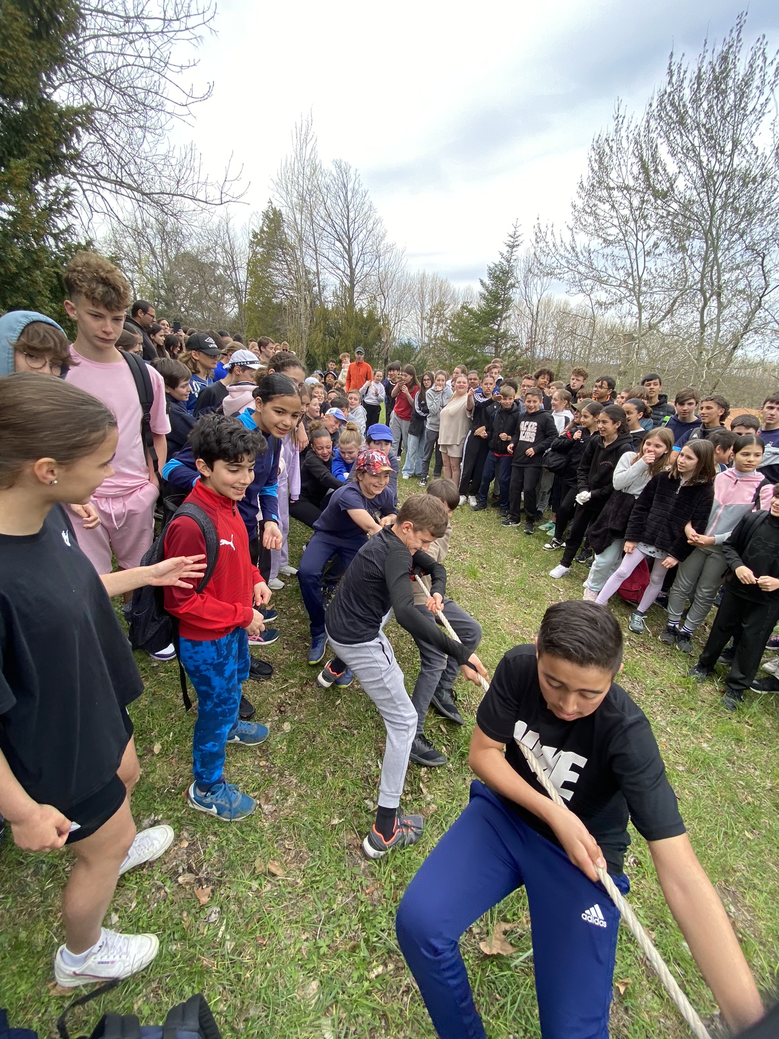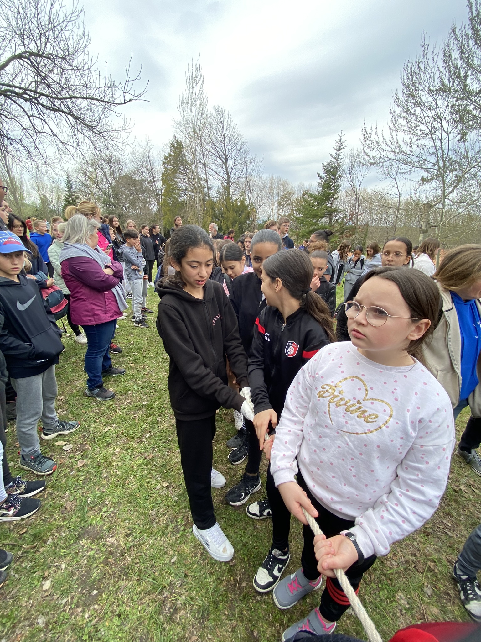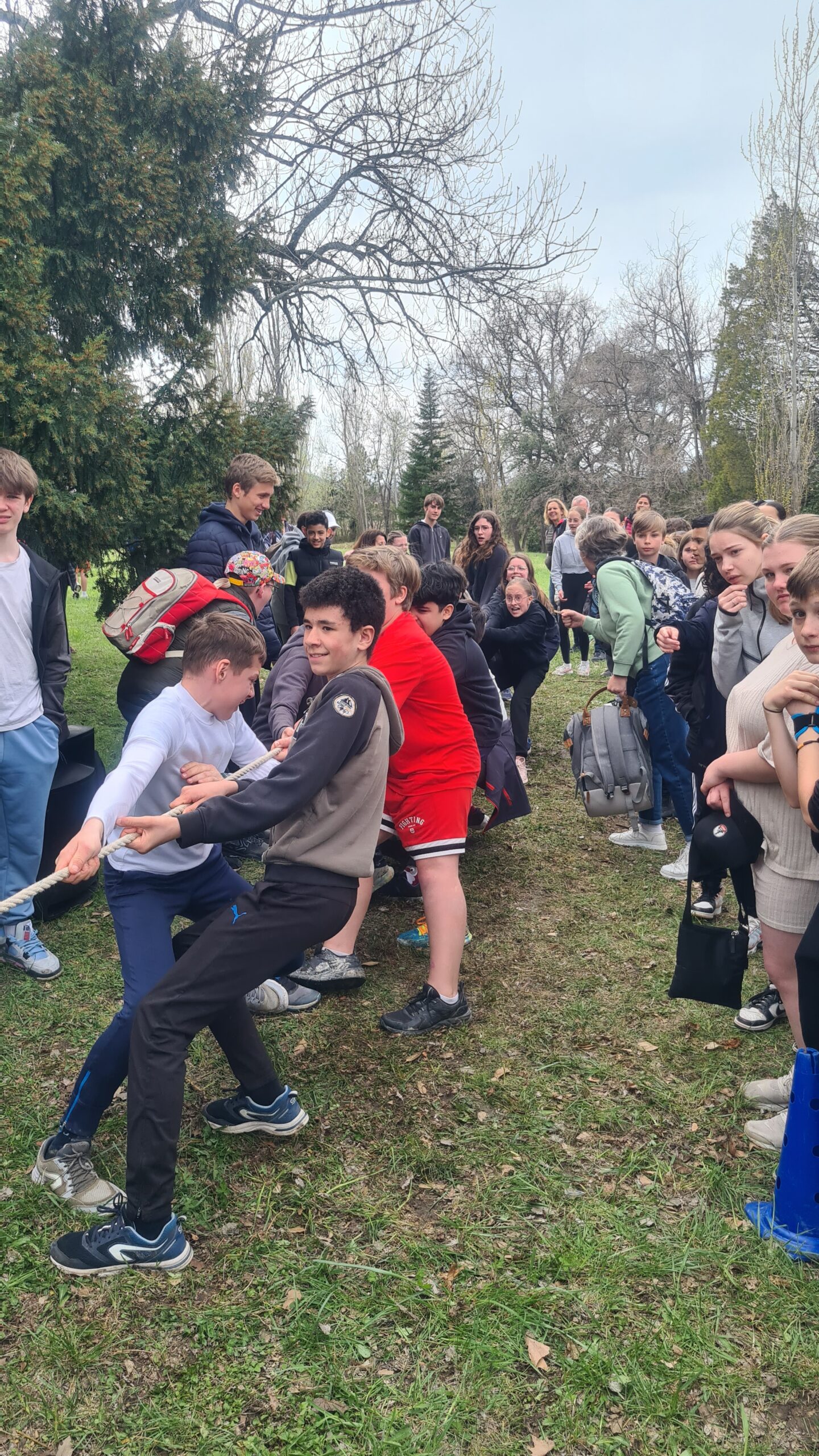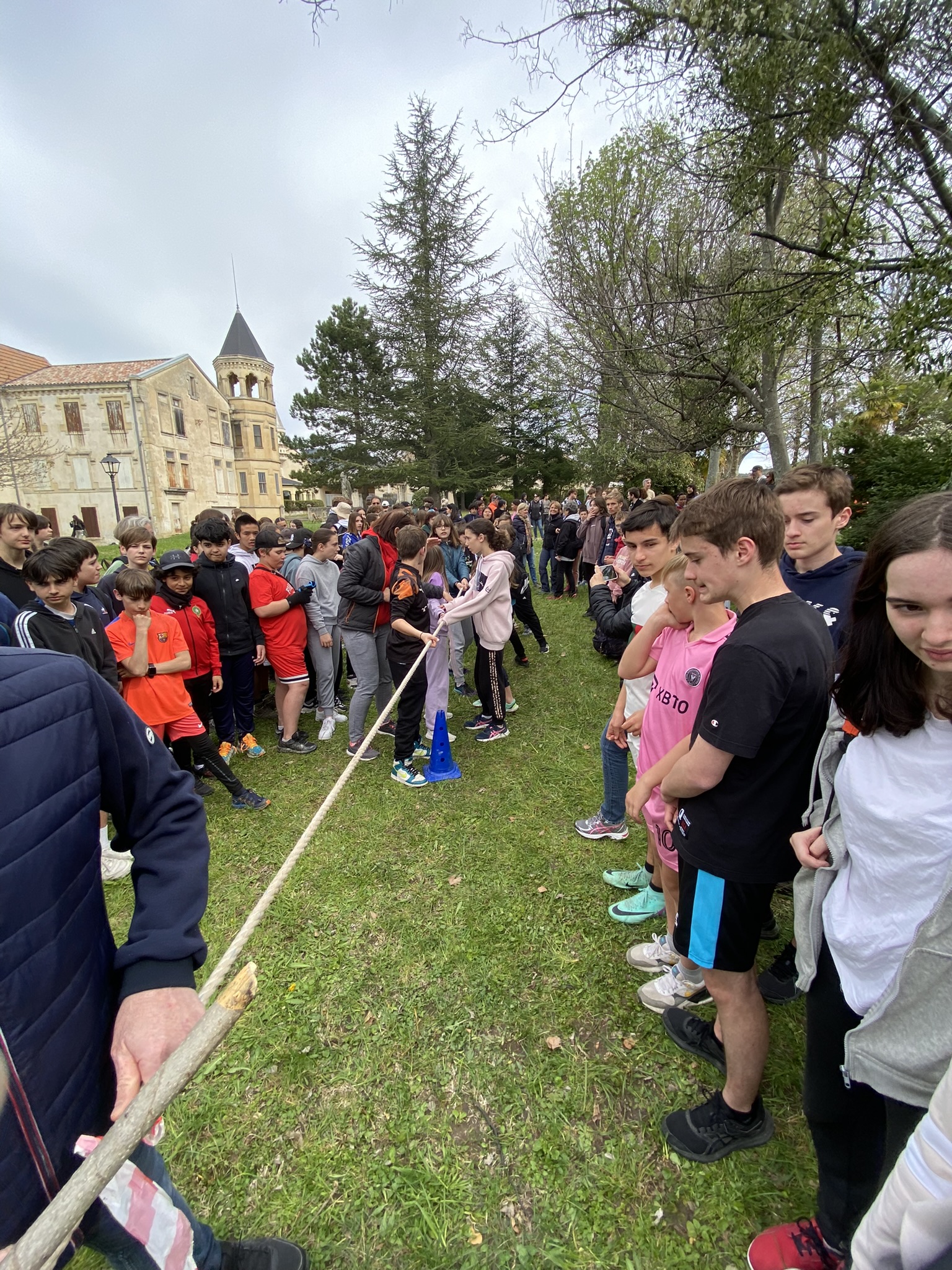 Malgré les nuages et un vent forcissant tout au long de la journée, le pique-nique dans les jardins fut un moment agréable suivi de la traditionnelle photo de l'ensemble scolaire (presque) au complet devant les marches du château. Le désormais attendu "tir à la corde" entre les classes (et contre les adultes) s'est déroulé sous la houlette de MM. Bassemon et Dermeghsian, encouragés par une foule en folie !