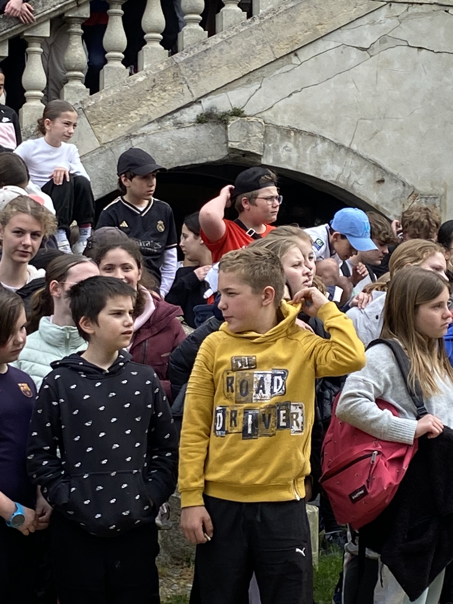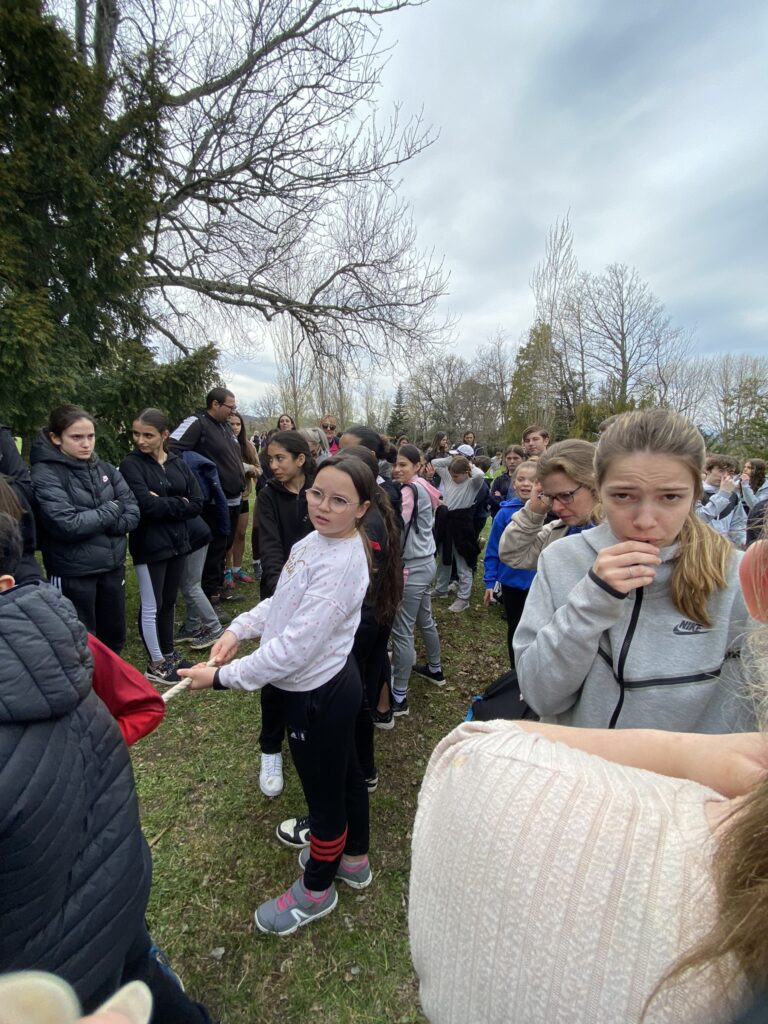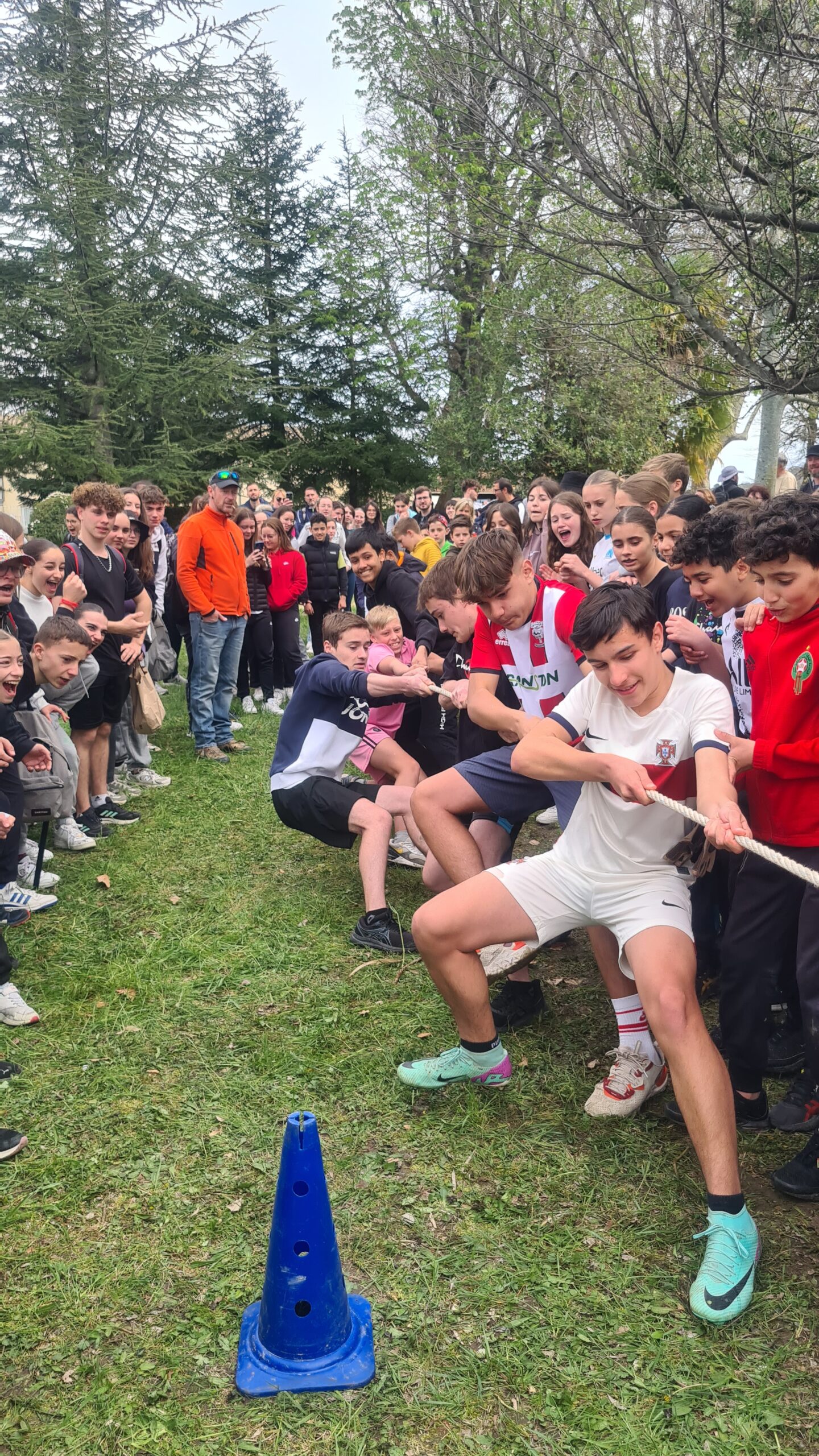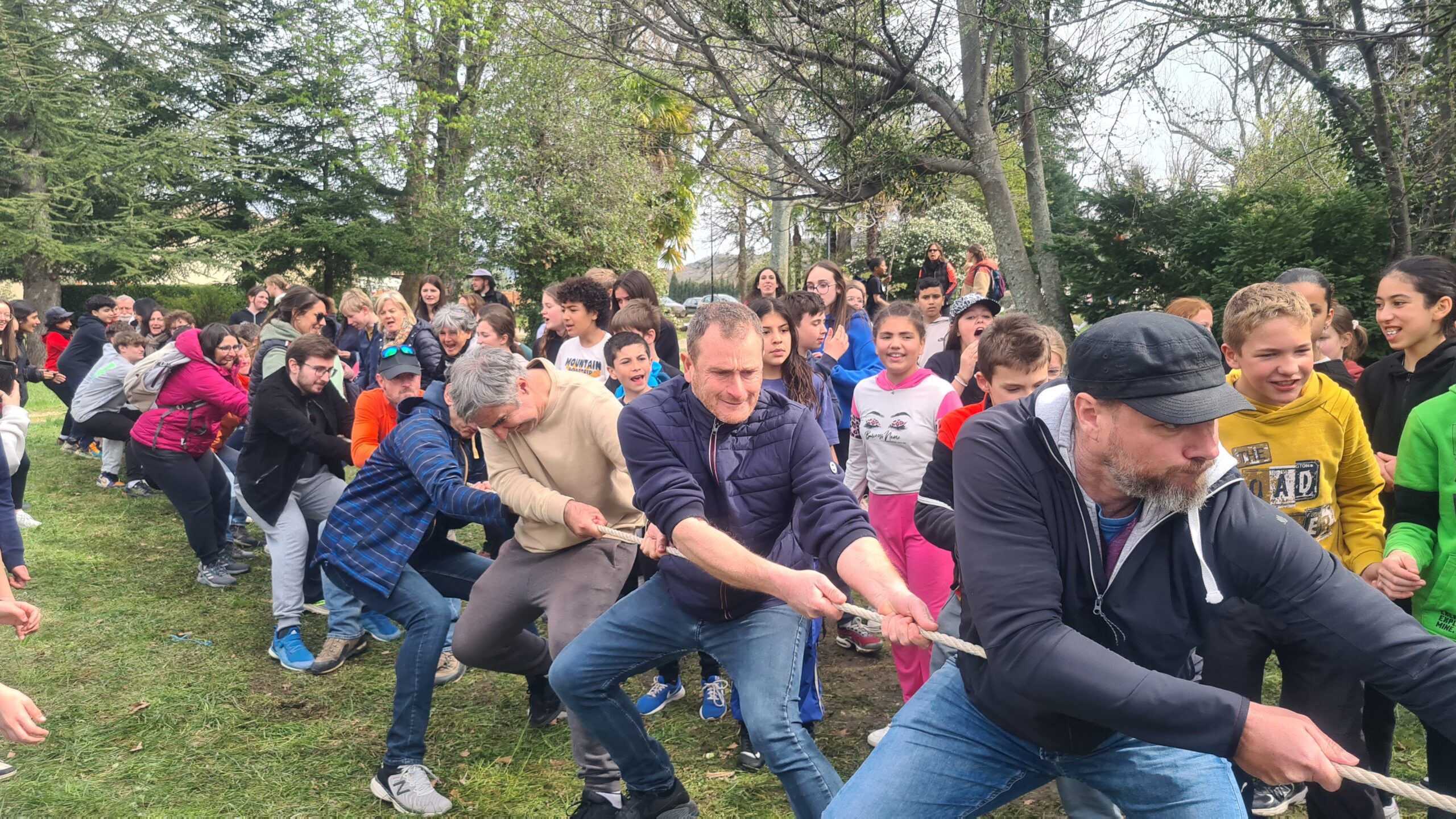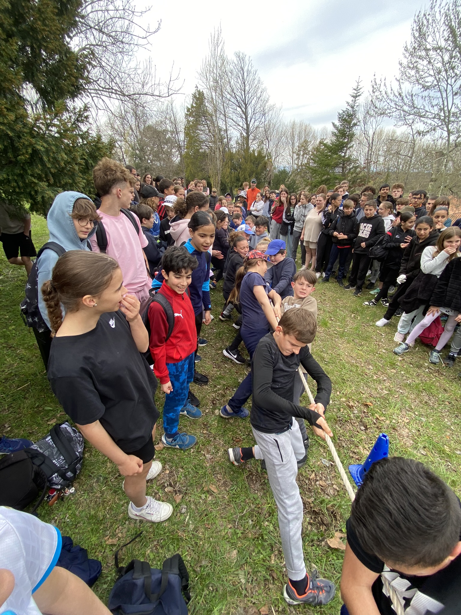 Malgré les nuages et un vent forcissant tout au long de la journée, le pique-nique dans les jardins fut un moment agréable suivi de la traditionnelle photo de l'ensemble scolaire (presque) au complet devant les marches du château. Le désormais attendu "tir à la corde" entre les classes (et contre les adultes) s'est déroulé sous la houlette de MM. Bassemon et Dermeghsian, encouragés par une foule en folie !