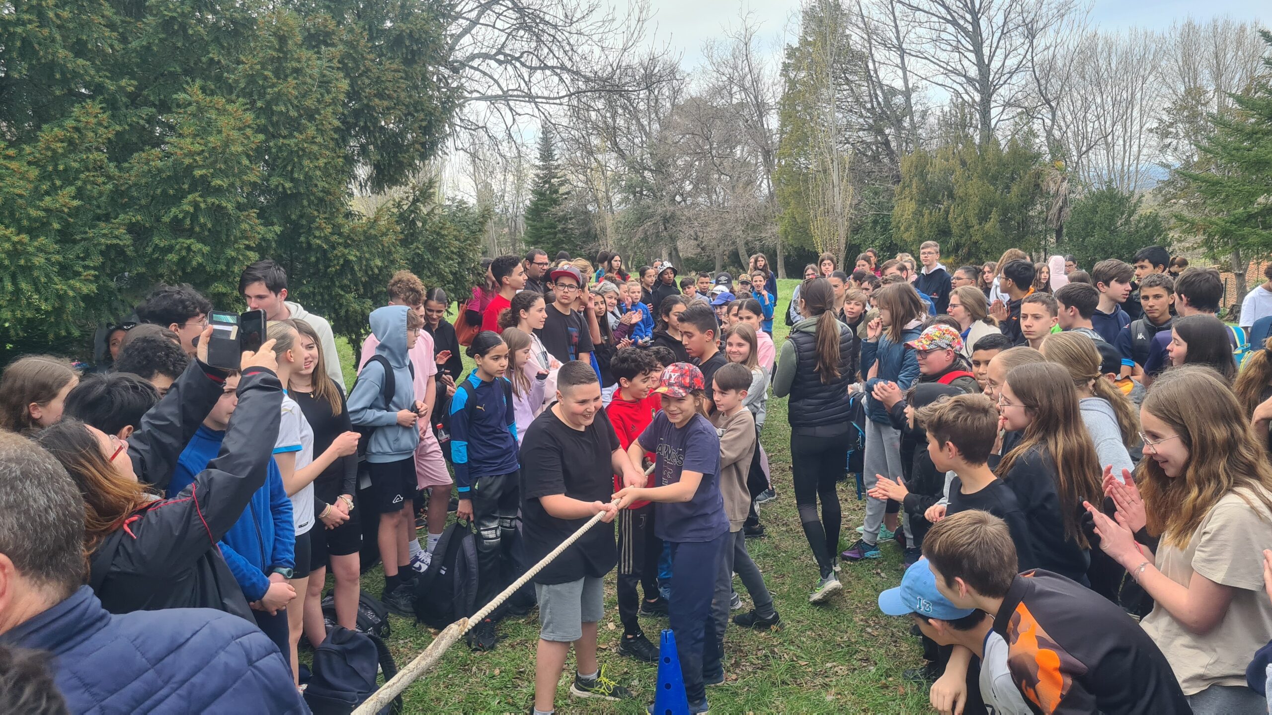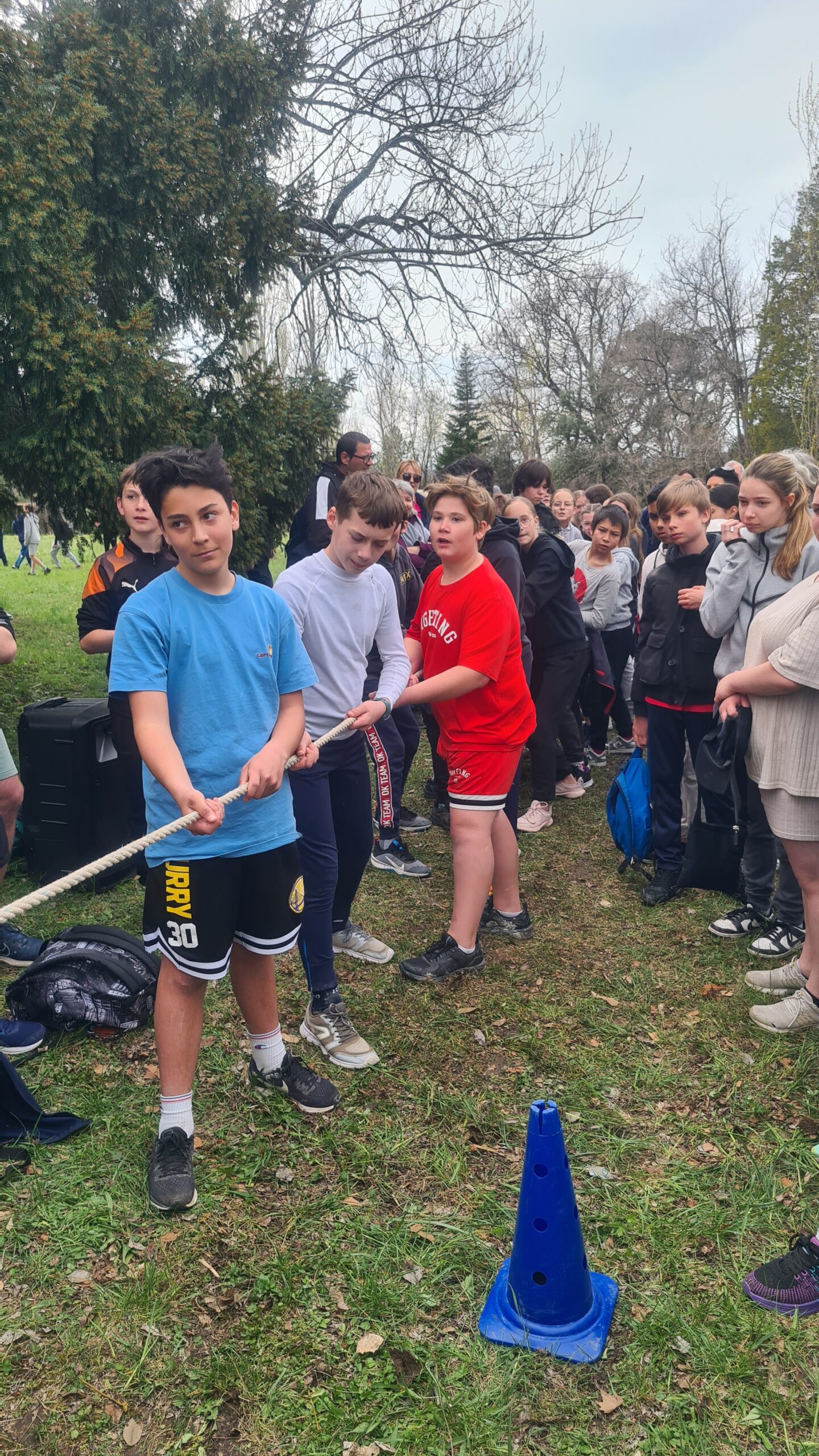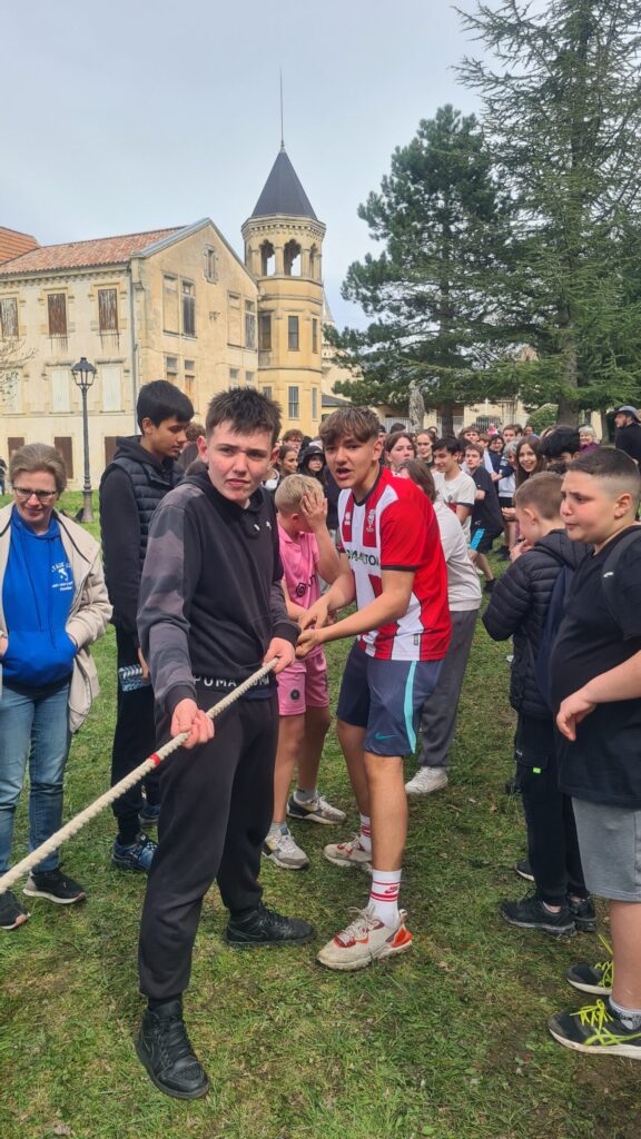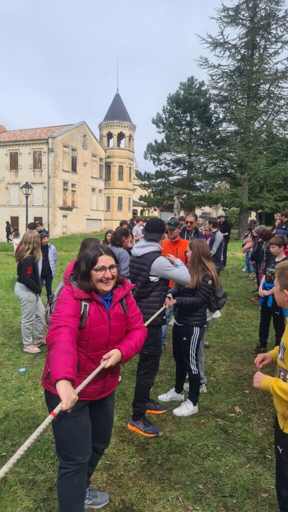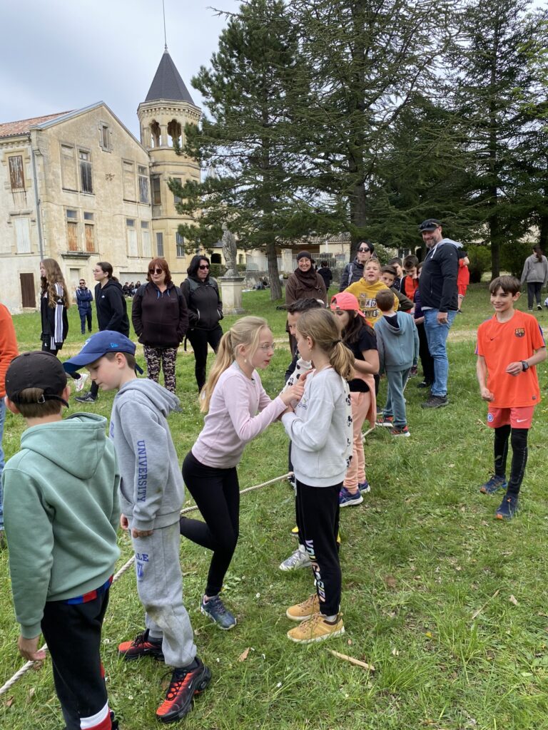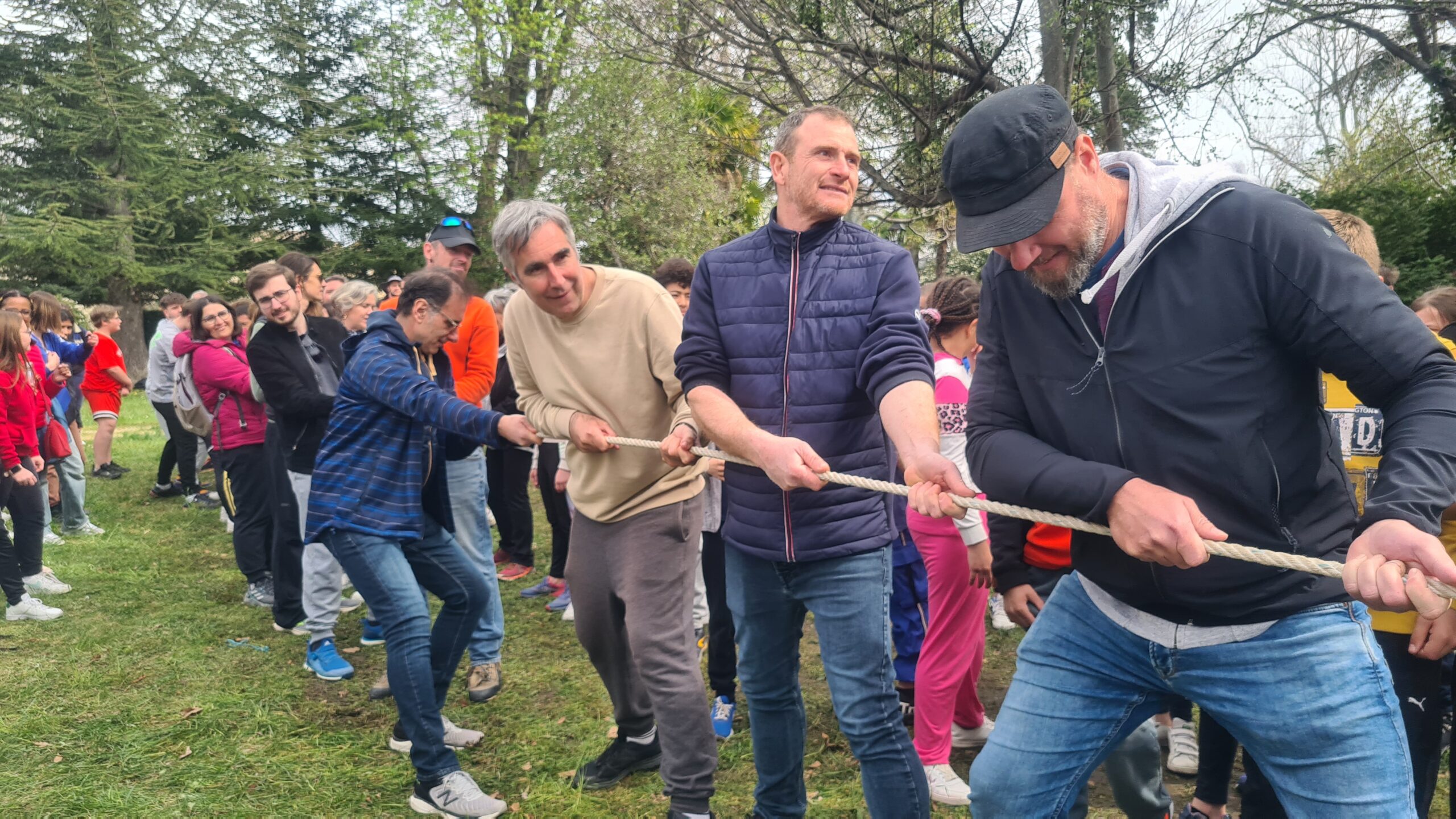 Malgré les nuages et un vent forcissant tout au long de la journée, le pique-nique dans les jardins fut un moment agréable suivi de la traditionnelle photo de l'ensemble scolaire (presque) au complet devant les marches du château. Le désormais attendu "tir à la corde" entre les classes (et contre les adultes) s'est déroulé sous la houlette de MM. Bassemon et Dermeghsian, encouragés par une foule en folie !