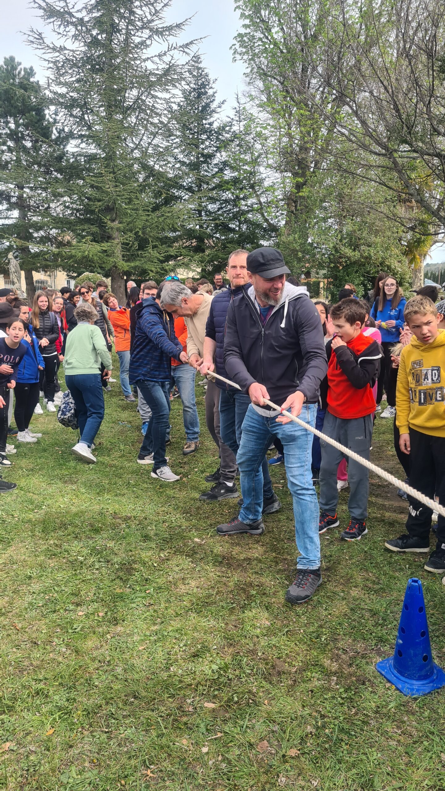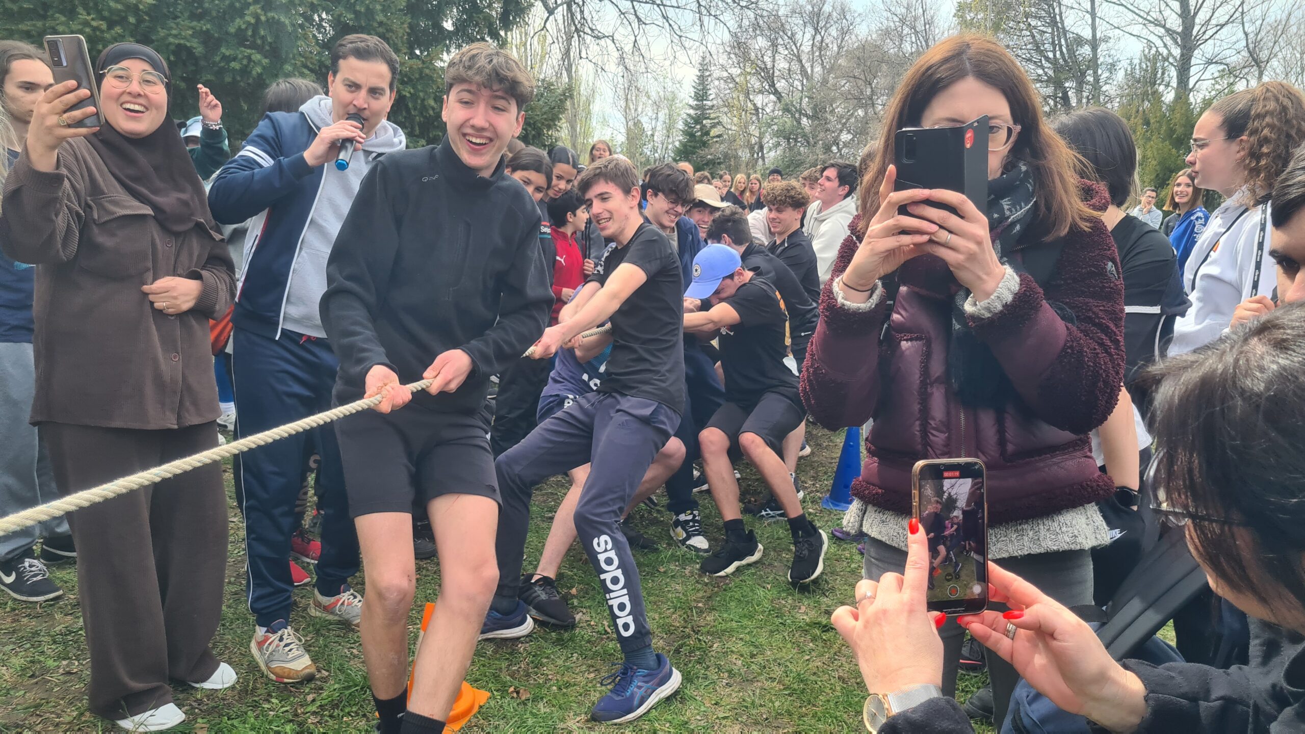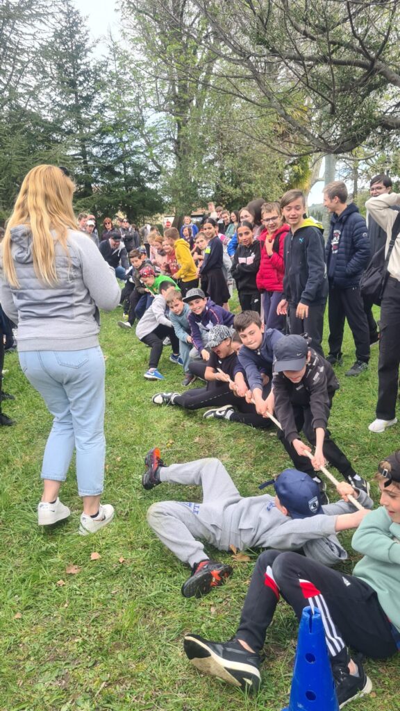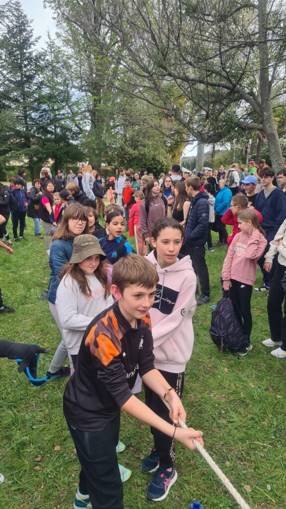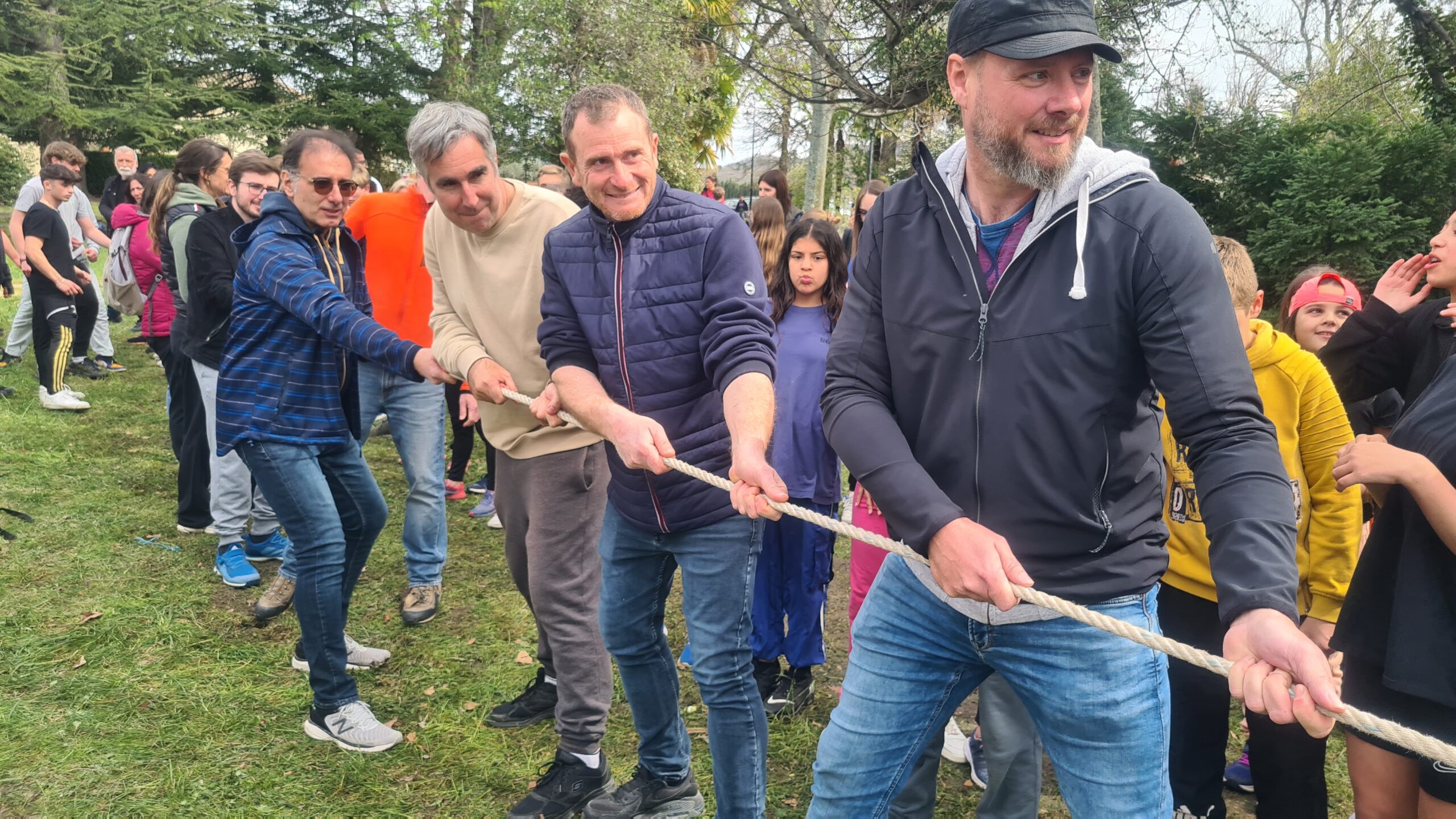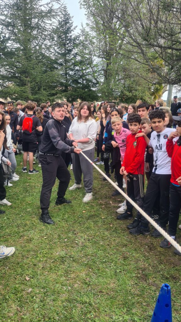 Malgré les nuages et un vent forcissant tout au long de la journée, le pique-nique dans les jardins fut un moment agréable suivi de la traditionnelle photo de l'ensemble scolaire (presque) au complet devant les marches du château. Le désormais attendu "tir à la corde" entre les classes (et contre les adultes) s'est déroulé sous la houlette de MM. Bassemon et Dermeghsian, encouragés par une foule en folie !