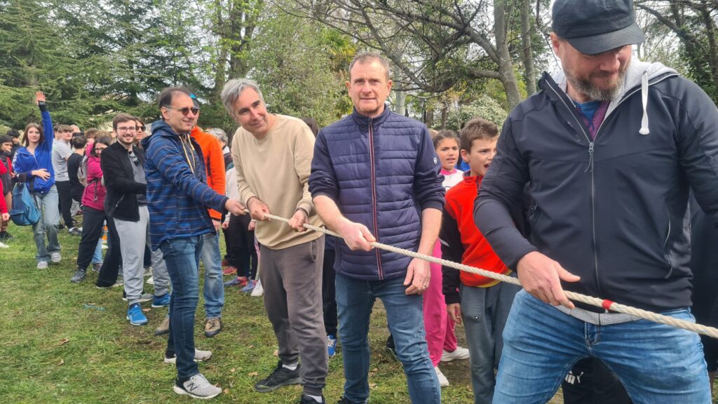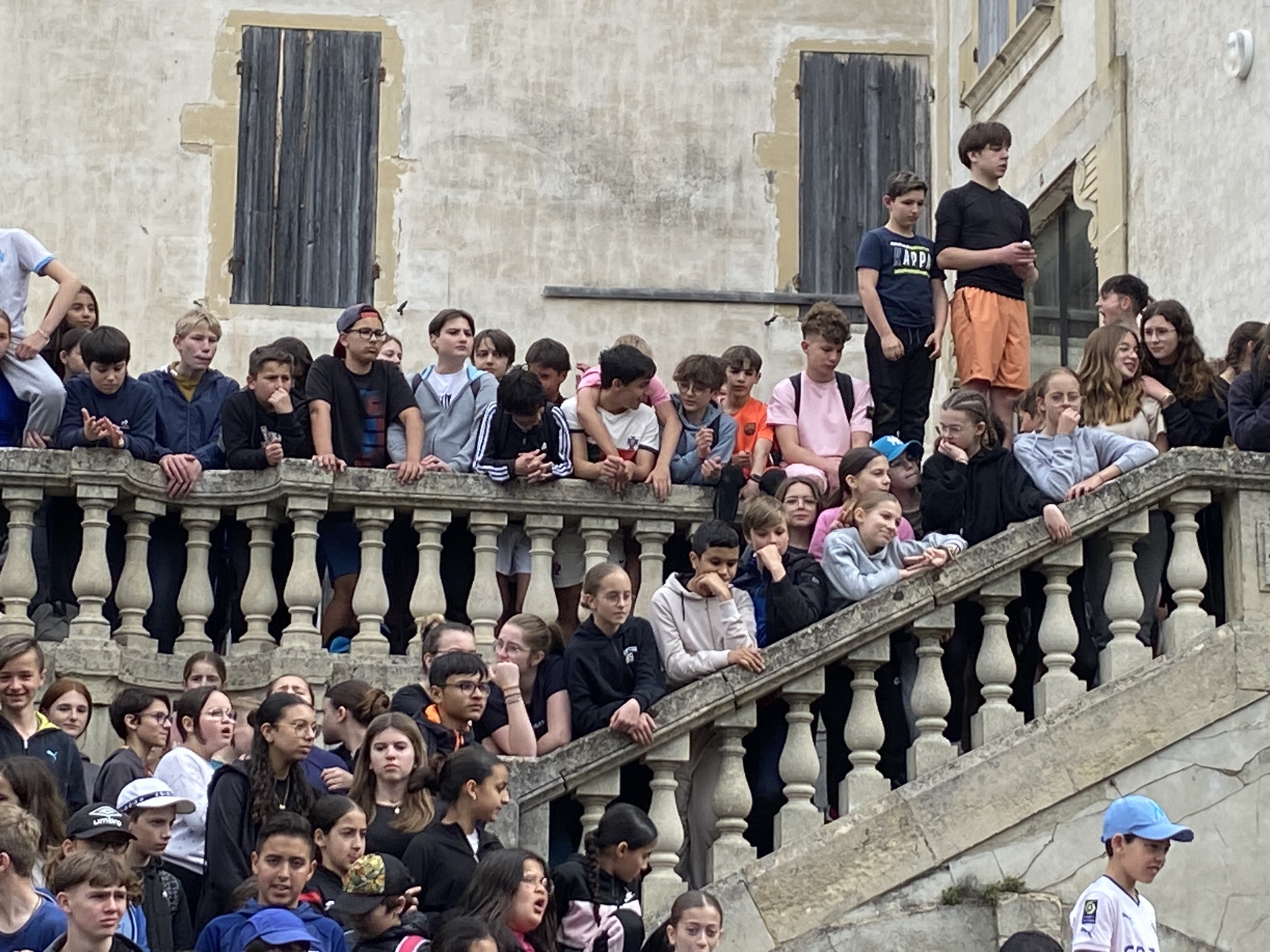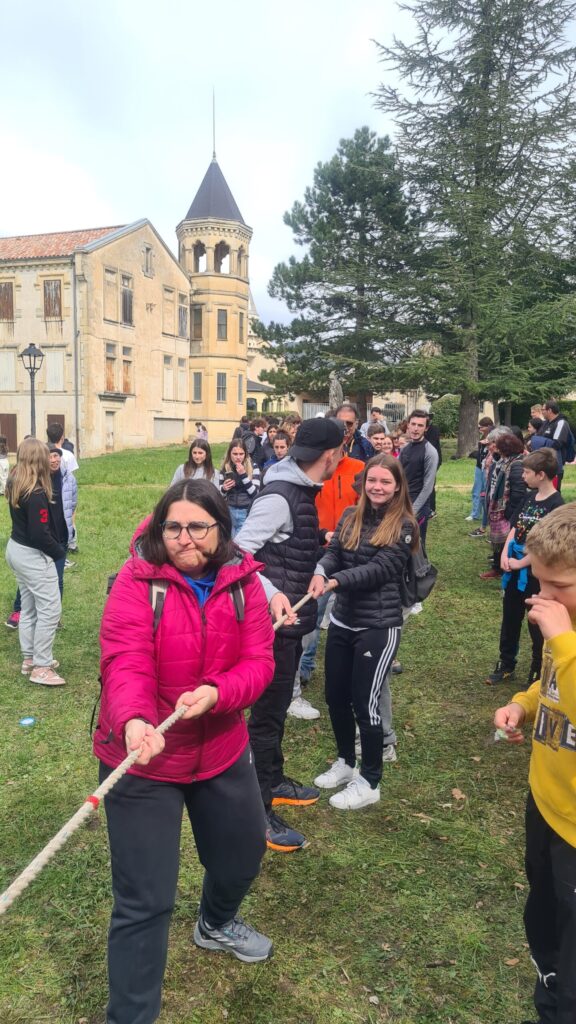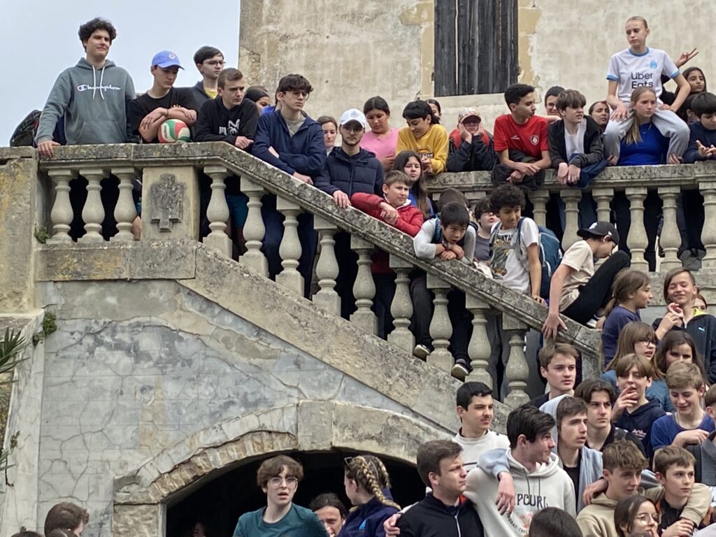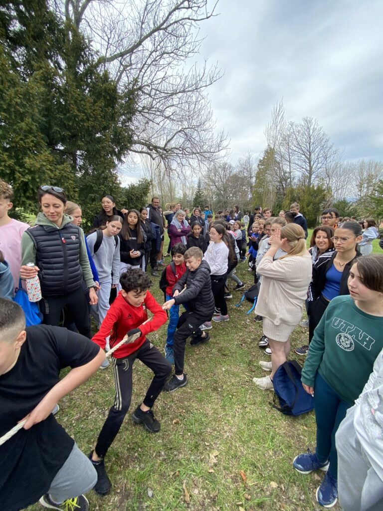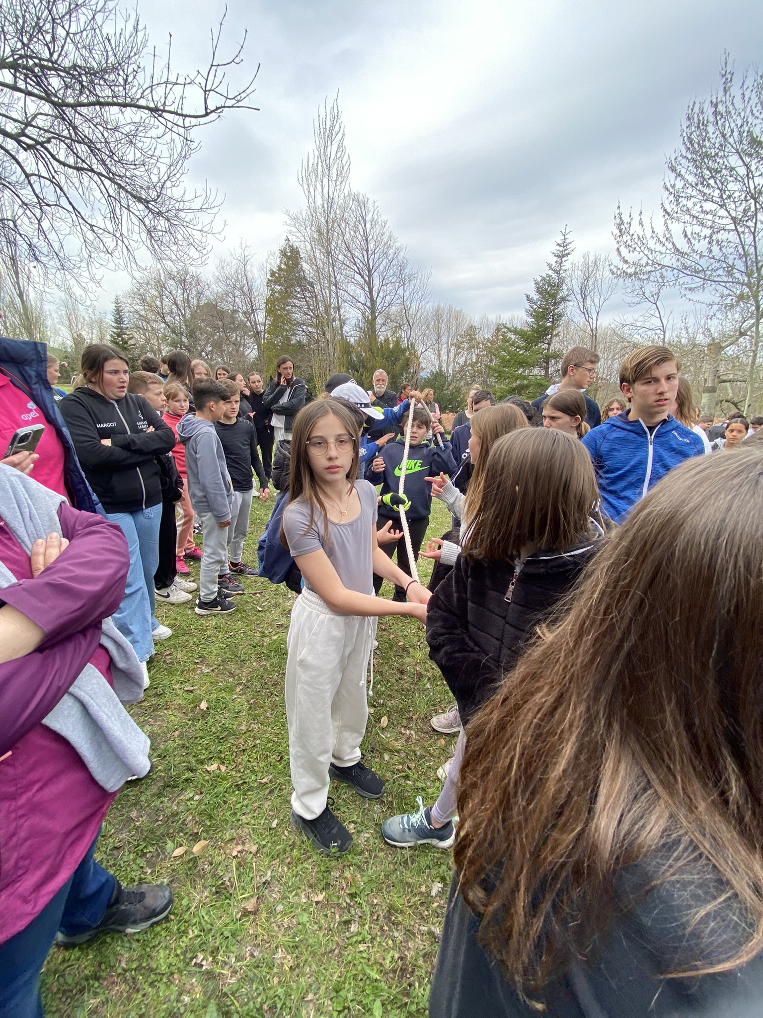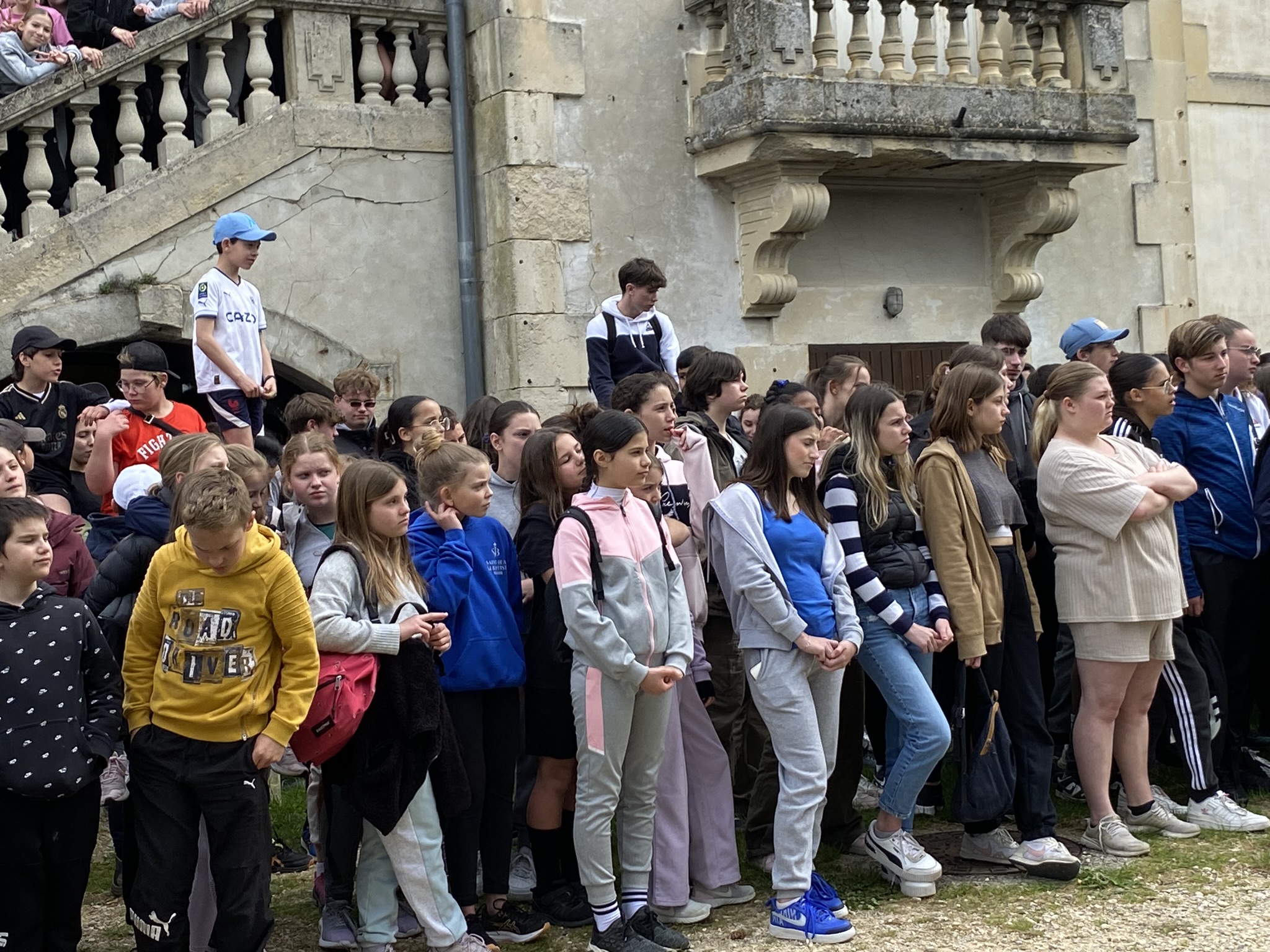 Malgré les nuages et un vent forcissant tout au long de la journée, le pique-nique dans les jardins fut un moment agréable suivi de la traditionnelle photo de l'ensemble scolaire (presque) au complet devant les marches du château. Le désormais attendu "tir à la corde" entre les classes (et contre les adultes) s'est déroulé sous la houlette de MM. Bassemon et Dermeghsian, encouragés par une foule en folie !