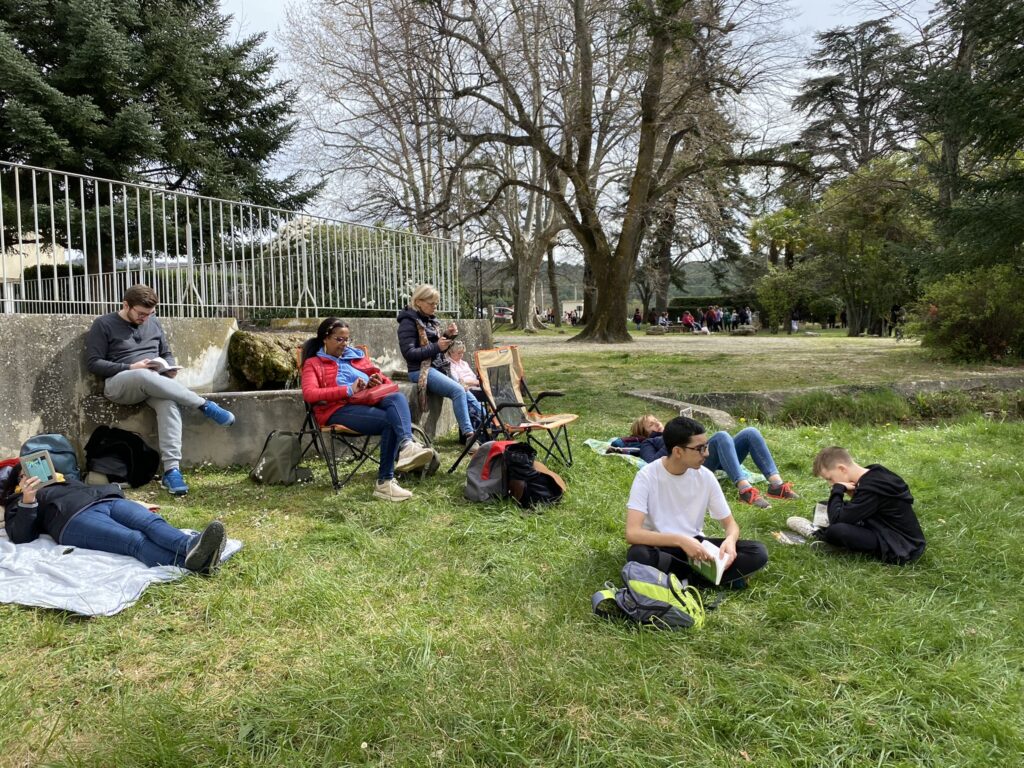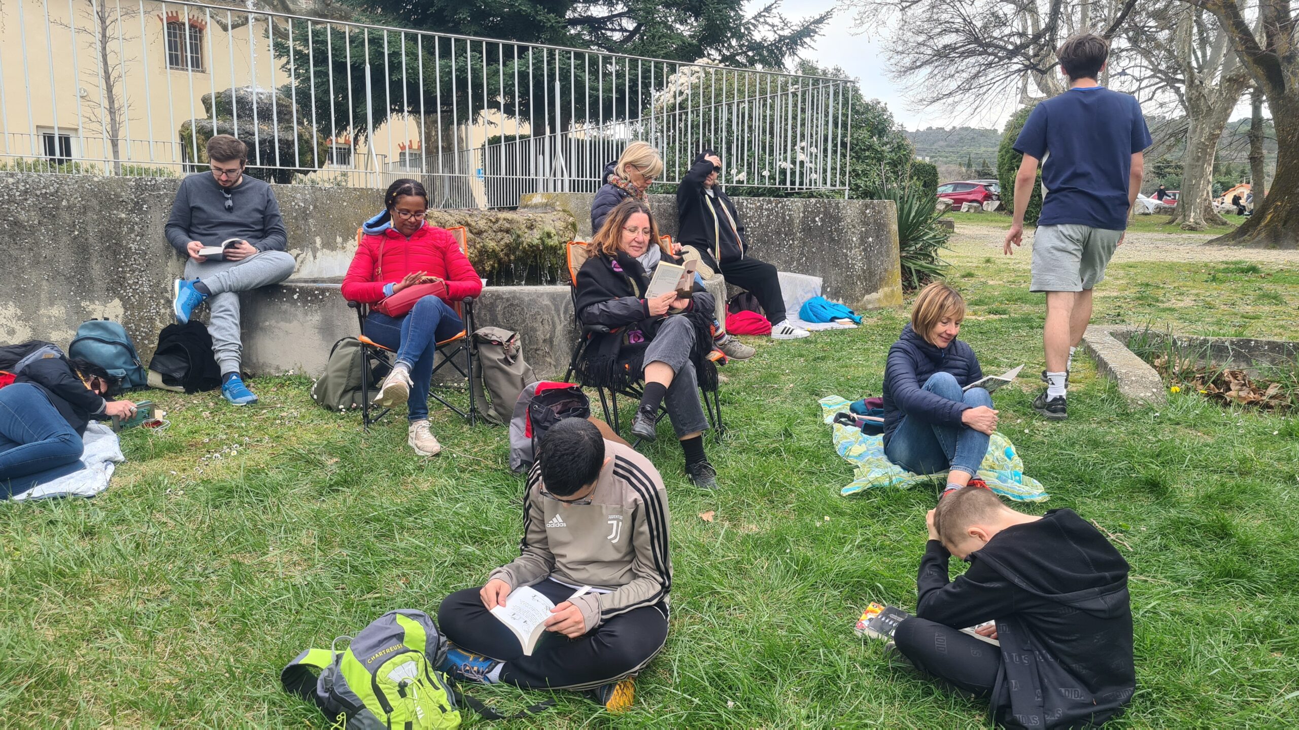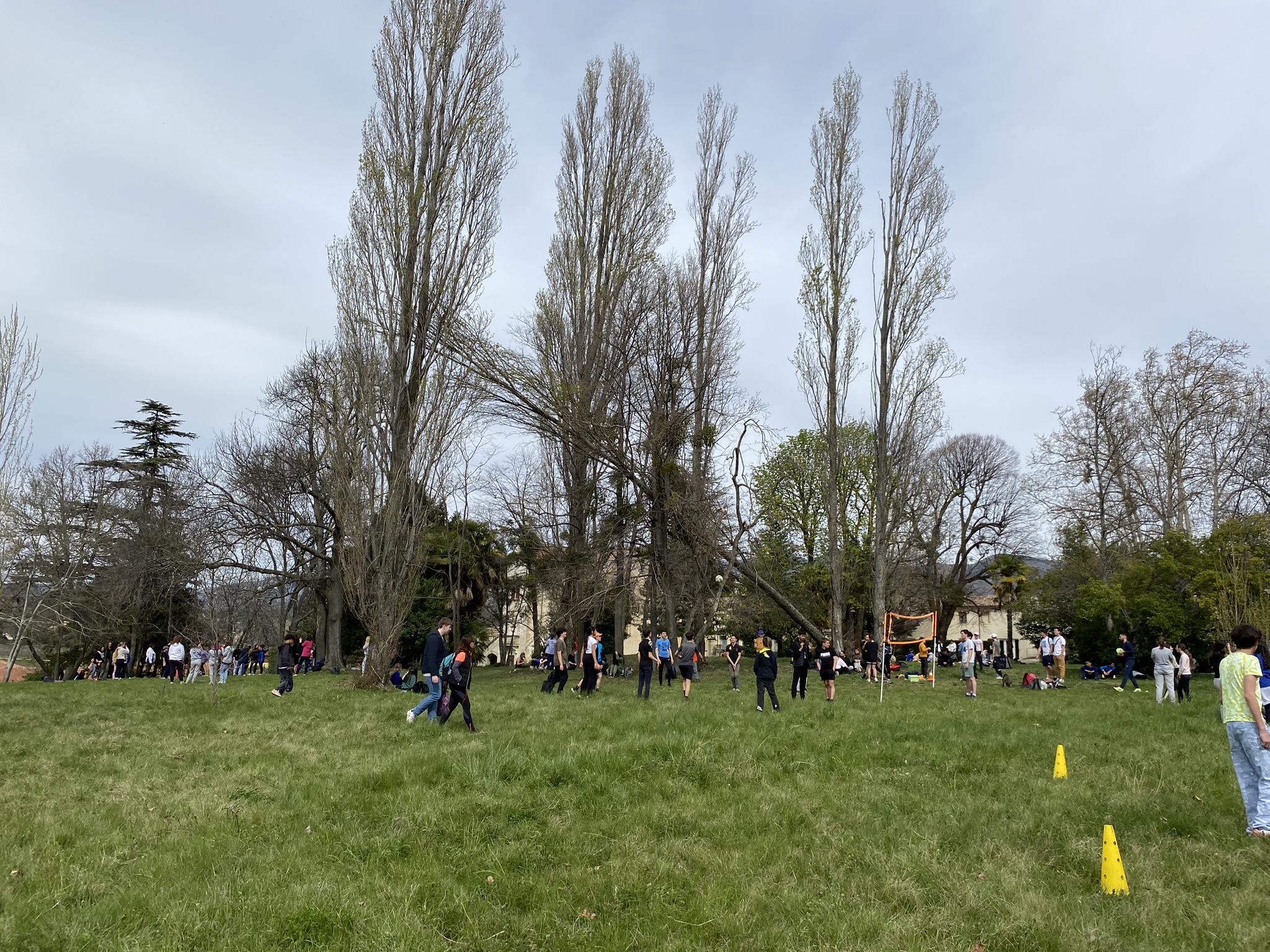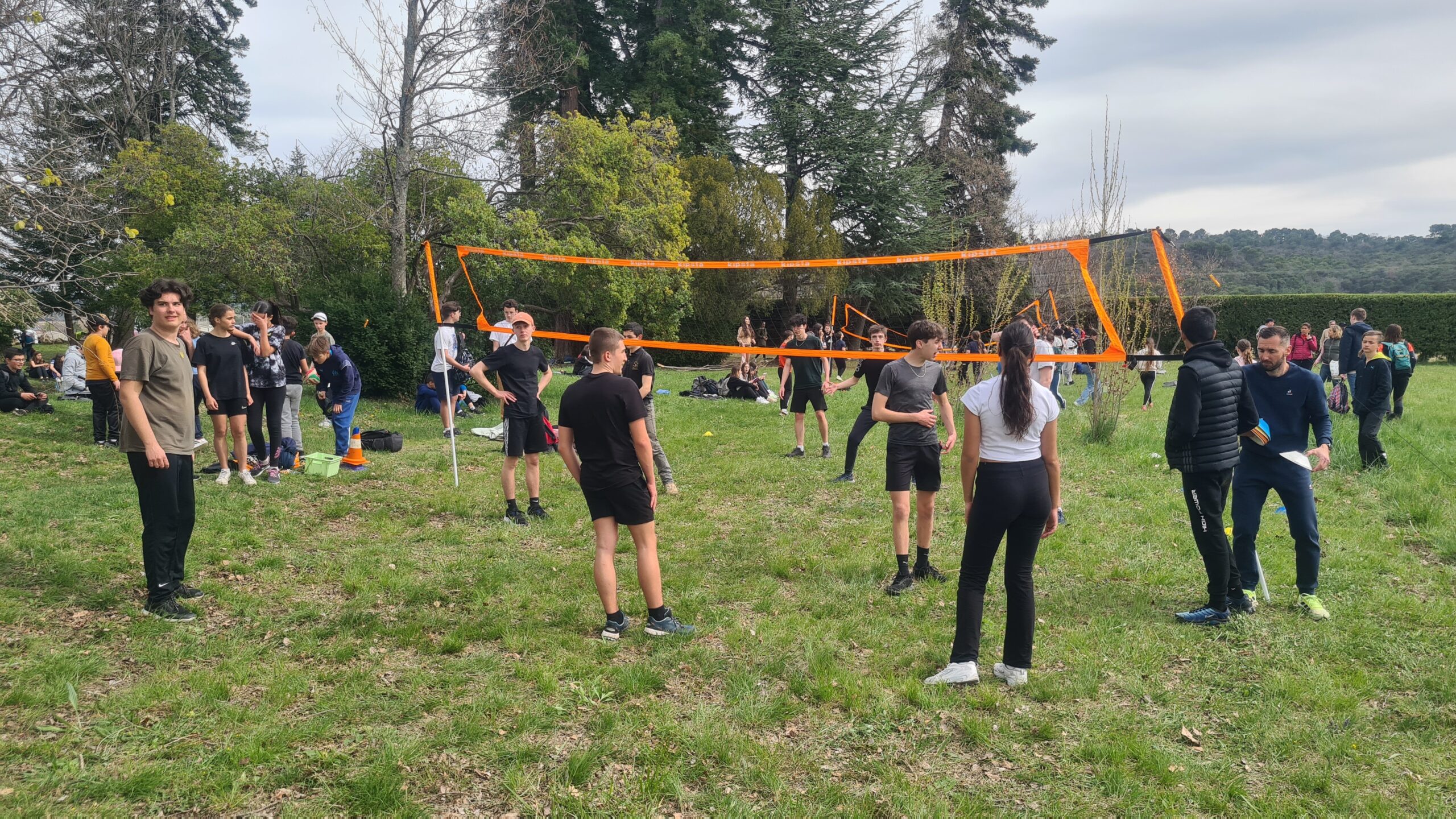 L'après-midi, les élèves ont participé à divers ateliers, sportifs (foot, volleyball, badmington...) ou plus calmes (théâtre, arts dans la nature, silence, on lit dans la nature...)
