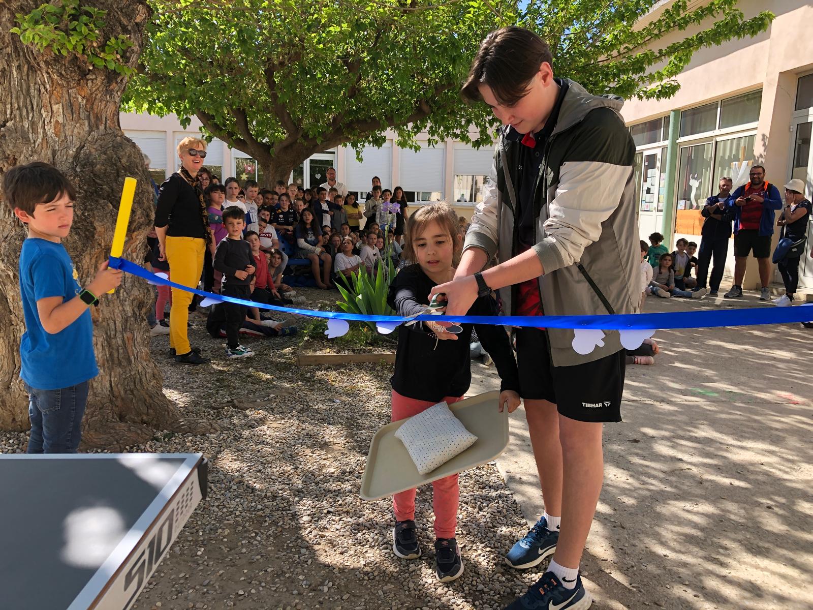 Clément Bettan, pongiste et collégien de Saint-Jean le Baptiste a eu l'honneur de couper le ruban inaugurant la table de Tennis de table devant tous les élèves et le personnel de l’école Saint Jean le Baptiste.
