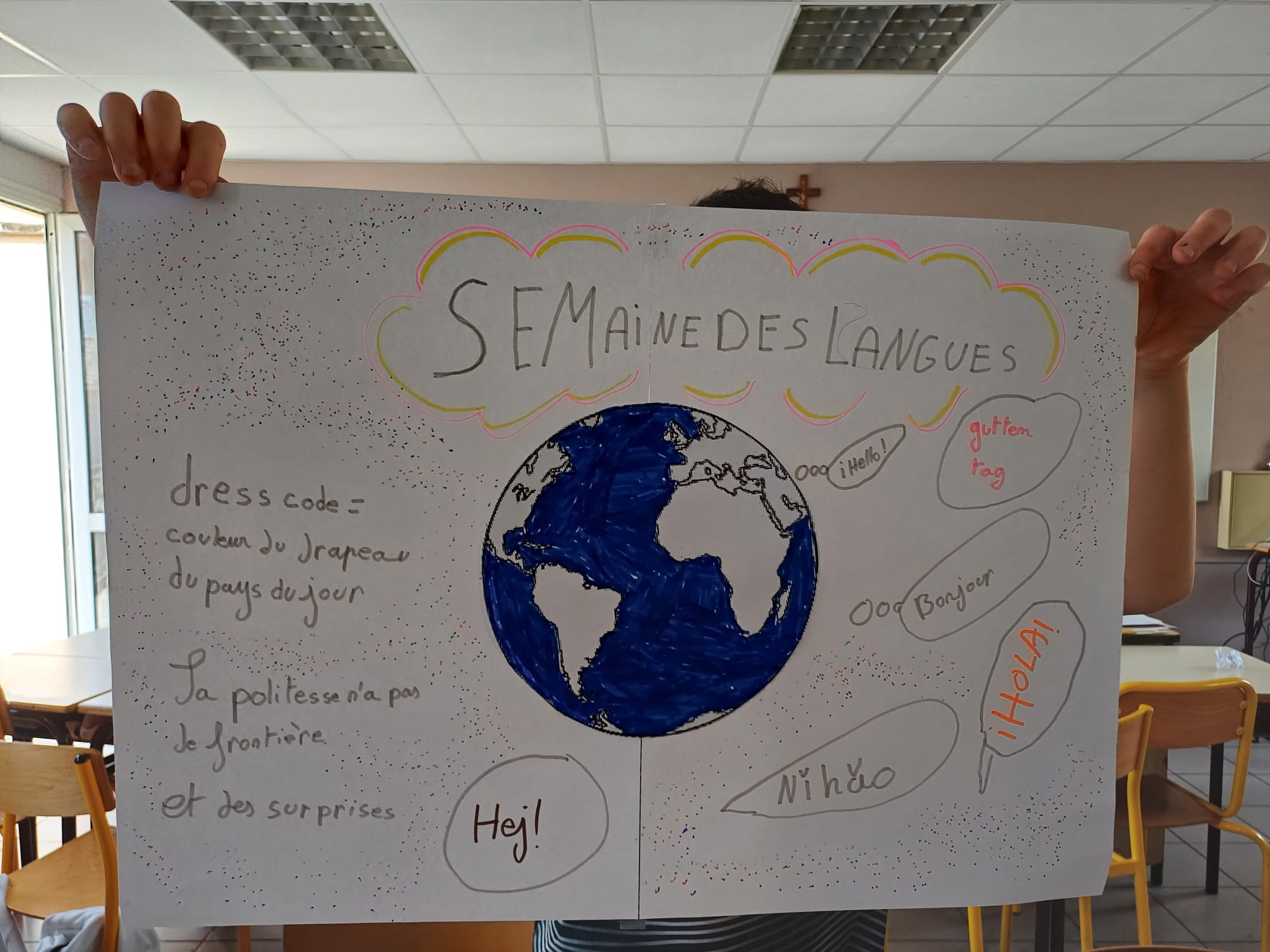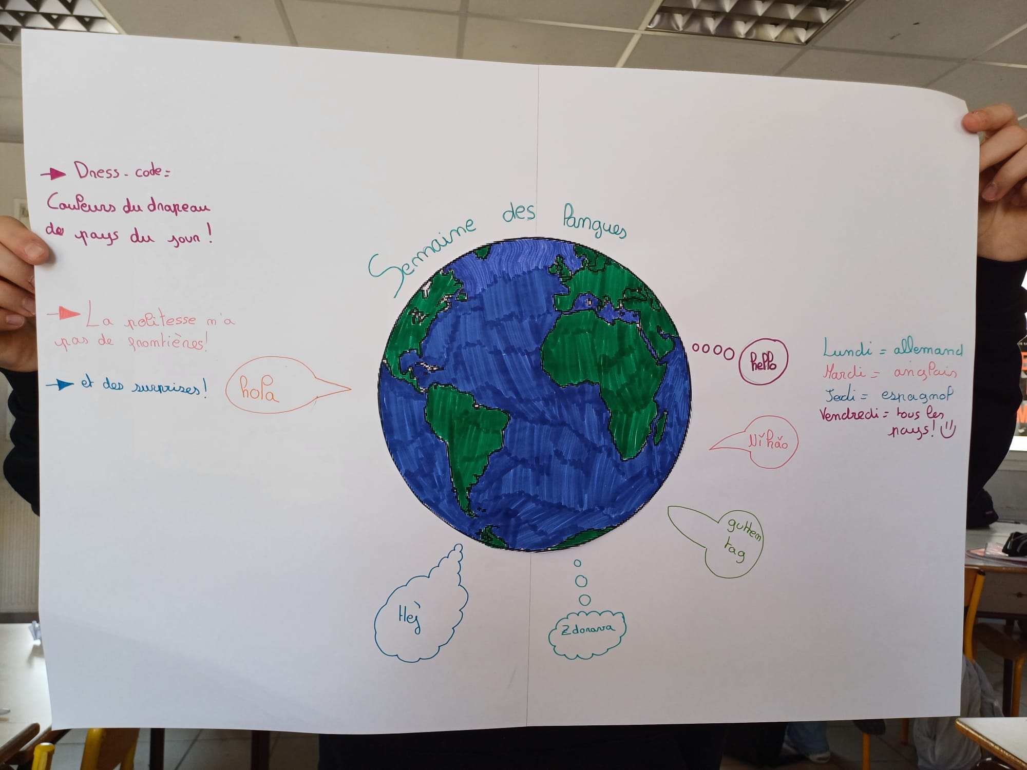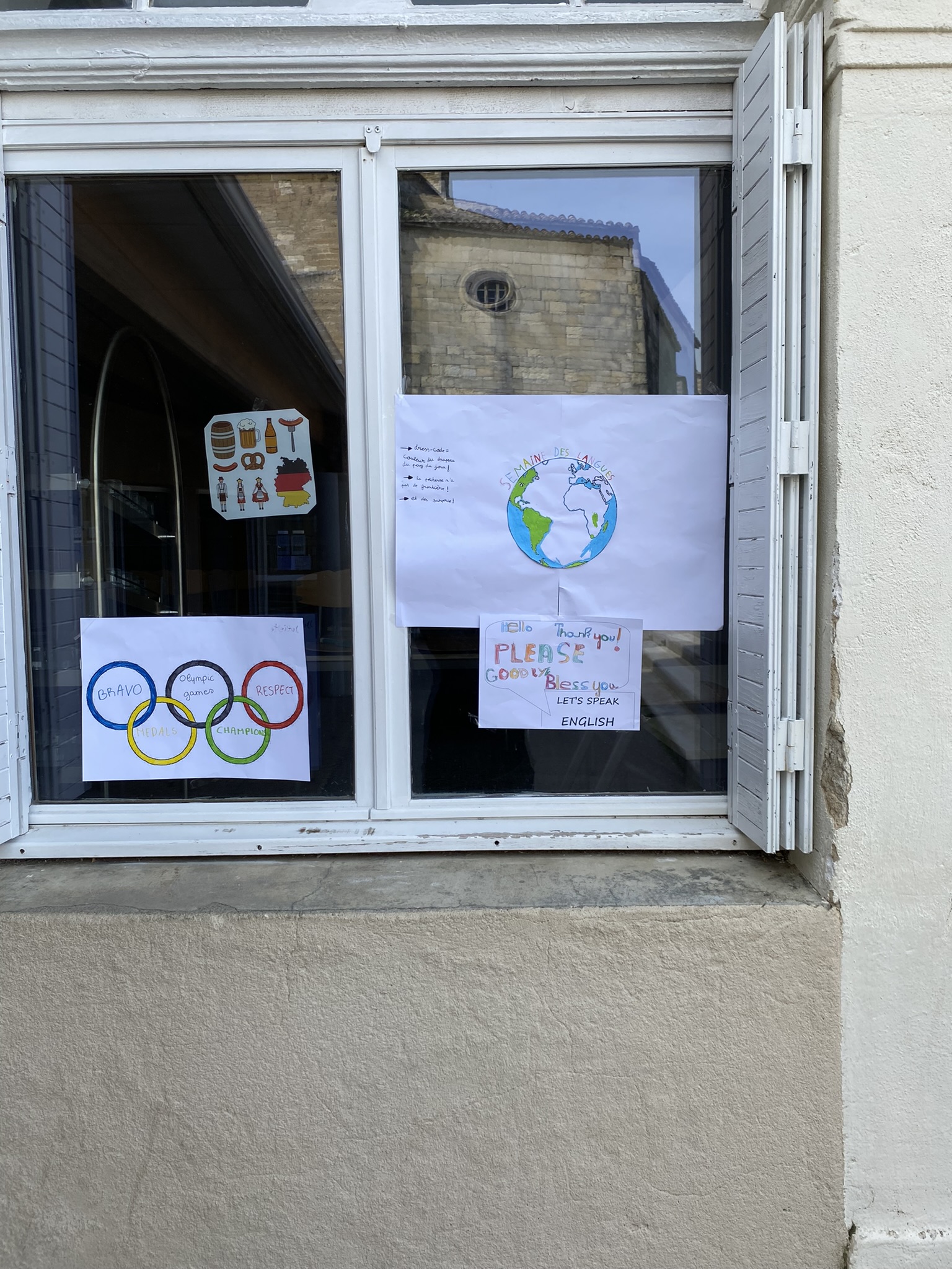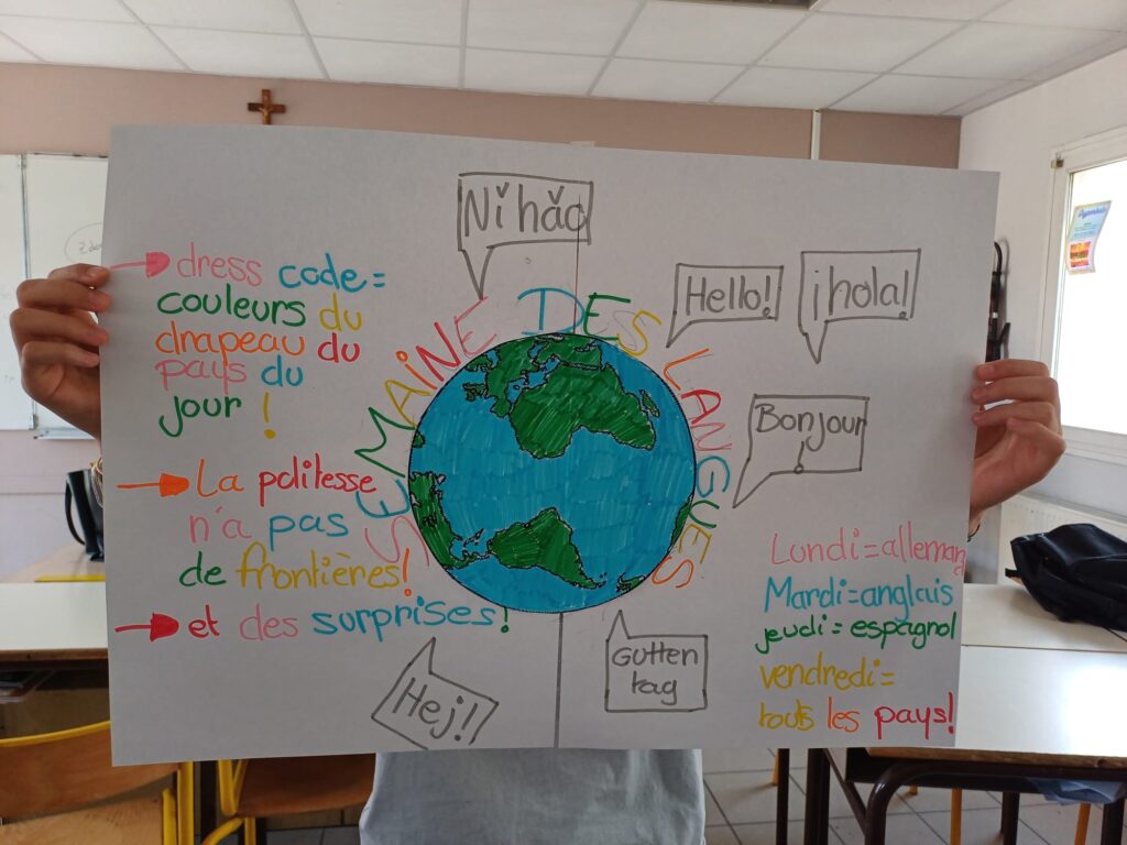 A cette occasion les élèves ont créé des affiches avec des mots de politesse dans toutes les langues, et en rapport avec les jeux olympiques. Elles sont affichées sur les 3 sites. Des activités surprises seront proposées.
