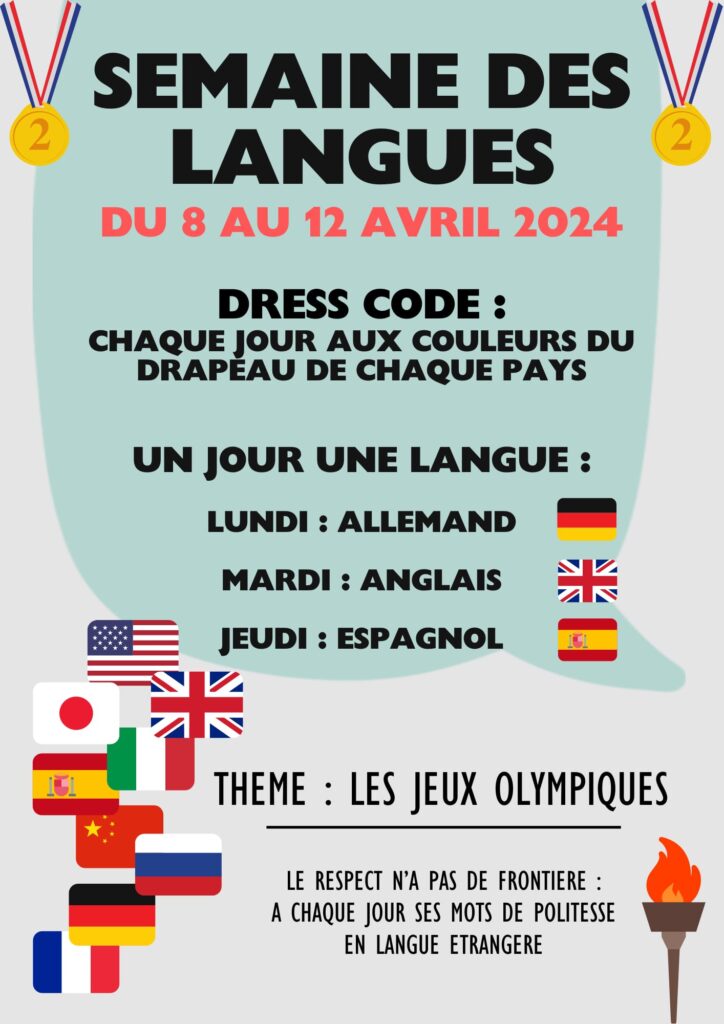 Cette semaine, nous célébrons la semaine des langues sur l'ensemble scolaire. Le collège et le lycée général et pro s'associent pour fêter cet évènement sur le thème des jeux olympiques.
